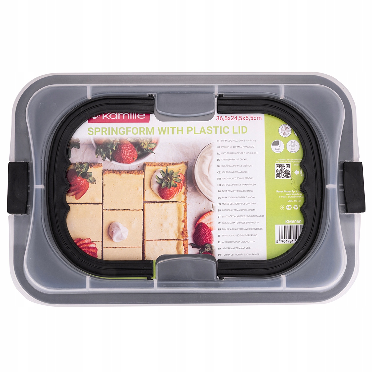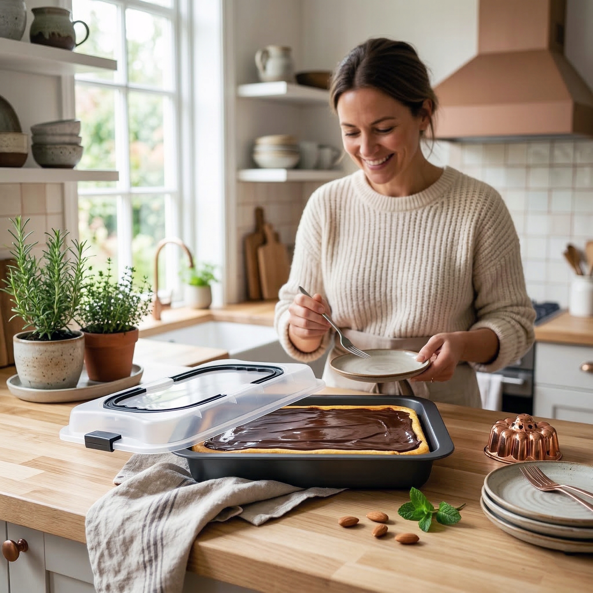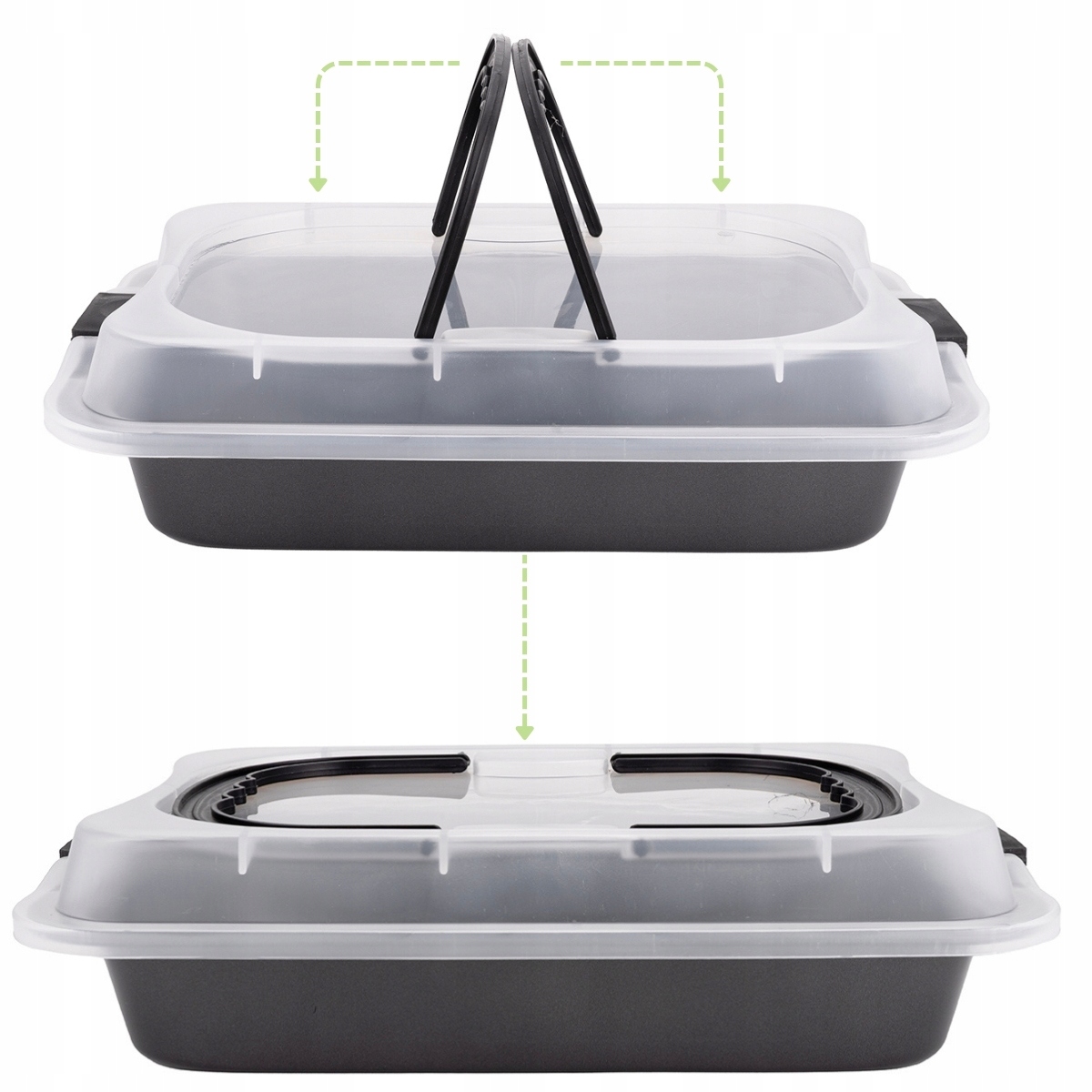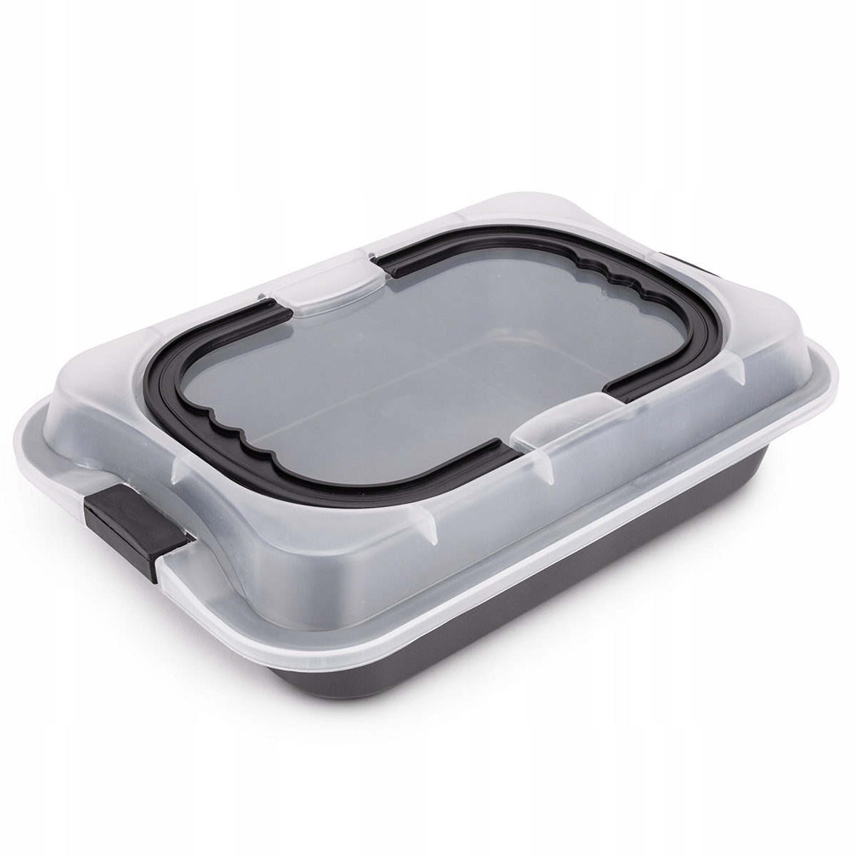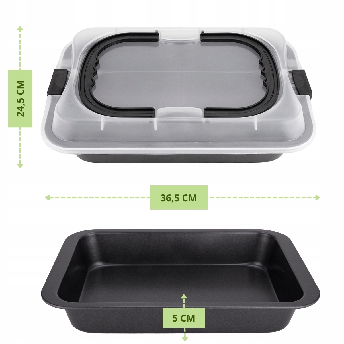 Dzięki wymiarom 36,5 × 24,5 × 5 cm, forma oferuje optymalną pojemność do przygotowania klasycznych wypieków: ciast domowych, serników, brownie, mazurków czy zapiekanek. To idealna forma do ciasta do piekarnika z pokrywą, która pozwala piec i jednocześnie wygodnie przechowywać większe porcje wypieków bez konieczności używania dodatkowych pojemników.