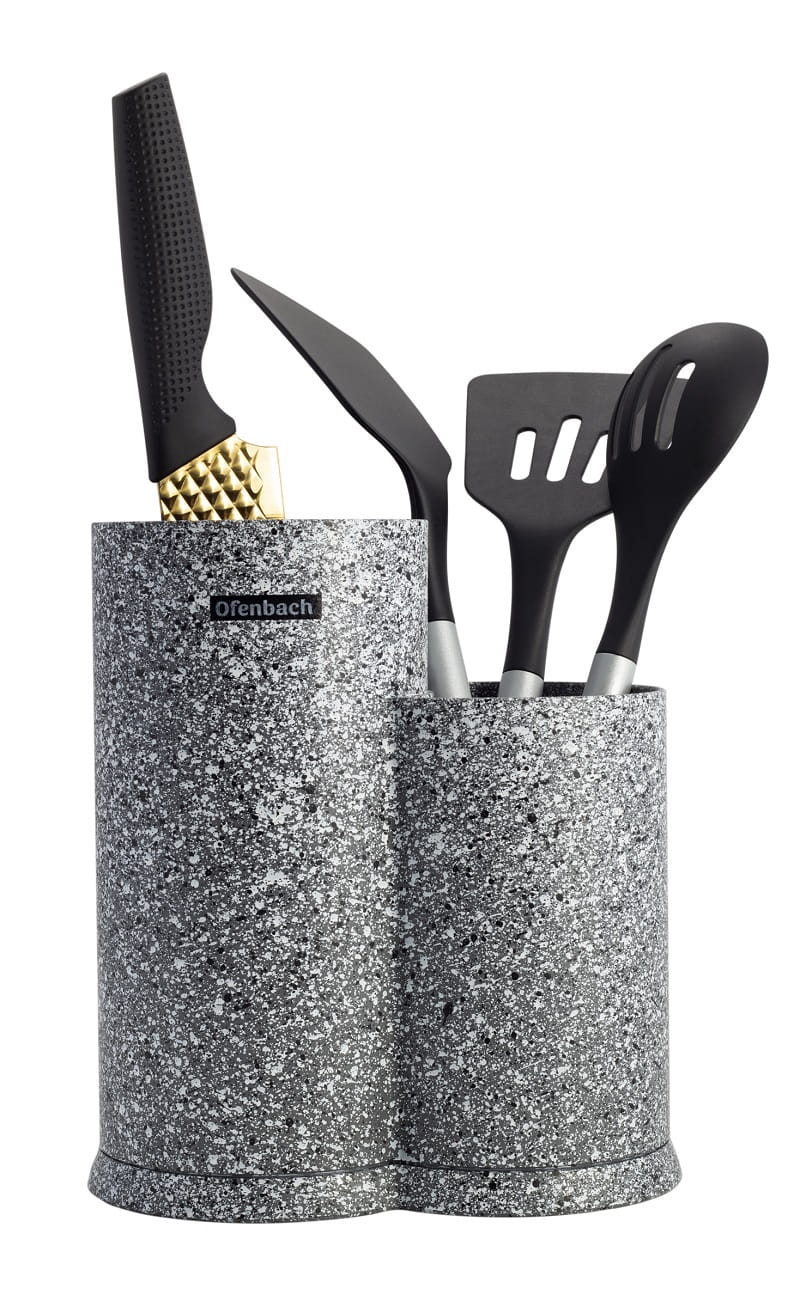 Jeśli lubisz ład i porządek w kuchni, a podczas przygotowywania posiłków stawiasz na bezpieczeństwo, to blok na noże będzie dla Ciebie idealnym rozwiązaniem. Dzięki niemu pozbędziesz się problemu walających się luzem noży w szufladzie, co naraża na skaleczenie. Od teraz noże będą miały swoje stałe miejsce w kuchni, nie zajmując przy tym dużo miejsca. Wykonanie z tworzywa sztucznego jest trwałe a powłoka zapewnia oryginalne wzornictwo. Solidna podstawka zapewnia stabilność stojaka i eliminuje przewrócenie mimo ciężaru. Wypełnienie w postaci wyjmowanych i nadających się do mycia pręcików z tworzywa sztucznego zapewni blok łatwy w utrzymaniu oraz higienę.