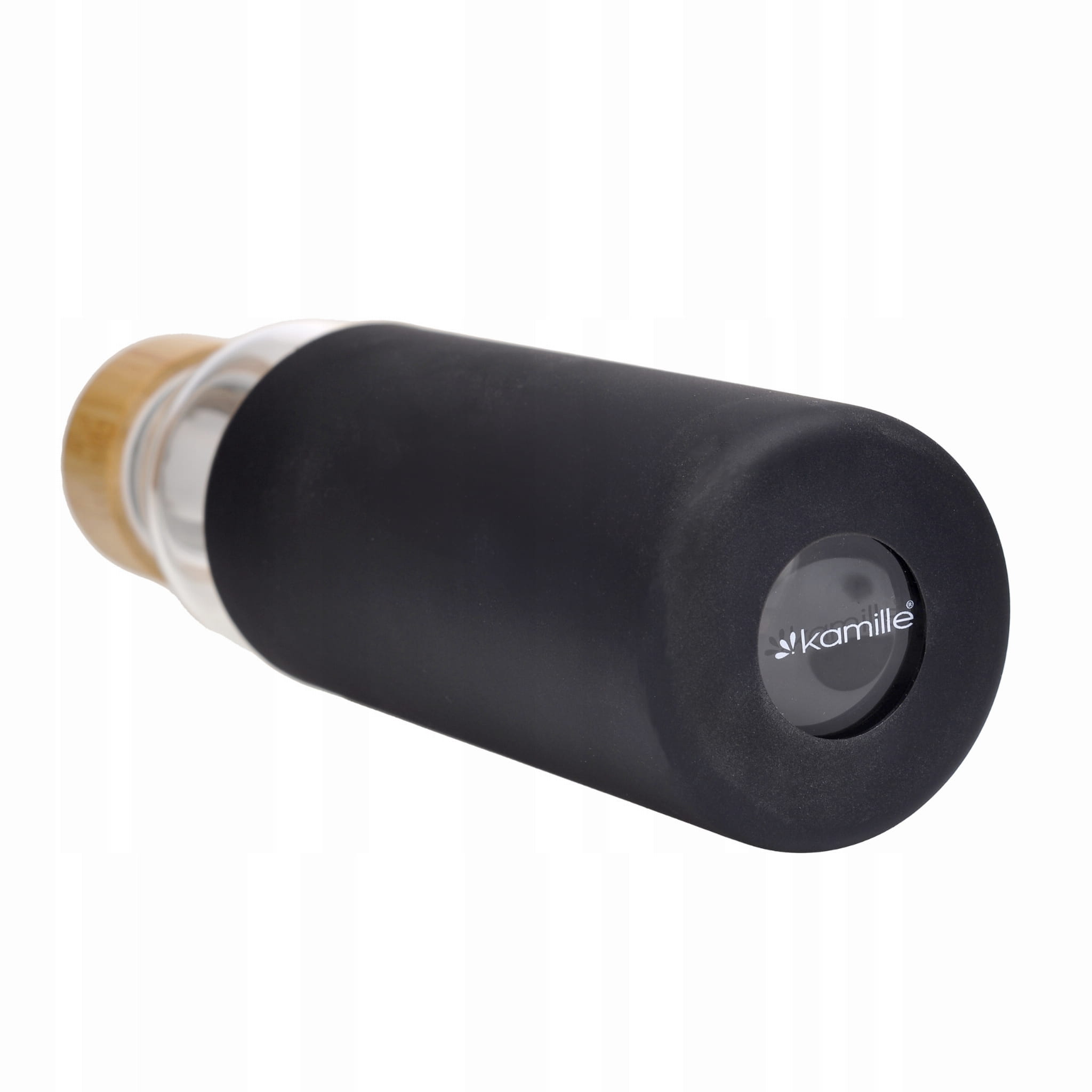 ✔️ wykonana ze szkła boro-krzemowego odpornego na działanie wysokich temperatur, zakrętka - z bambusu