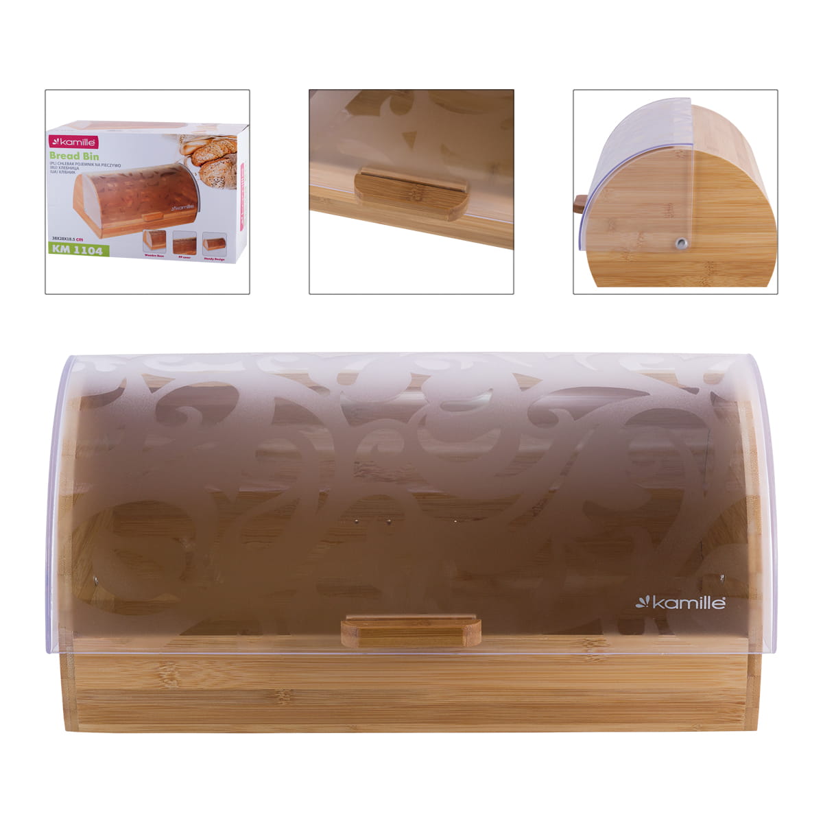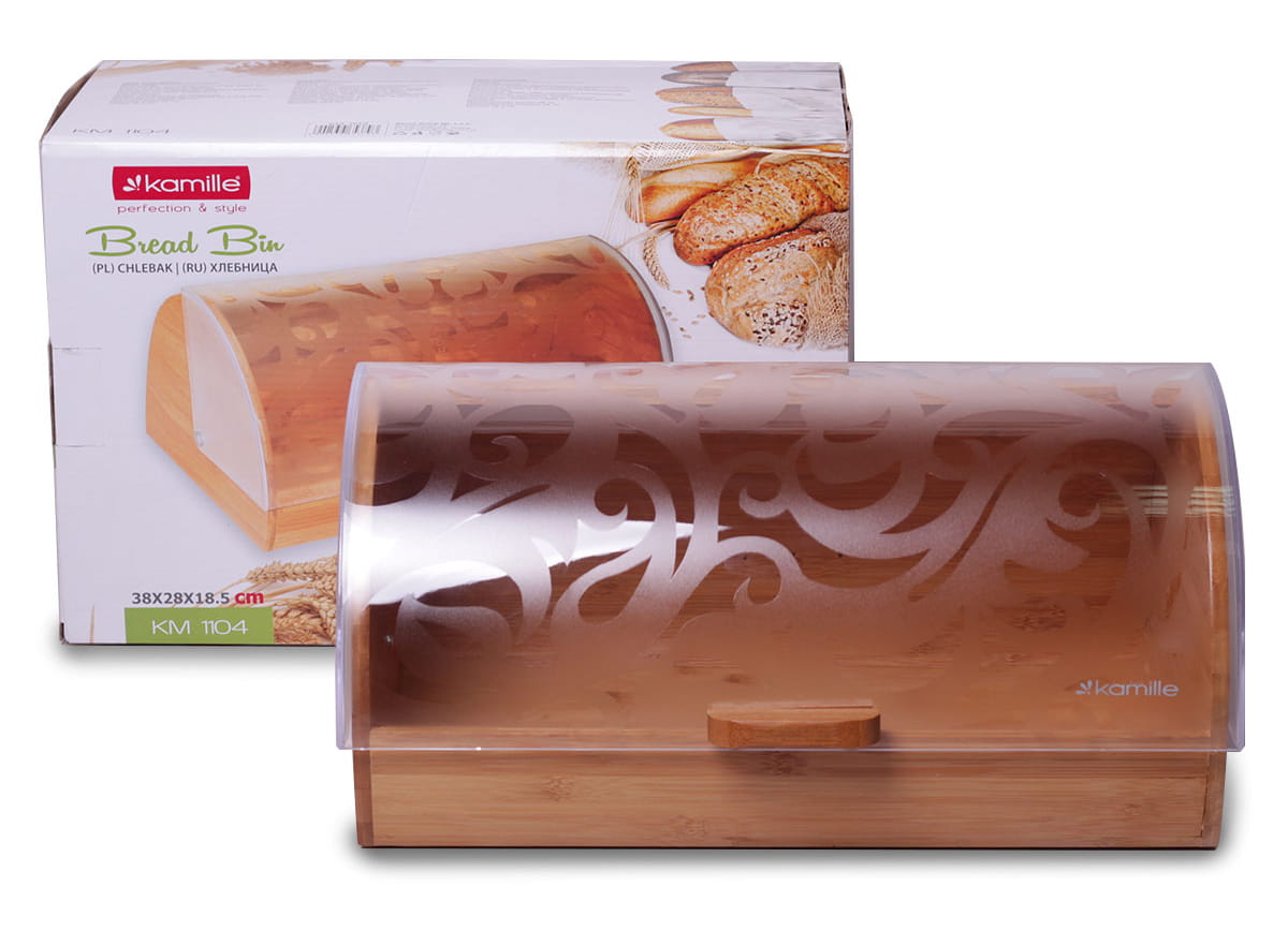 Jeżeli zależy Ci na świeżym i puszystym chlebie to właśnie dla ciebie stworzony chlebak Kamille. Funkcjonalny i estetyczny atrakcyjny wygląd sprawdzi się w każdej kuchni i będzie służył przez wiele lat. Chlebak wykonany z drzewa bambusowego, natomiast pokrywa akrylowa we wzory. Zastosowany materiał jest nie tylko najlepszy z możliwych, ale także świetnie się prezentują i jest wyjątkowo łatwy w czyszczeniu. Nowoczesny i elegancki o wysokiej jakości i dokładnie wykonany chlebak zachowa świeżość pieczywa na dłuższy czas i stanie się ciekawym elementem dekoracyjnym kuchni.