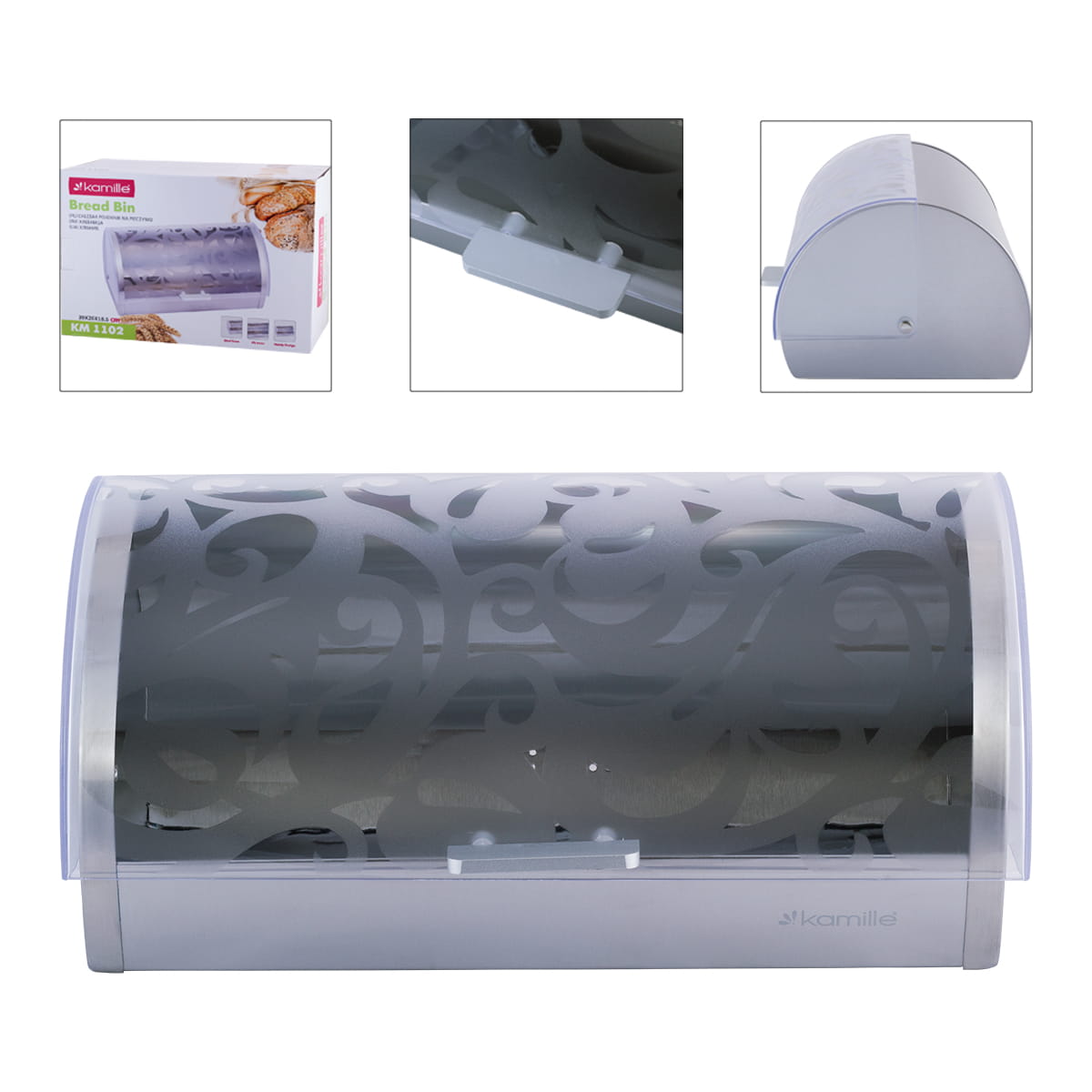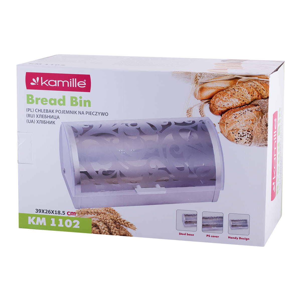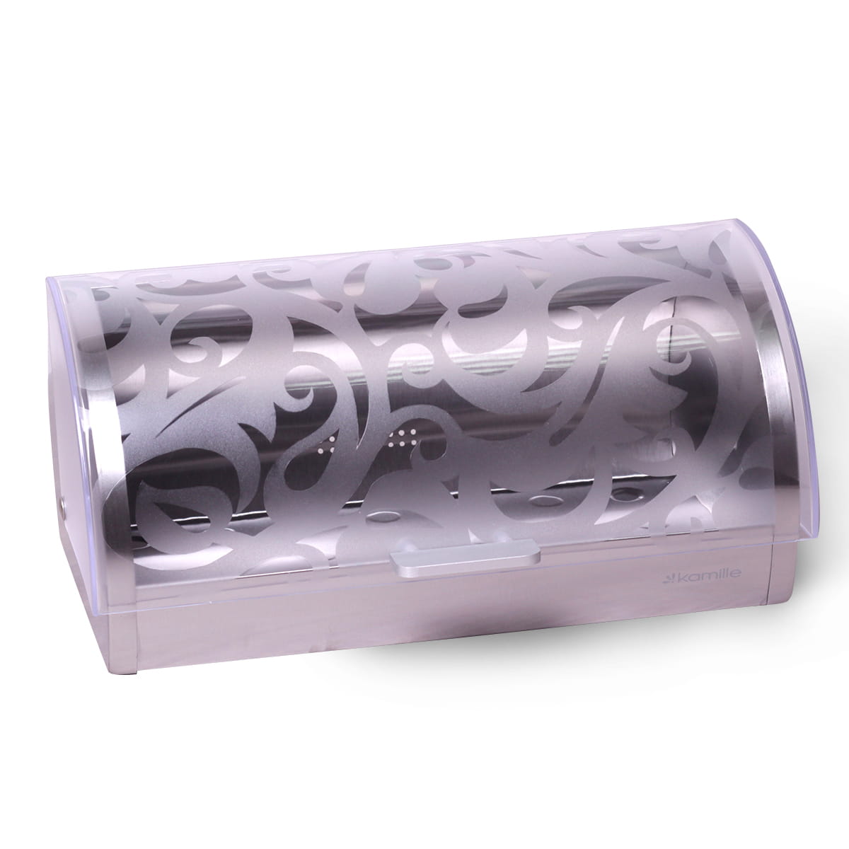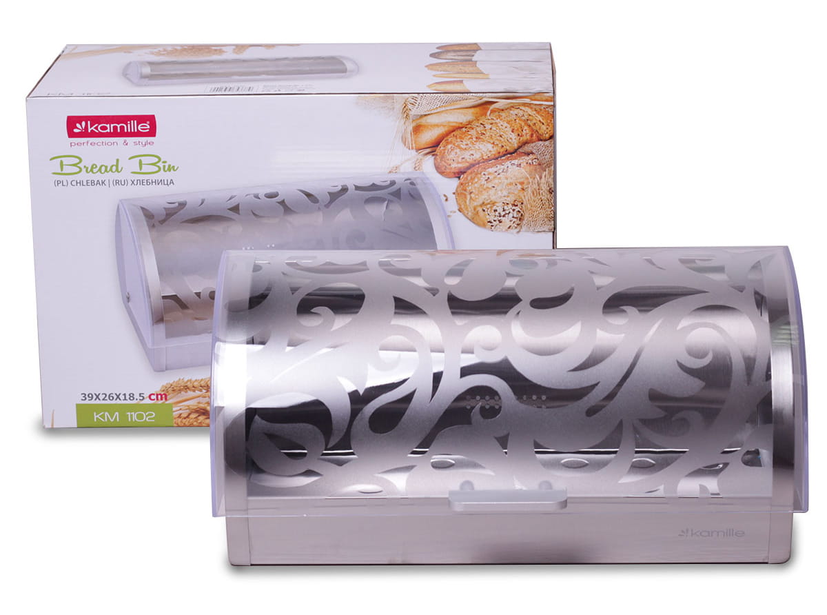 Jeżeli zależy Ci na świeżym i puszystym chlebie to właśnie dla ciebie stworzony chlebak Kamille. Funkcjonalny i estetyczny atrakcyjny wygląd sprawdzi się w każdej kuchni i będzie służył przez wiele lat. Chlebak wykonany ze stali nierdzewnej, natomiast pokrywa akrylowa we wzory. Zastosowany materiał jest nie tylko najlepszy z możliwych, ale także świetnie się prezentują i jest wyjątkowo łatwy w czyszczeniu. Nowoczesny i elegancki o wysokiej jakości i dokładnie wykonany chlebak zachowa świeżość pieczywa na dłuższy czas i stanie się ciekawym elementem dekoracyjnym kuchni.