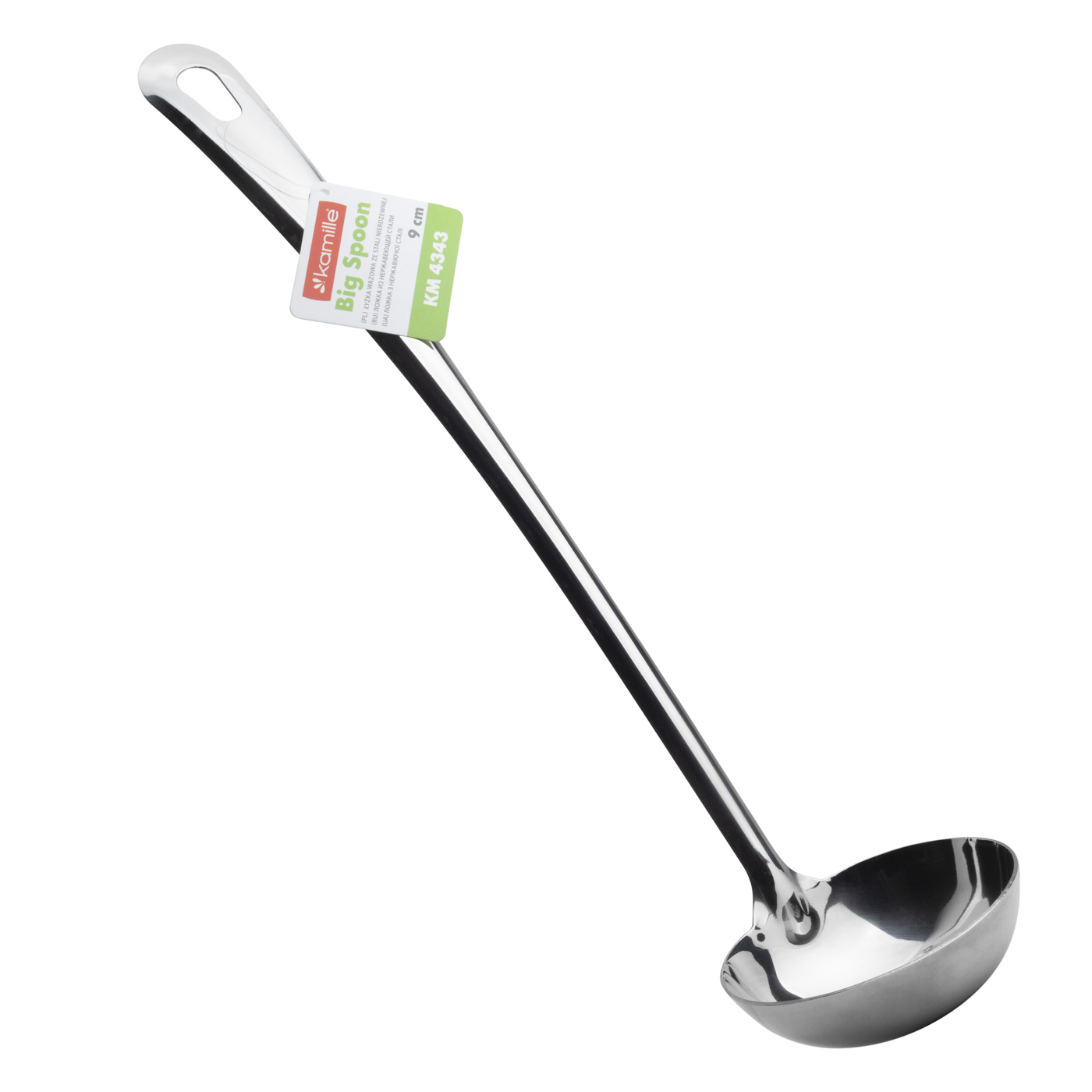 Chochla Kamille została wyprodukowana z wysokiej jakości stali nierdzewnej. Nabierka sprawdzi się przede wszystkim przy nalewaniu zupy z garnka lub wazy. Produkt wyposażony jest w praktyczny oczko, mieszczące się w uchwycie. Dzięki niemu można w wygodny oraz szybki sposób odwiesić narzędzia na haczyku. Chochla to produkt zarówno codziennego użytku, jak i znajdujący zastosowanie podczas uroczystych przyjęć czy kolacji.