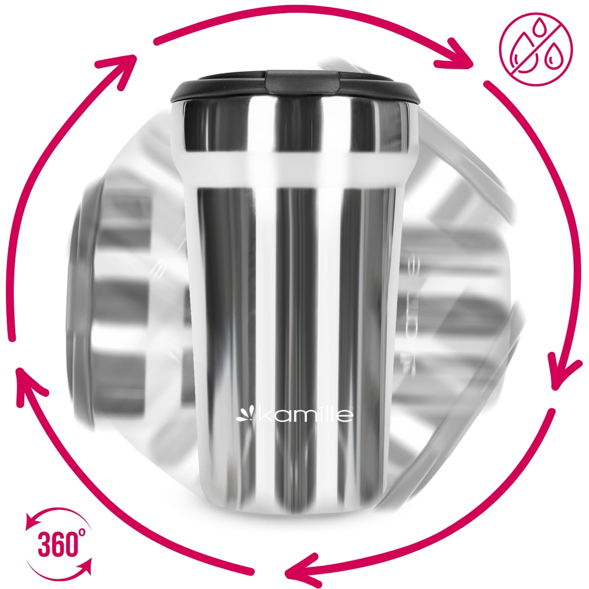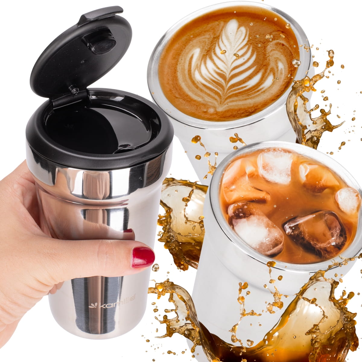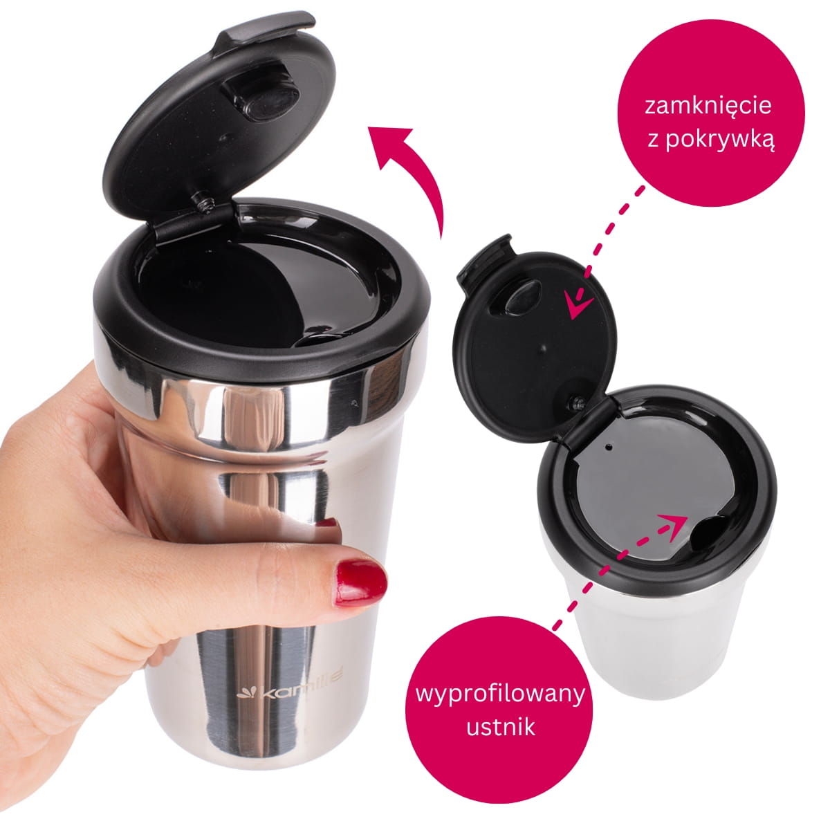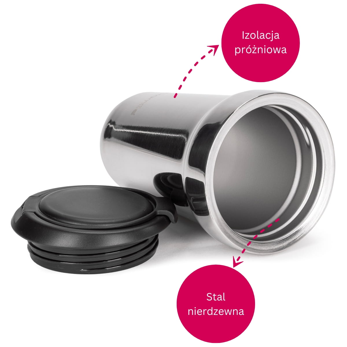 ✅ Izolacja próżniowa sprawia że kubek długo utrzymuje temperaturę wewnątrz, podobnie jak termos.