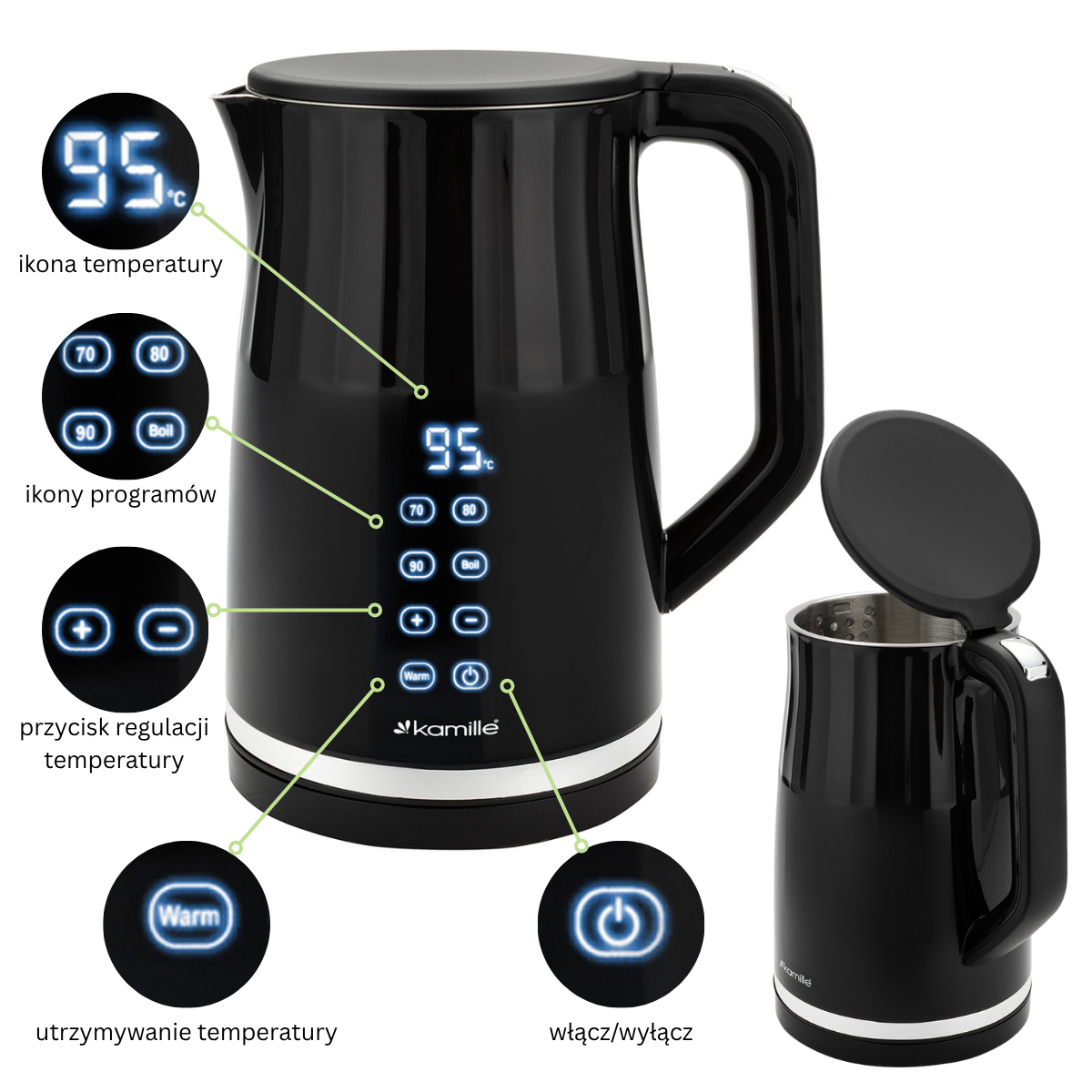 Model: elektryczny czajnik z regulacją temperatury