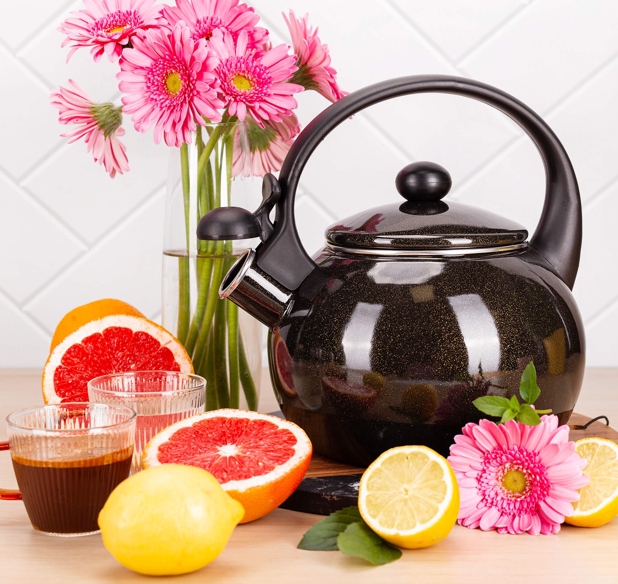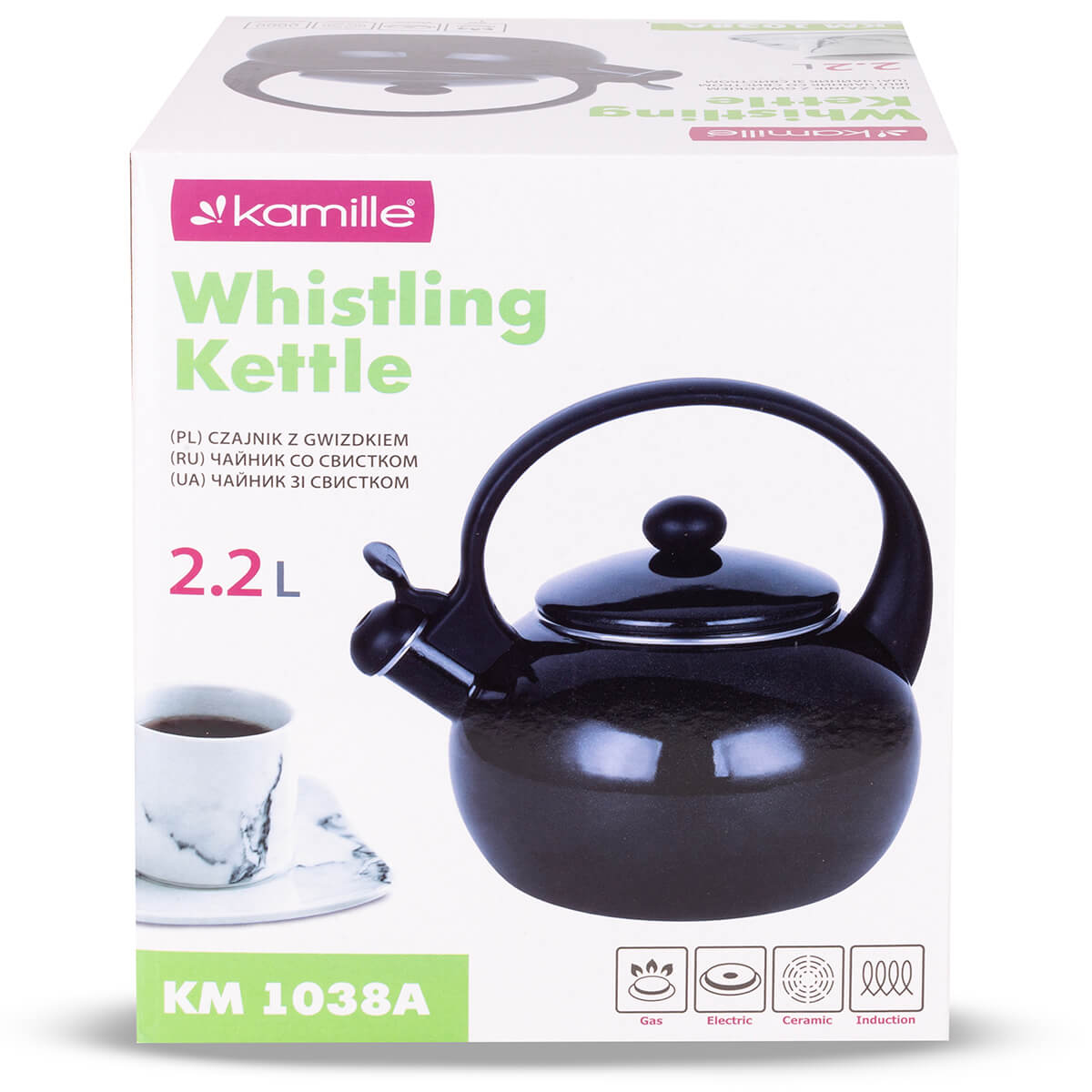 Elegancki i funkcjonalny czajnik 2,2 L Kamille z najnowszej linii wzorniczej wykonany z materiałów najwyższej jakości. Zrobiony ze stali pokrytej wewnątrz i zewnątrz warstwą emalii. Posiada funkcjonalny i nienagrzewający się bakelitowy uchwyt, który stabilnie będzie się trzymać w dłoni.Gładka, emaliowana powłoka ułatwia czyszczenie oraz uniemożliwia rozwój bakterii. Emalia odporna jest na promienie UV, co zapewnia trwałość i intensywność koloru przez długie lata. Czajnik emaliowany Kamille to znacznie więcej niż tylko przedmiot użytkowy - stanowi również niebagatelną ozdobę kuchni.