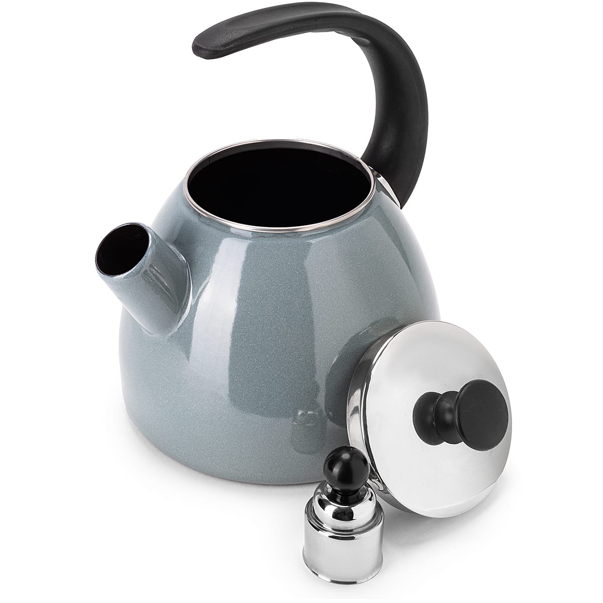 Funkcjonalny zdejmowany gwizdek informuje o zagotowaniu wody, dzięki czemu nie zapomnisz o czajniku na kuchence. Wygodny uchwyt z materiału odpornego na temperaturę zapewnia komfortowe i bezpieczne użytkowanie.