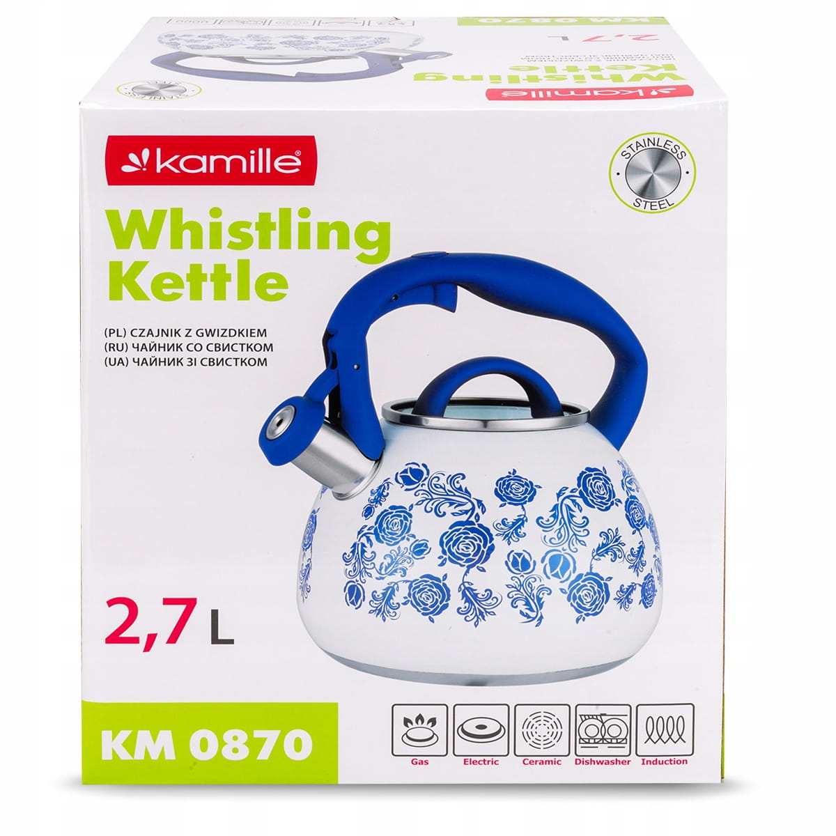 - umożliwia zagotowanie wody na kuchence gazowej, elektrycznej, ceramicznej i indukcyjnej