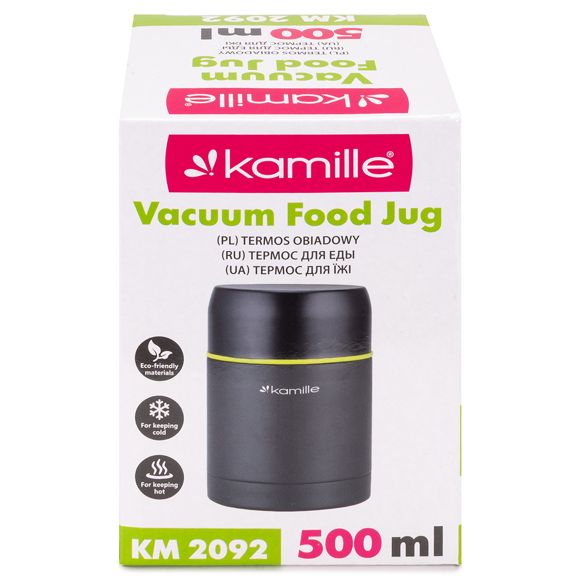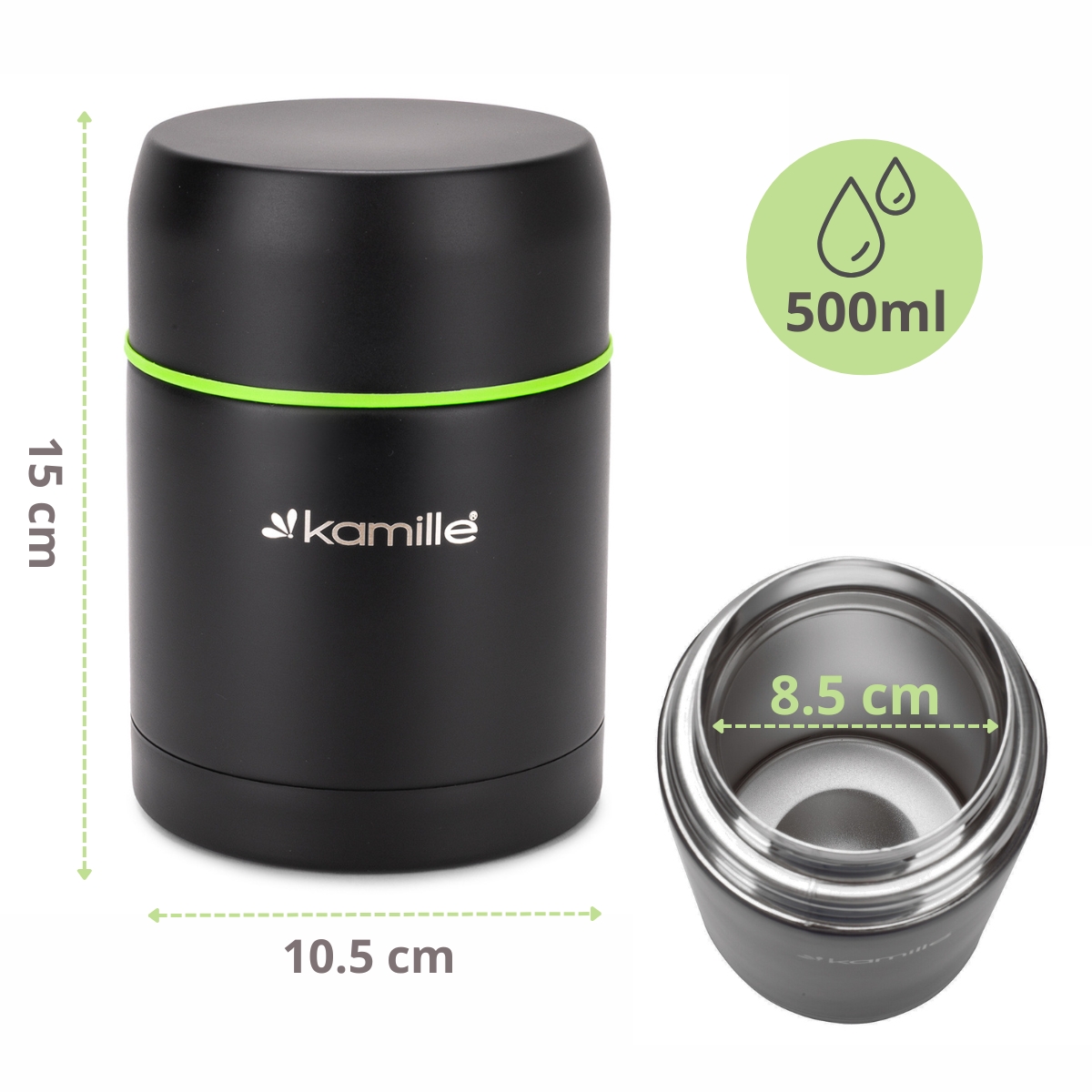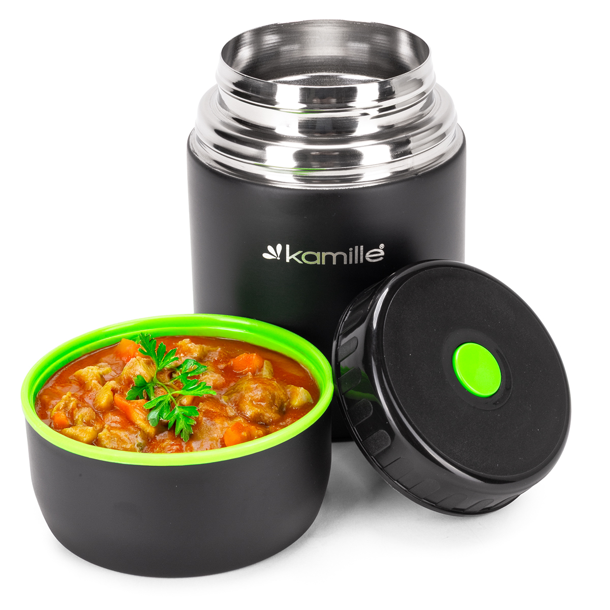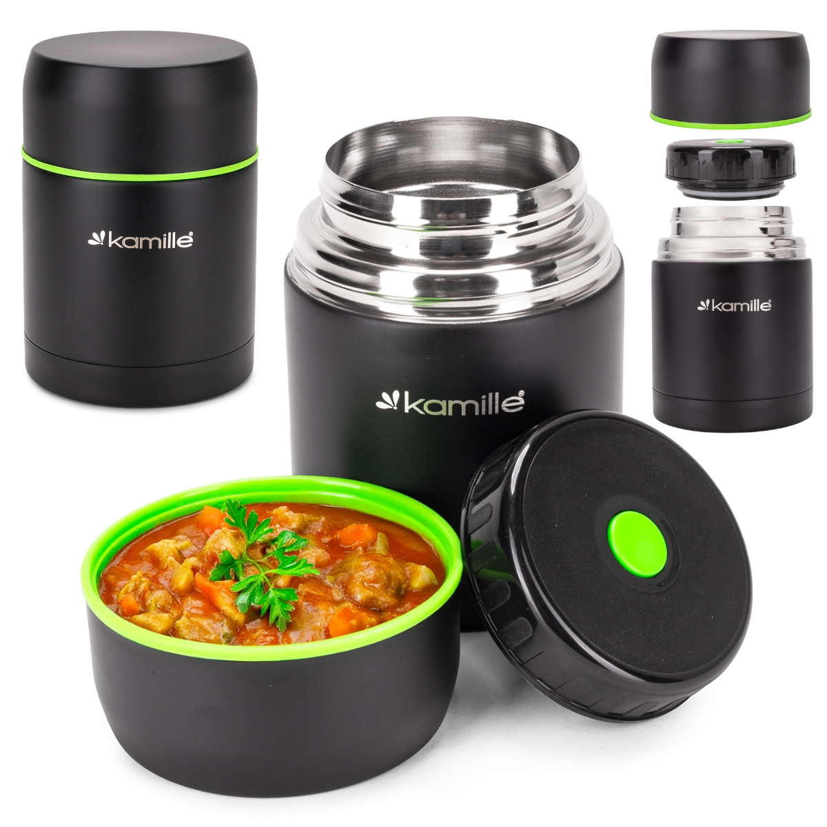Najwygodniej w termosie przechowuje się zupy, musy oraz dania jednogarnkowe. Do termosu zapakujesz ciepły posiłek swojemu dziecku. Termos obiadowy Kamille jest komfortowy w użytkowaniu, jedzenie z niego jest higieniczne i nie ma obawy o zabrudzenie odzieży podczas jedzenia, nawet w trudnych warunkach polowych np. podczas wycieczki szkolnej, na boisku sportowym itp.