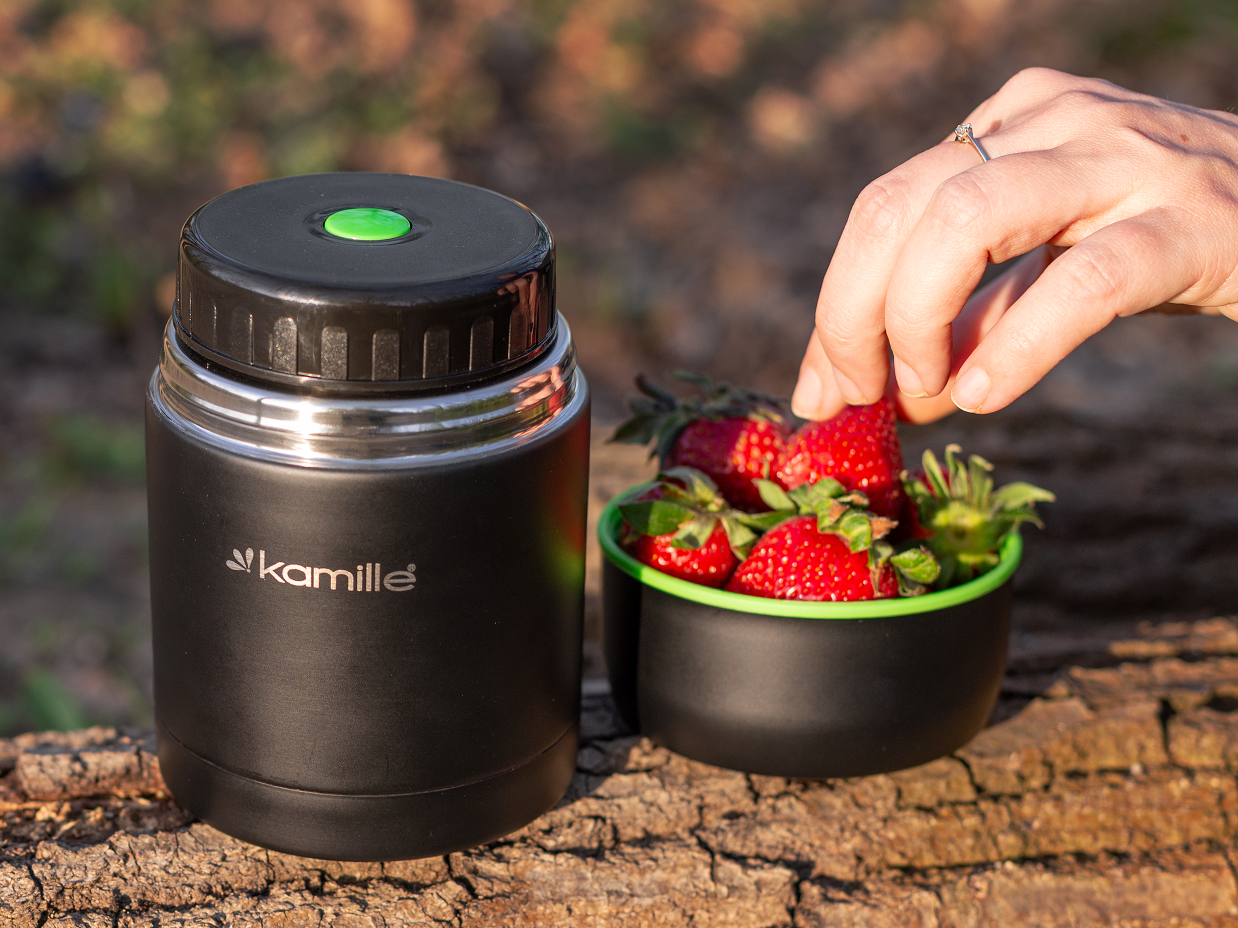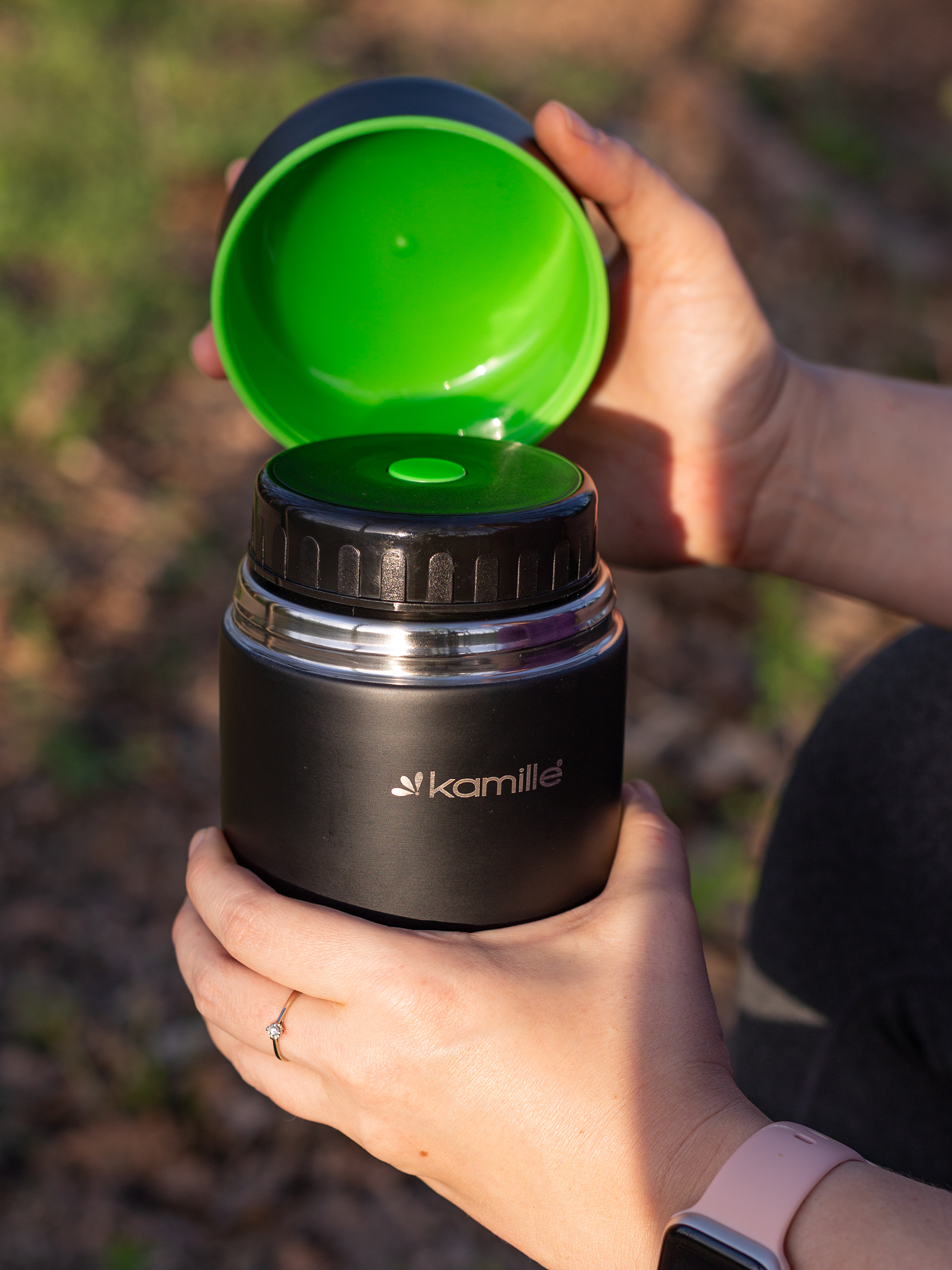Lunch Box Kamille rewelacyjnie spisuje się podczas trekkingu oraz biwaków. Zapewnia dostęp do ciepłego jedzenia podczas całodziennego wędrowania w terenie pozbawionym bazy turystycznej. Pusty termos jest łatwy do mycia dlatego zaraz po zjedzeniu obiadu można wlać do niego chłodny lub ciepły napój, który zachowa swoją niską temperaturę przez dalszą cześć dnia.