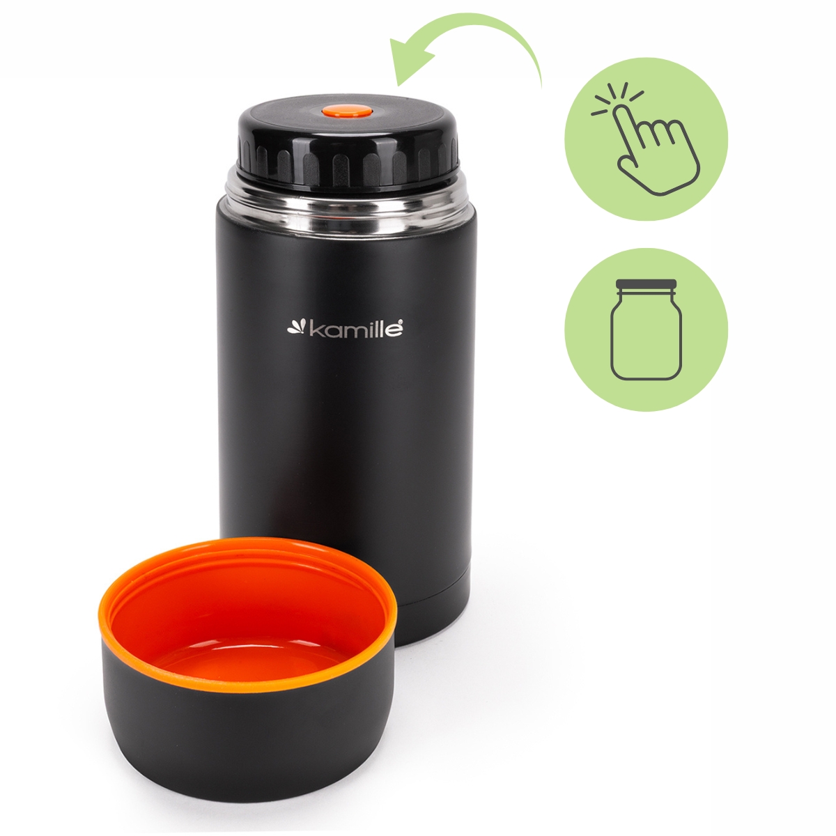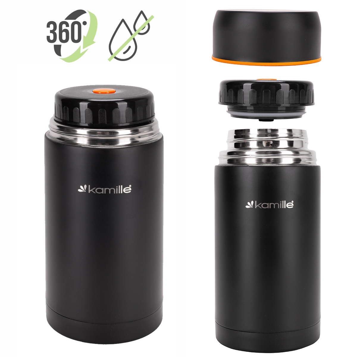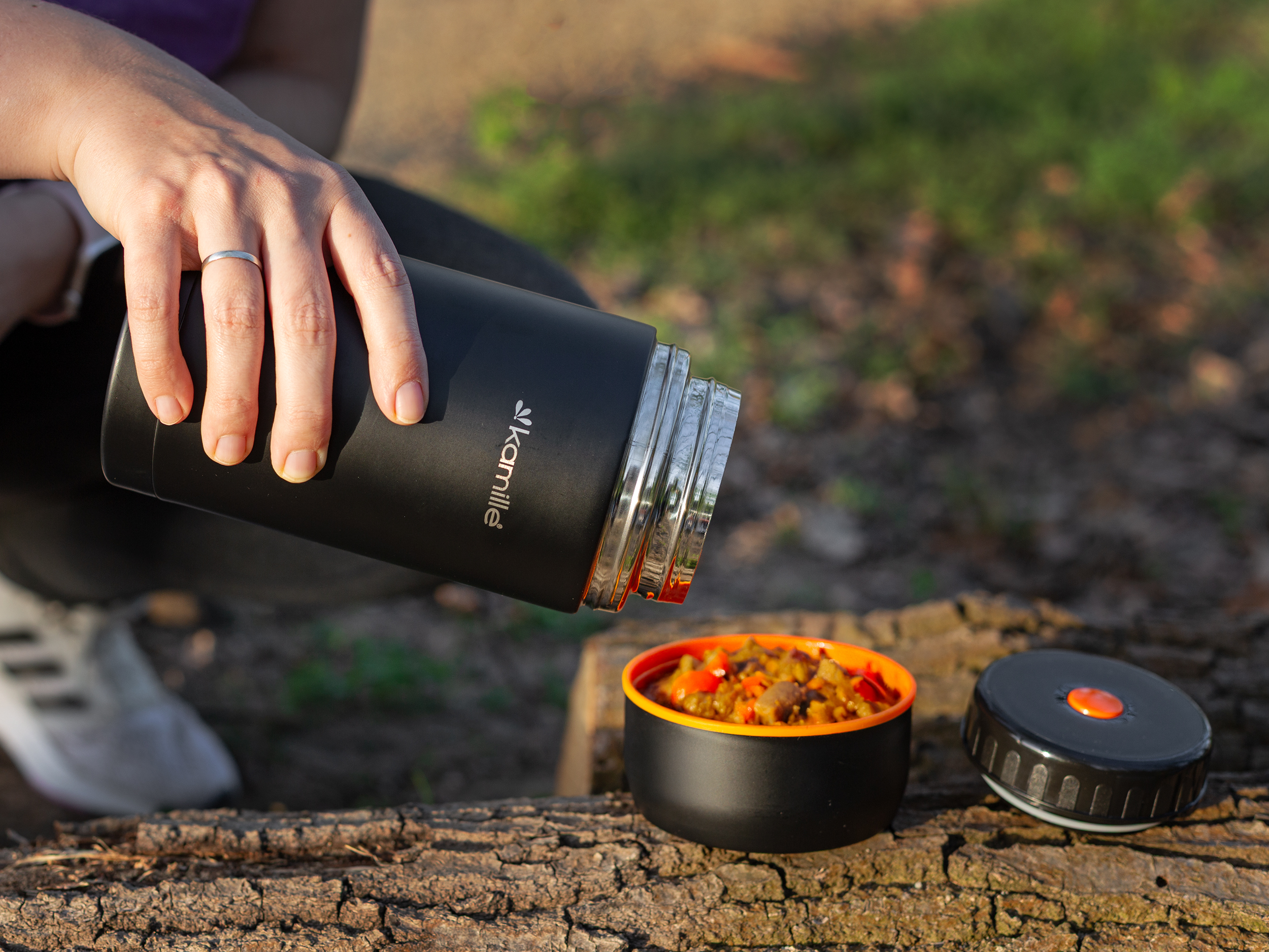 Termos na żywność Kamille poprawi Twój komfort nie tylko podczas wycieczek i wyjazdów turystycznych, ale również na co dzień. Dobre właściwości termiczne termosu na żywność Kamille wynikają z zastosowania podwójnych ścianek gwarantujących skuteczną izolację. W zakrętce wewnętrznej znajduje się dodatkowa silikonowa uszczelka dzięki której termos w 100% zachowuje szczelność. Zakrętka zewnętrzna została estetycznie wykończona tworzywem, które pozwala wykorzystywać ją jako miseczkę.