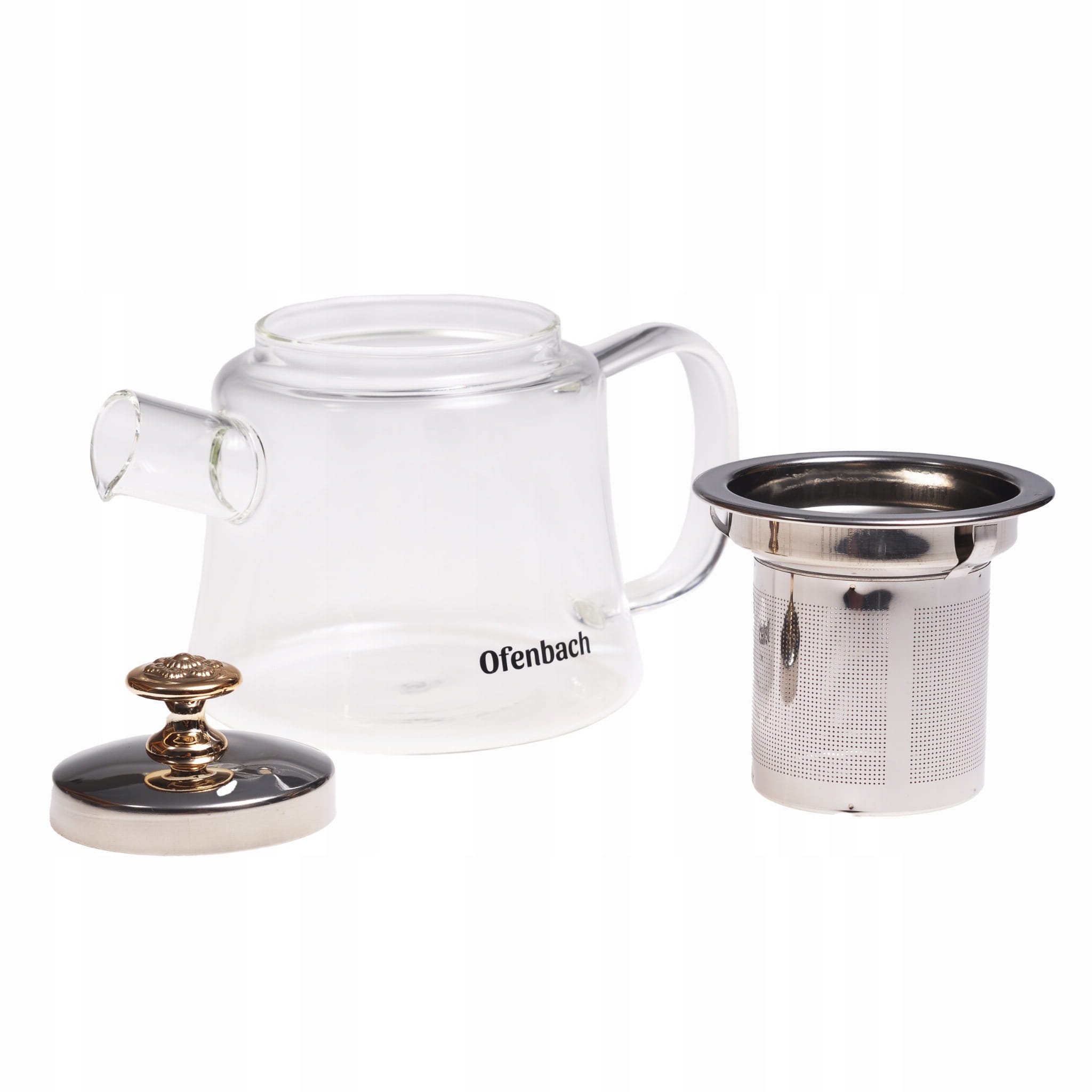 Dzbanek do herbaty Ofenbach wykonany z wysokiej jakości żaroodpornego i trwałego szkła oraz stali nierdzewnej.