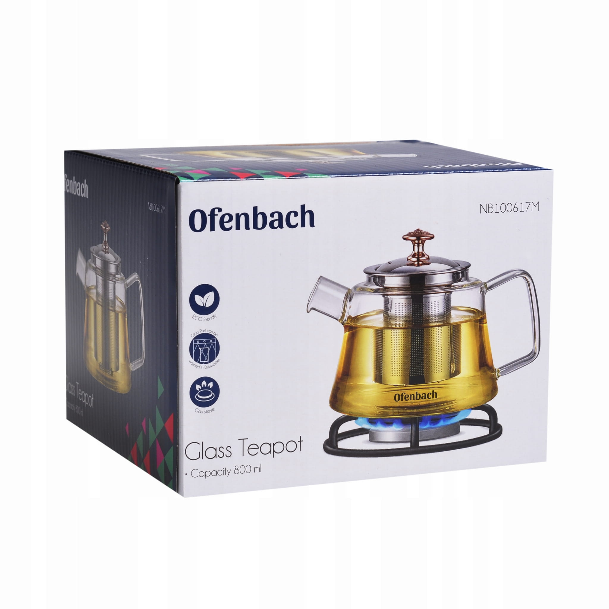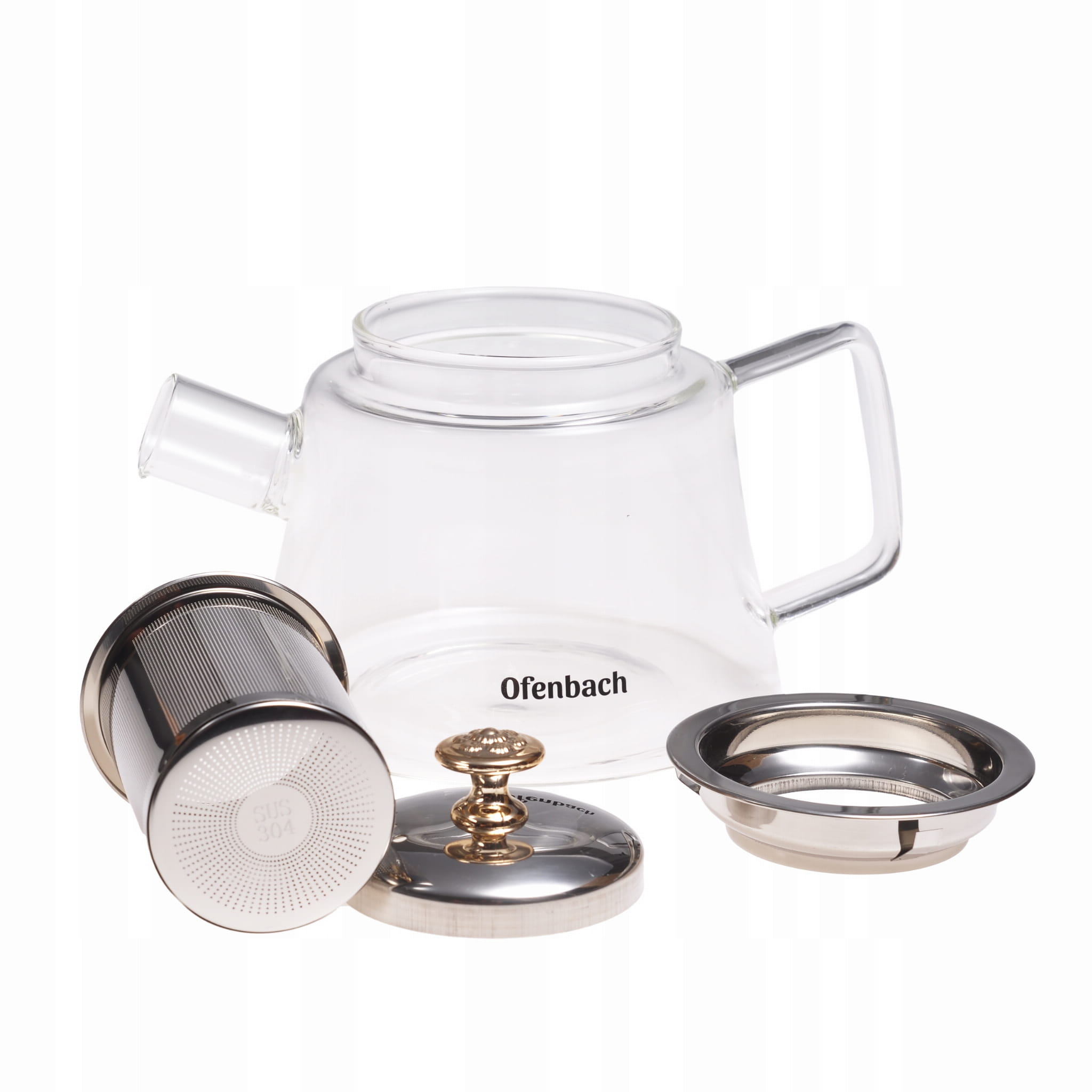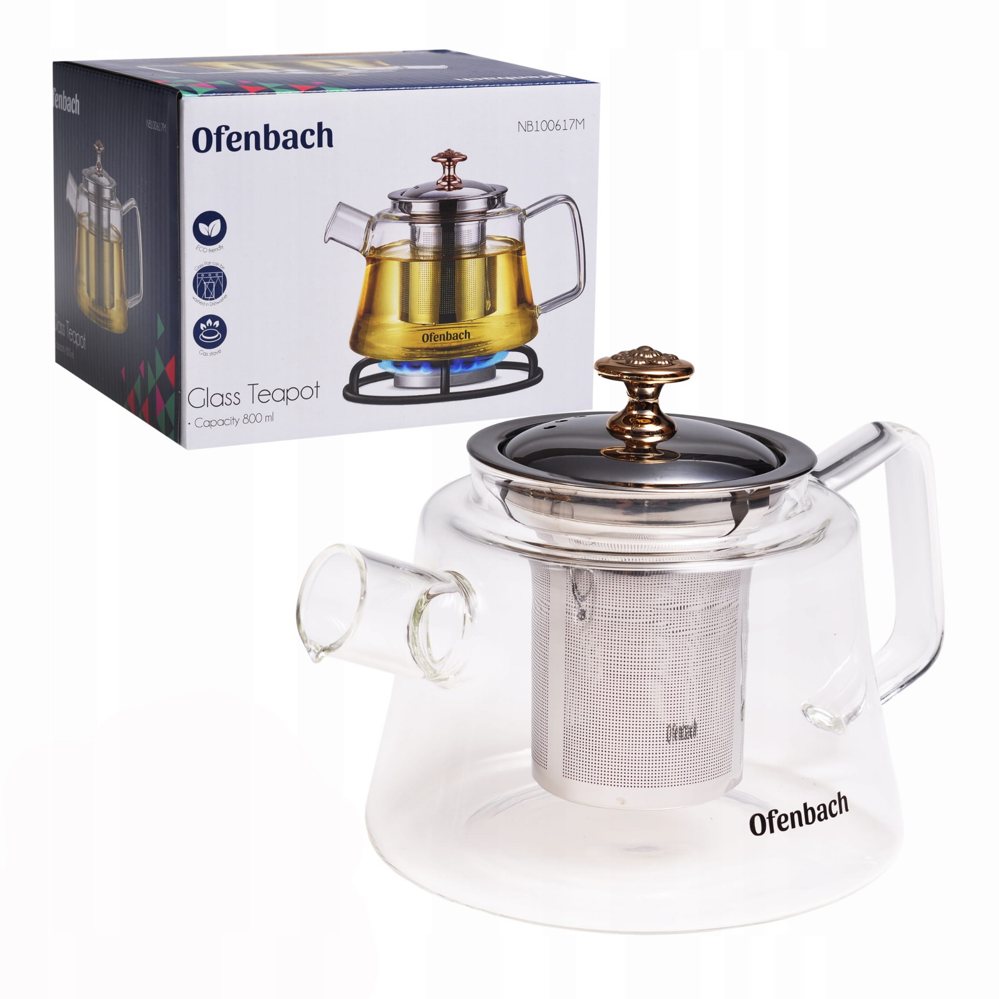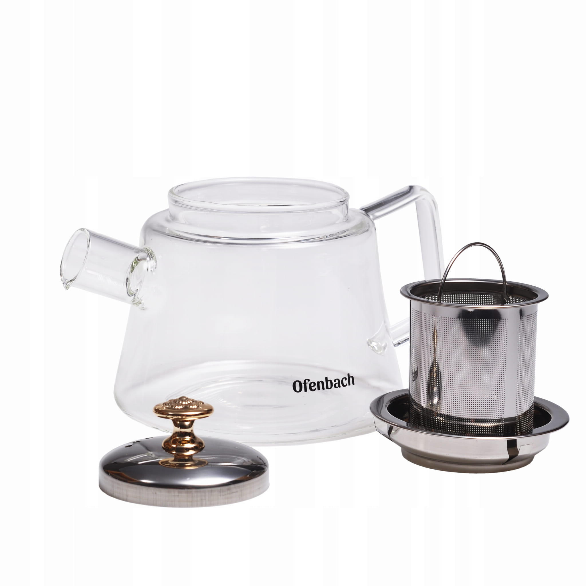 Dzbanek do herbaty Ofenbach wykonany z wysokiej jakości żaroodpornego i trwałego szkła oraz stali nierdzewnej.