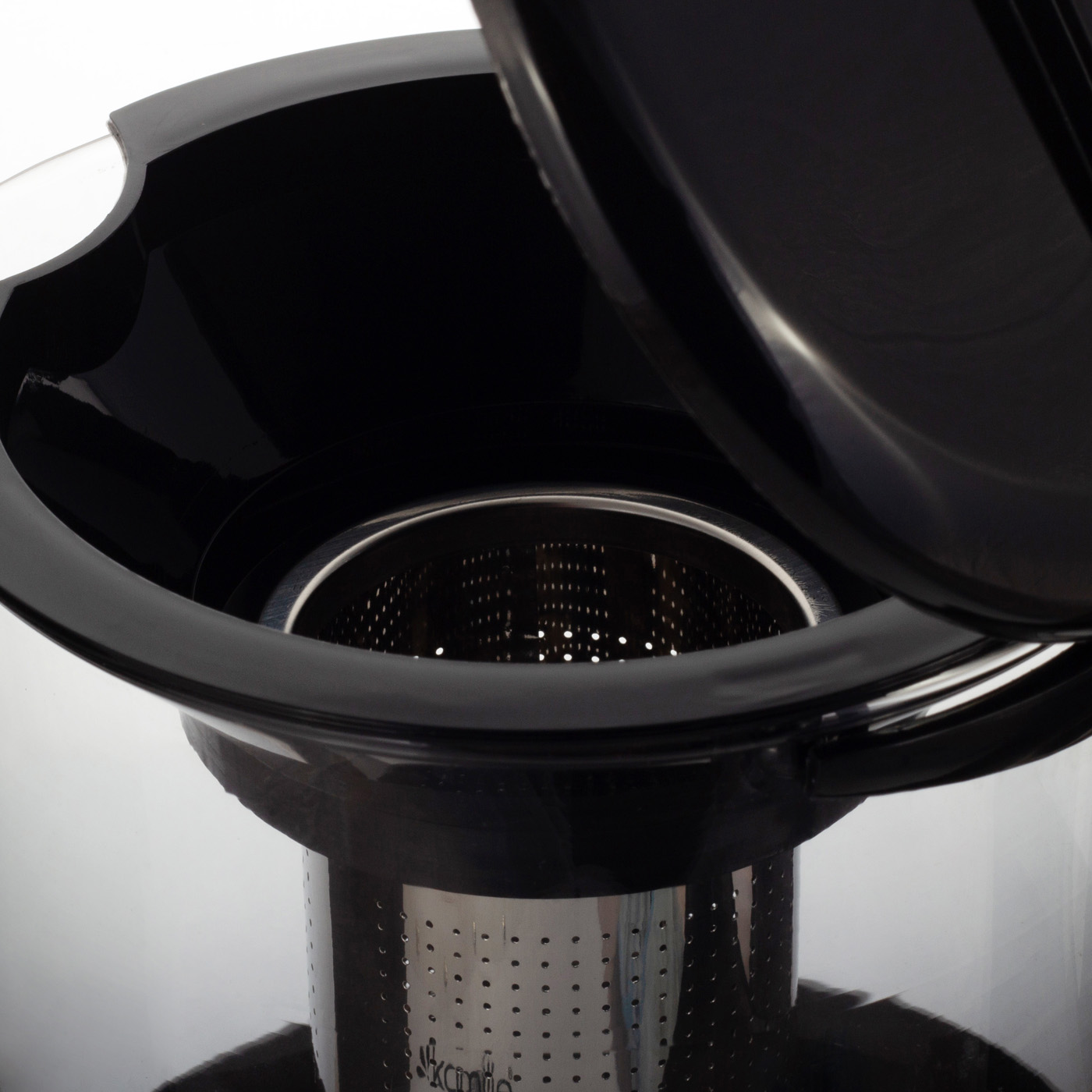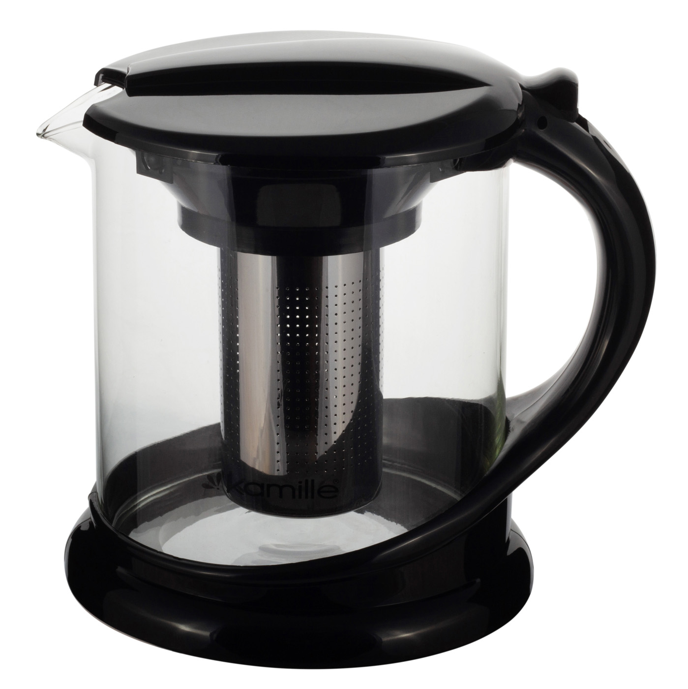 Zaparzacz do herbaty wykonany z wysokiej jakości tworzywa sztucznego oraz żaroodpornego i trwałego szkła. Dzbanek posiada stalowe sitko, które umożliwia przygotowanie herbat oraz naparów o intensywnym smaku i aromacie już w kilka minut. Kształt dzióbka sprawia że z łatwością przelejemy gorący napój do kubków. Może być używany do herbat liściastych, ziołowych, owocowych a bez zaparzacza do napojów zimnych. Wyposażony w wygodny uchwyt, który stabilnie będzie się trzymać w dłoni. Pokrywka ułatwiająca otwieranie chroni przed poparzeniem.
