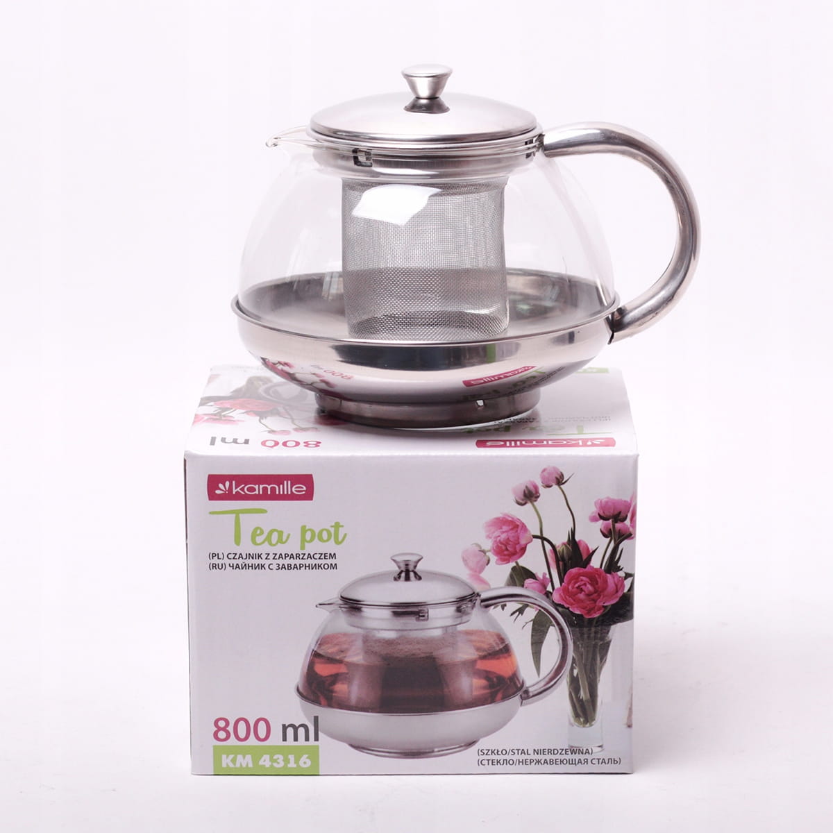Zaparzacz do herbaty Kamille wykonany z wysokiej jakości stali nierdzewnej oraz żaroodpornego i trwałego szkła. Dzbanek posiada stalowe sitko, które umożliwia przygotowanie kawy lub herbaty o intensywnym smaku i aromacie już w kilka minut. Kształt dzióbka sprawia że z łatwością przelejemy gorący napój do kubków. Wyposażony w wygodny uchwyt, który stabilnie będzie się trzymać w dłoni.
