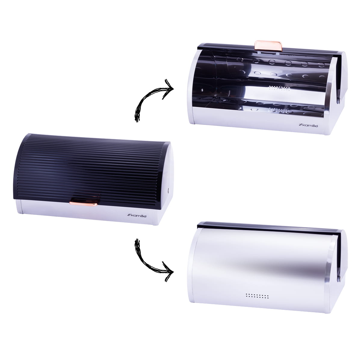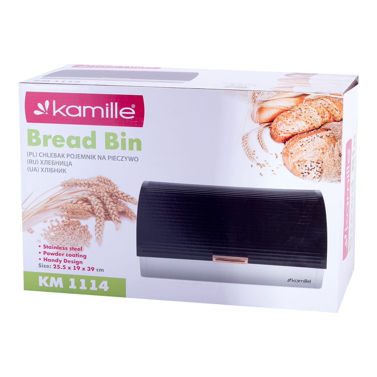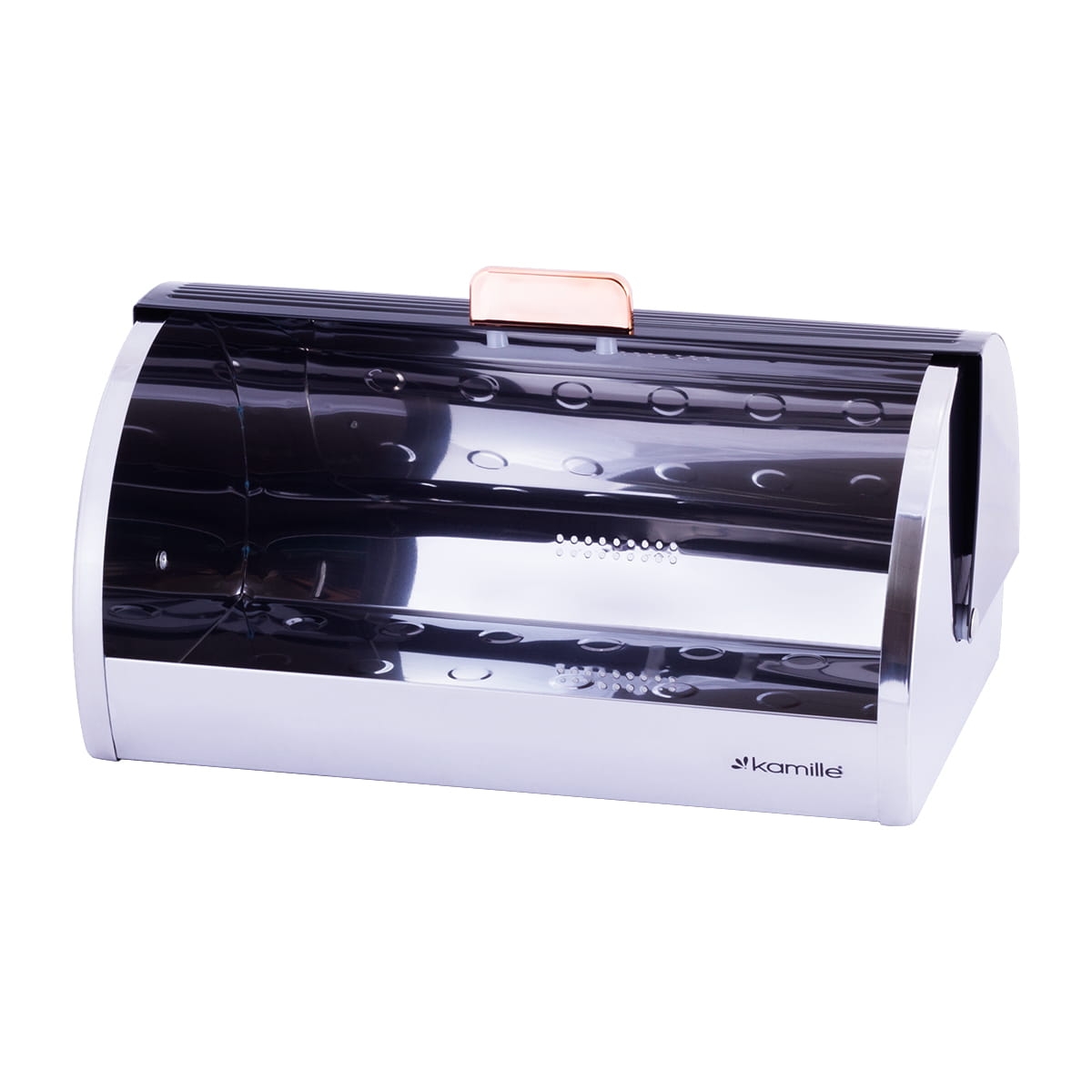 Jeżeli zależy Ci na świeżym i puszystym chlebie to właśnie dla ciebie stworzony chlebak Kamille. Funkcjonalny i estetyczny atrakcyjny wygląd sprawdzi się w każdej kuchni i będzie służył przez wiele lat. Chlebak wykonany ze stali nierdzewnej, natomiast pokrywa ze stali lakierowanej na połysk. Zastosowany materiał jest nie tylko najlepszy z możliwych, ale także świetnie się prezentują i jest wyjątkowo łatwy w czyszczeniu. Nowoczesny i elegancki o wysokiej jakości i dokładnie wykonany chlebak zachowa świeżość pieczywa na dłuższy czas i stanie się ciekawym elementem dekoracyjnym kuchni.