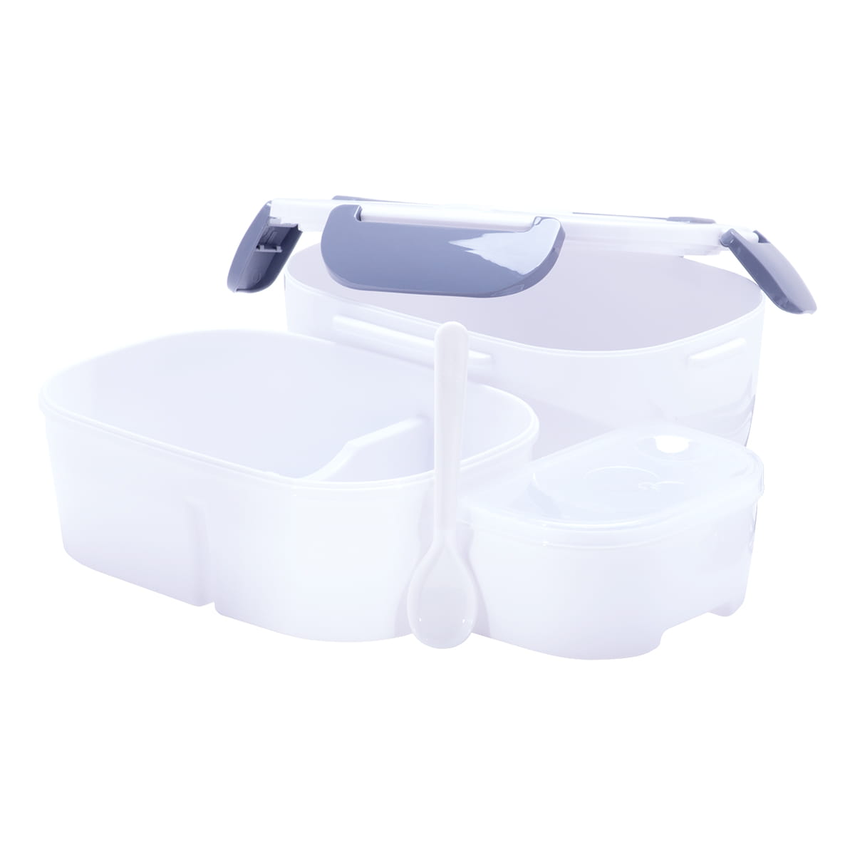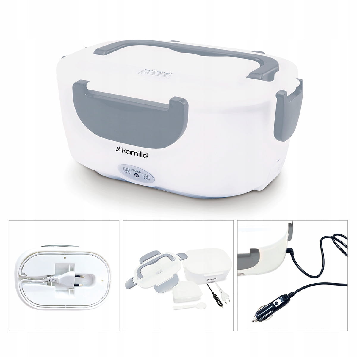 Wielofunkcyjny, podgrzewany pojemnik na żywność Kamille charakteryzuje się niezawodnością, najwyższą jakością i estetycznym designerskim wykonaniem. Idealnie sprawdzi się w pracy, na studiach, w podróży, na działce i podczas wakacji. Podgrzewa żywność aż do 50°C i nawet po odłączeniu zasilania długo utrzymuje jej temperaturę. Dwie komory i zamykany pojemnik wewnątrz oraz ergonomiczna, składana rączka uczynią korzystanie z pojemnika bardzo wygodnym. Zatrzaski przytrzymujące pokrywkę, solidna uszczelka oraz zawór bezpieczeństwa nie pozwolą żywności wydostać się na zewnątrz w najmniej oczekiwanej sytuacji. Sprytnie schowana łyżeczka w komplecie!