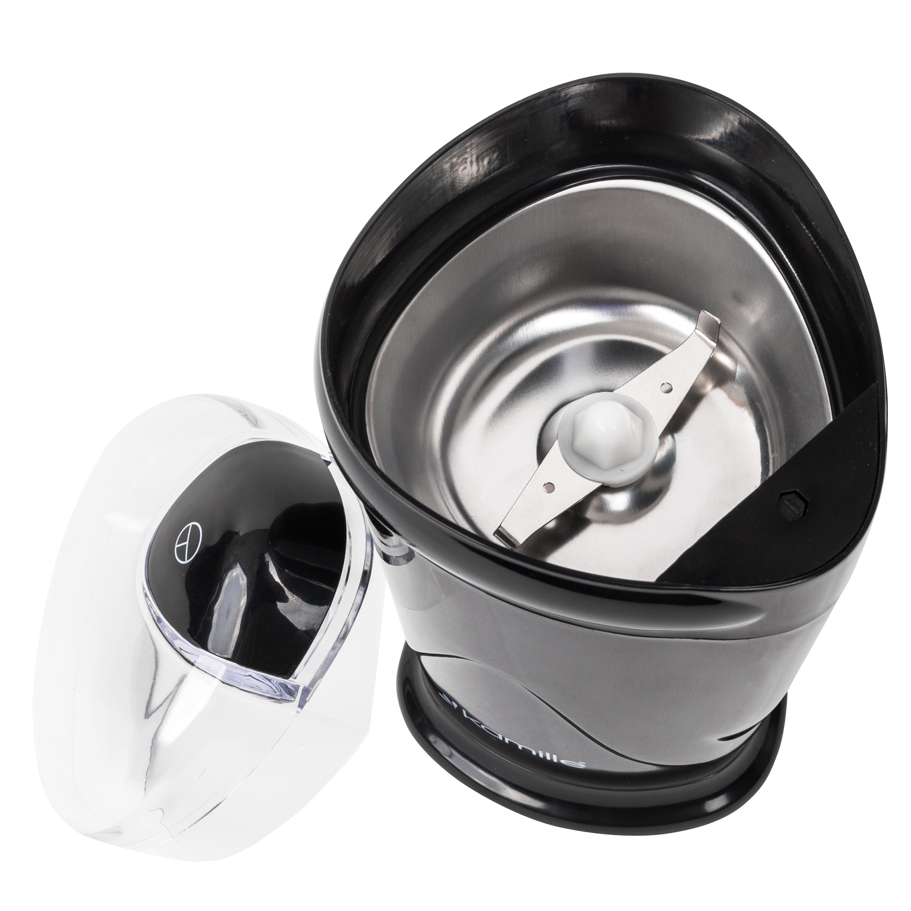 Elektryczny młynek do kawy Kamille to praktyczne urządzenie, które pozwala szybko zmielić ziarna i wydobyć pełny aromat świeżej kawy. Wyposażony w wydajny silnik oraz ostrza ze stali nierdzewnej, zapewnia szybkie i równomierne mielenie ziaren, a także przypraw czy orzechów. Kompaktowa konstrukcja i prosta obsługa sprawiają, że młynek doskonale sprawdzi się w każdej kuchni. Przezroczysta pokrywa umożliwia kontrolę procesu mielenia, dzięki czemu łatwo uzyskać idealną konsystencję kawy.