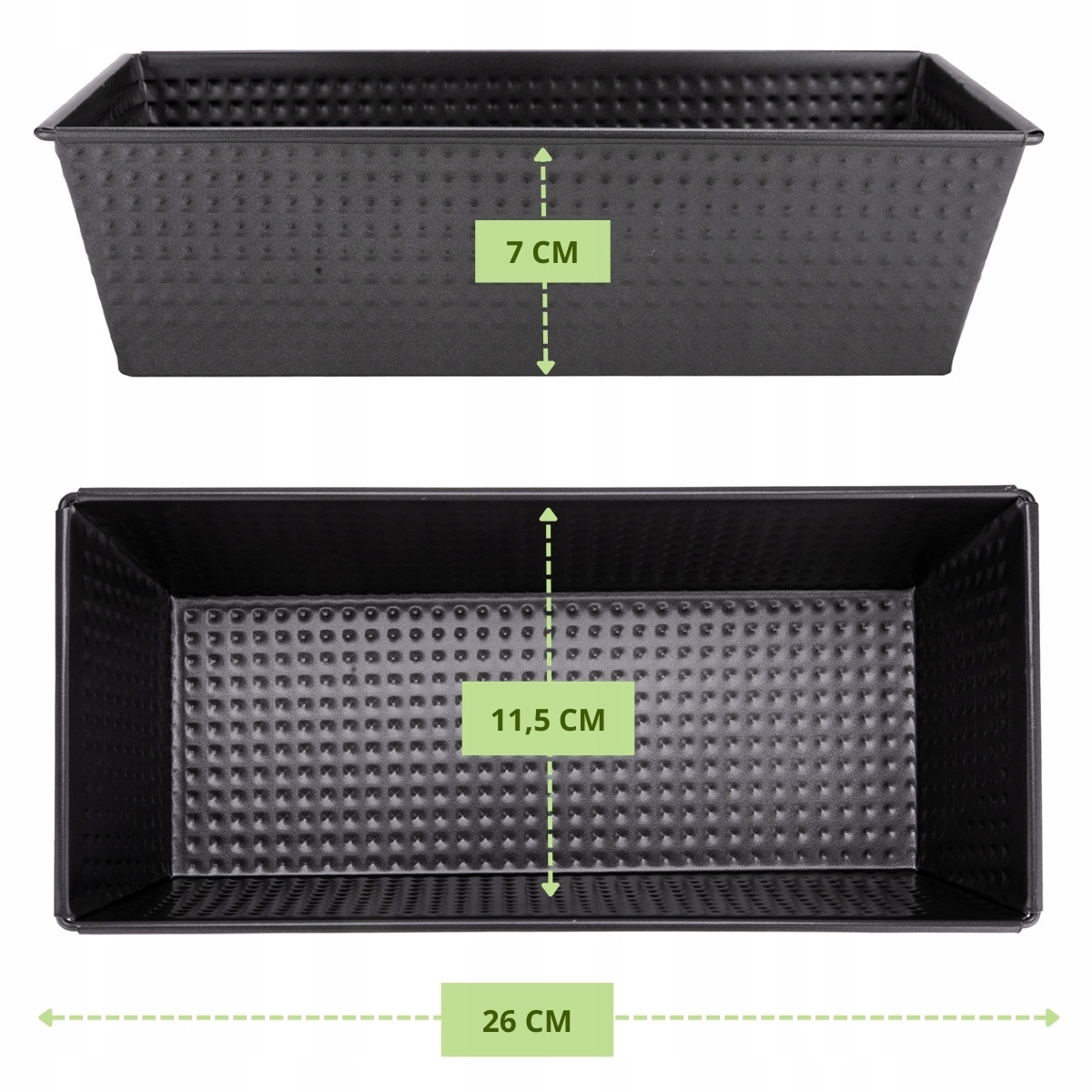 Dzięki wymiarom ok. 26 × 12–13 × 5–6 cm, keksówka oferuje idealną pojemność do przygotowania klasycznych wypieków, takich jak chleb domowy, keks, pasztet czy ciasta ucierane . Prostokątny kształt pozwala uzyskać równy, estetyczny bochenek lub ciasto, co jest szczególnie ważne przy wypiekach na sprzedaż lub na specjalne okazje. To uniwersalna forma do pieczenia chleba 26 cm, która pasuje do większości standardowych piekarników.