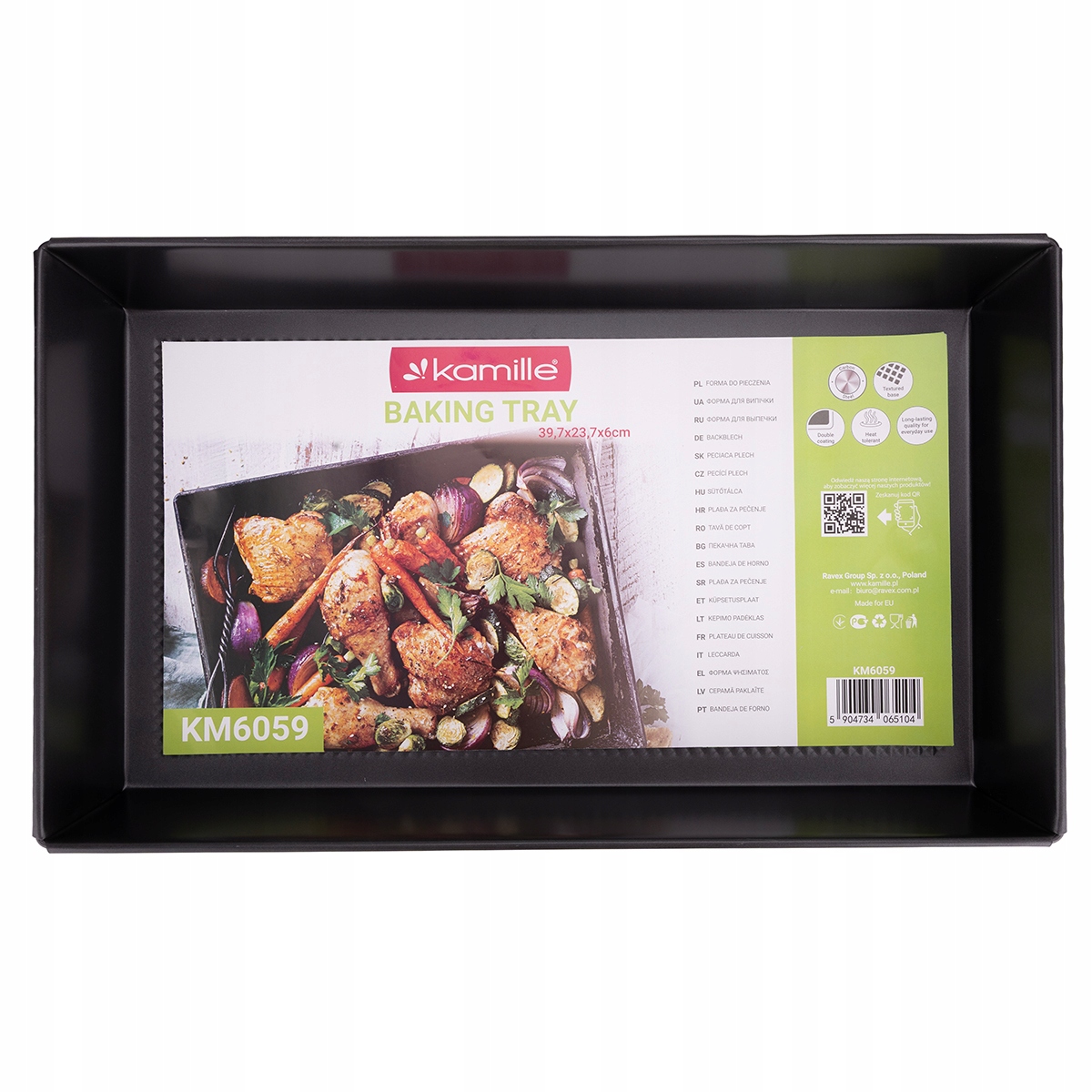 Jeśli szukasz blachy do pieczenia 39x24 cm, formy do zapiekanek non-stick lub dużej formy do piekarnika do ciast i dań obiadowych, model Kamille to bardzo dobry wybór. Łączy trwałość, dużą pojemność i wygodę użytkowania, dzięki czemu sprawdzi się zarówno w domowej kuchni, jak i przy przygotowywaniu większych porcji na rodzinne spotkania czy święta.