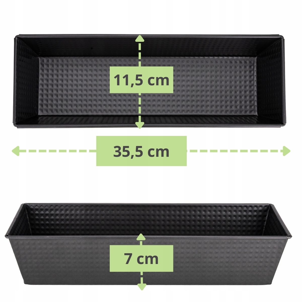 Dzięki wymiarom 35,5 × 11,5 × 7 cm, keksówka oferuje dużą pojemność, idealną do wypieku chleba domowego, keksu, pasztetu czy ciast ucieranych . Prostokątny kształt pozwala uzyskać równy, estetyczny bochenek lub ciasto, co ma znaczenie zarówno przy domowym pieczeniu, jak i przygotowywaniu wypieków na sprzedaż. To praktyczna forma do pieczenia chleba 35 cm, która sprawdzi się w każdym standardowym piekarniku.