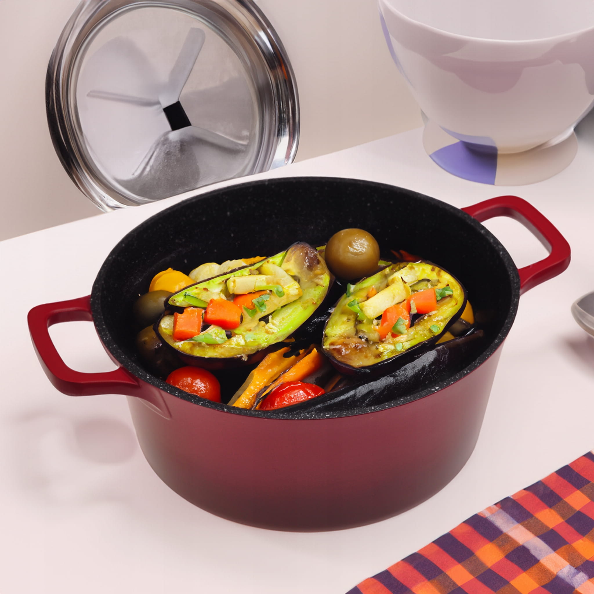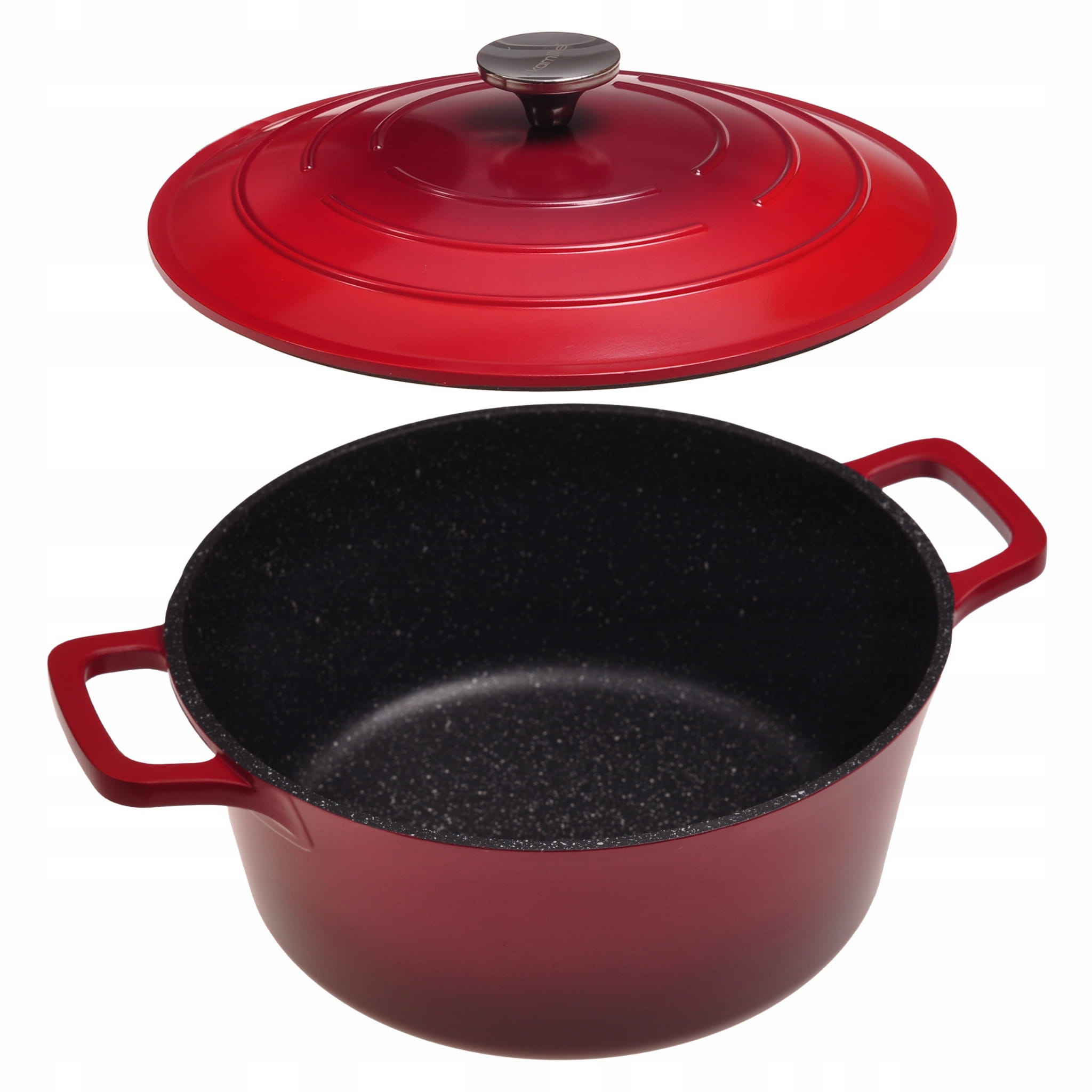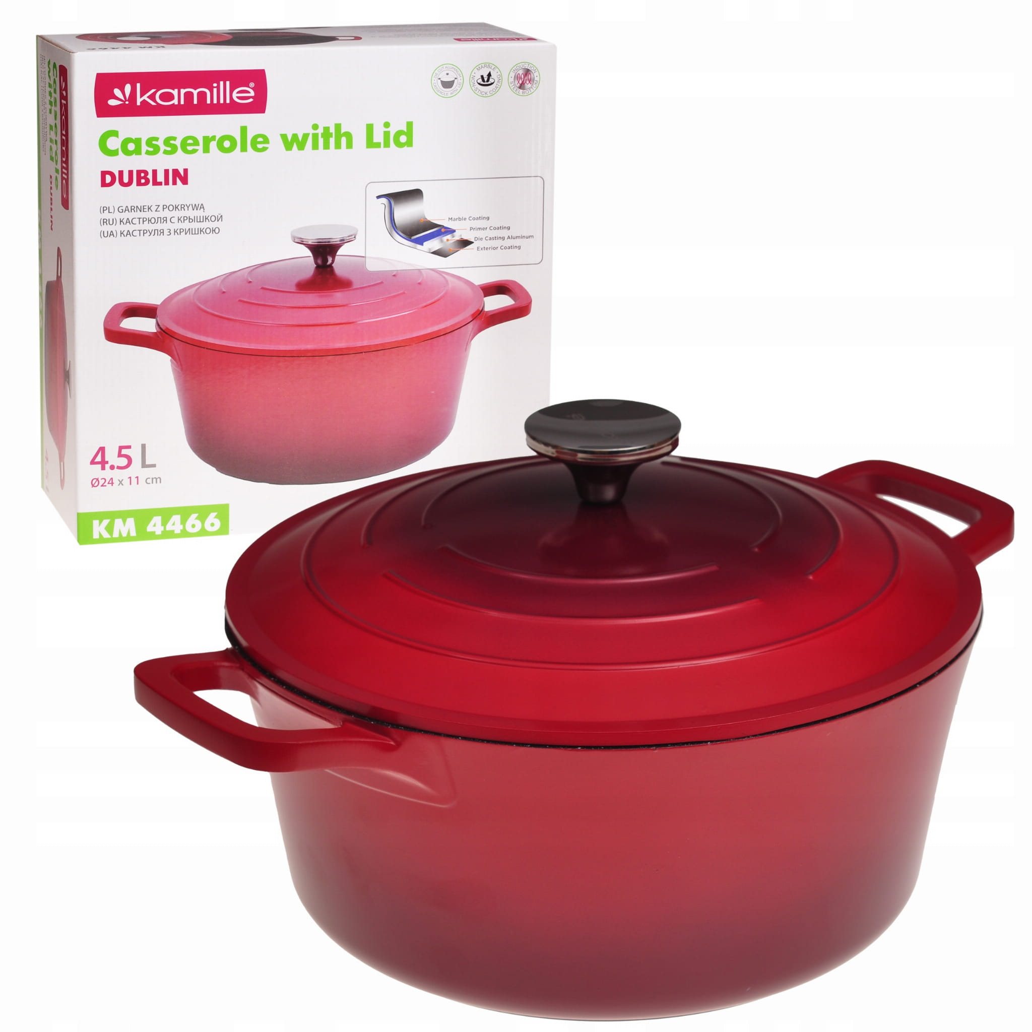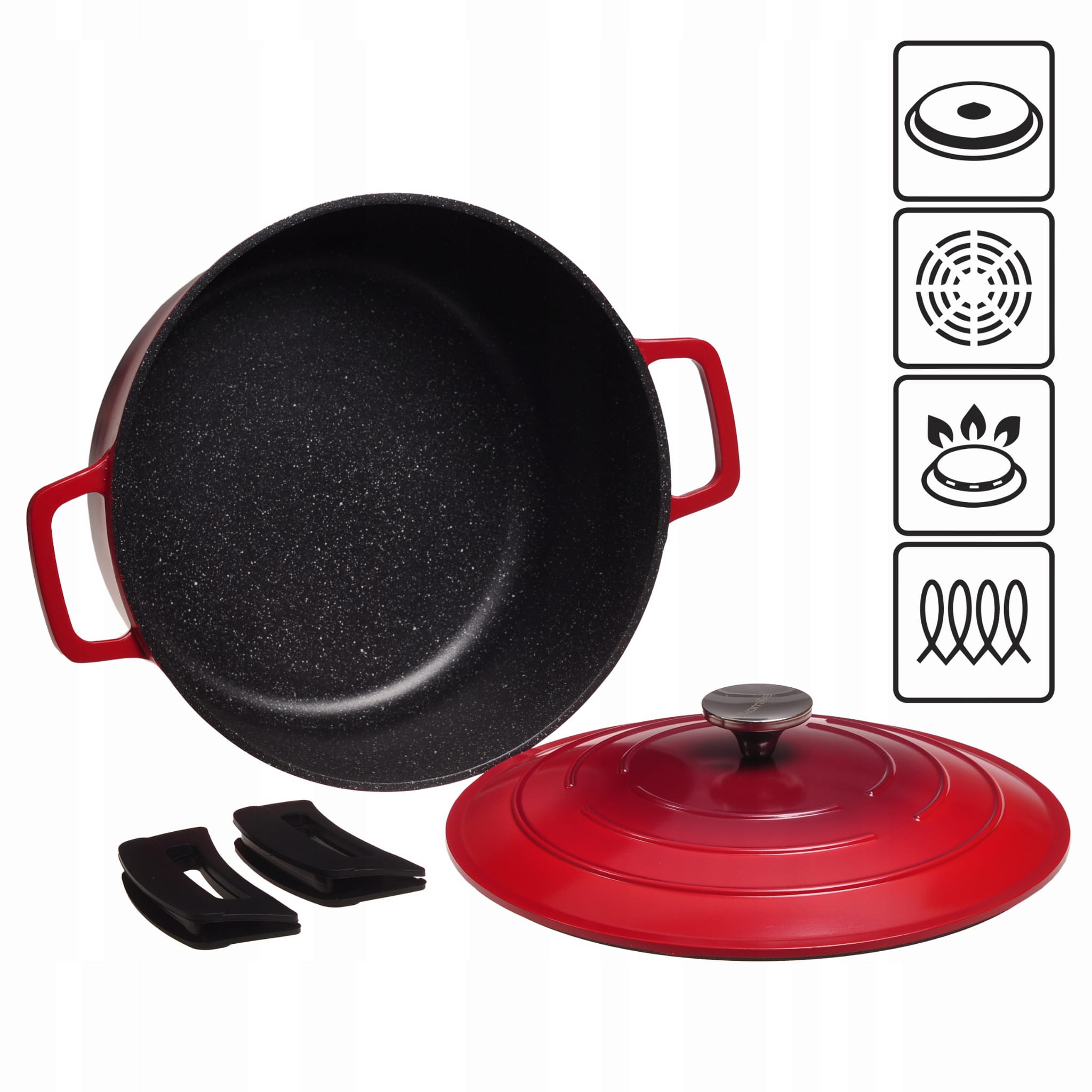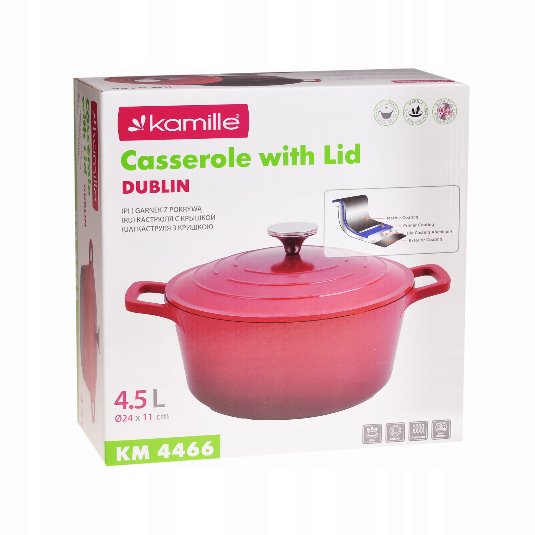 Garnek z powłoką marmurową Kamille - odkryj nowy wymiar gotowania z naszym wyjątkowym garnkiem aluminiowym z powłoką marmurową – wszechstronnym rozwiązaniem, które może pełnić rolę zarówno garnka, jak i brytfanny czy naczynia do zapiekania. Garnek został wykonany z wysokiej jakości aluminium, jest odporny na obciążenia mechaniczne, co zapewnia jego trwałość oraz wygodę użytkowania.