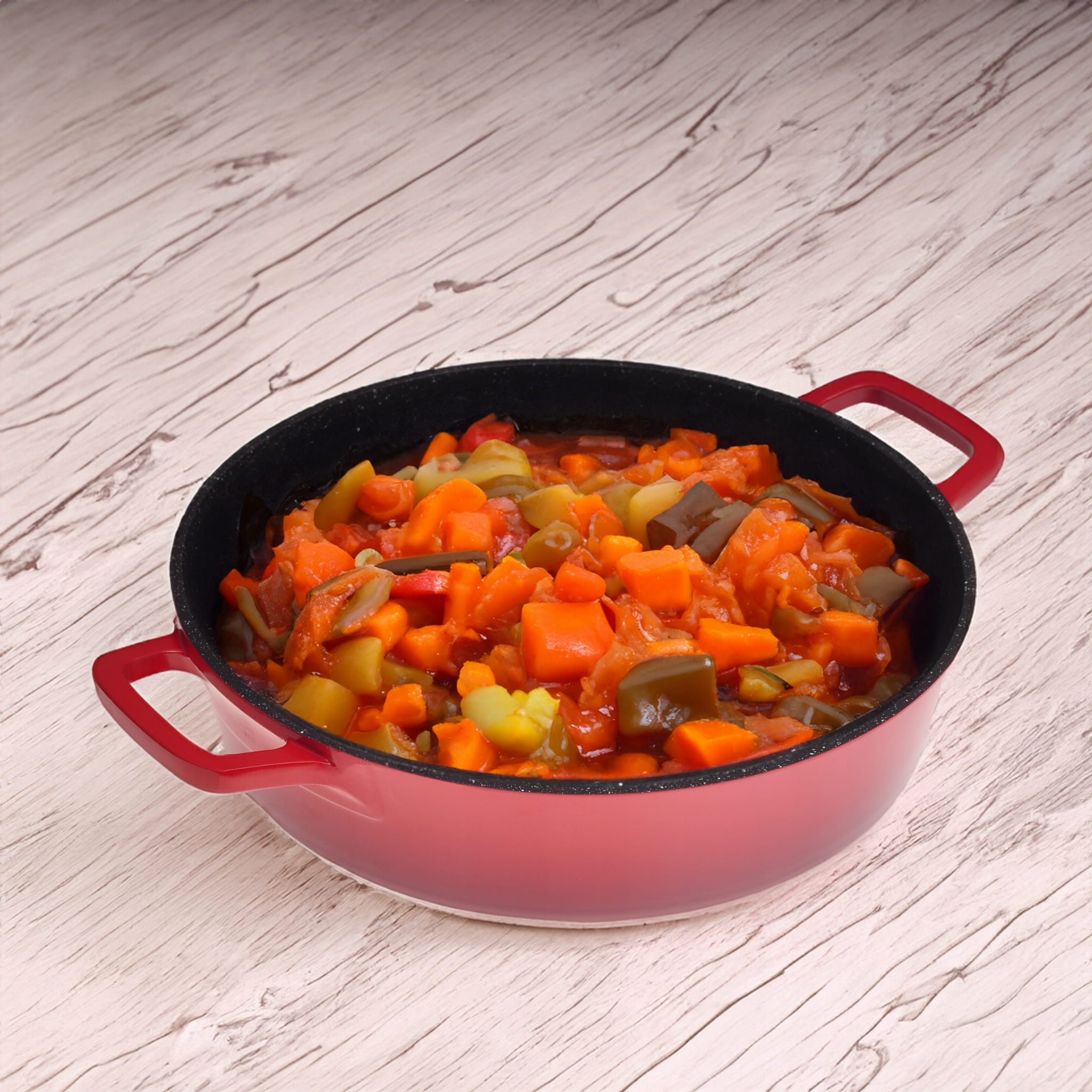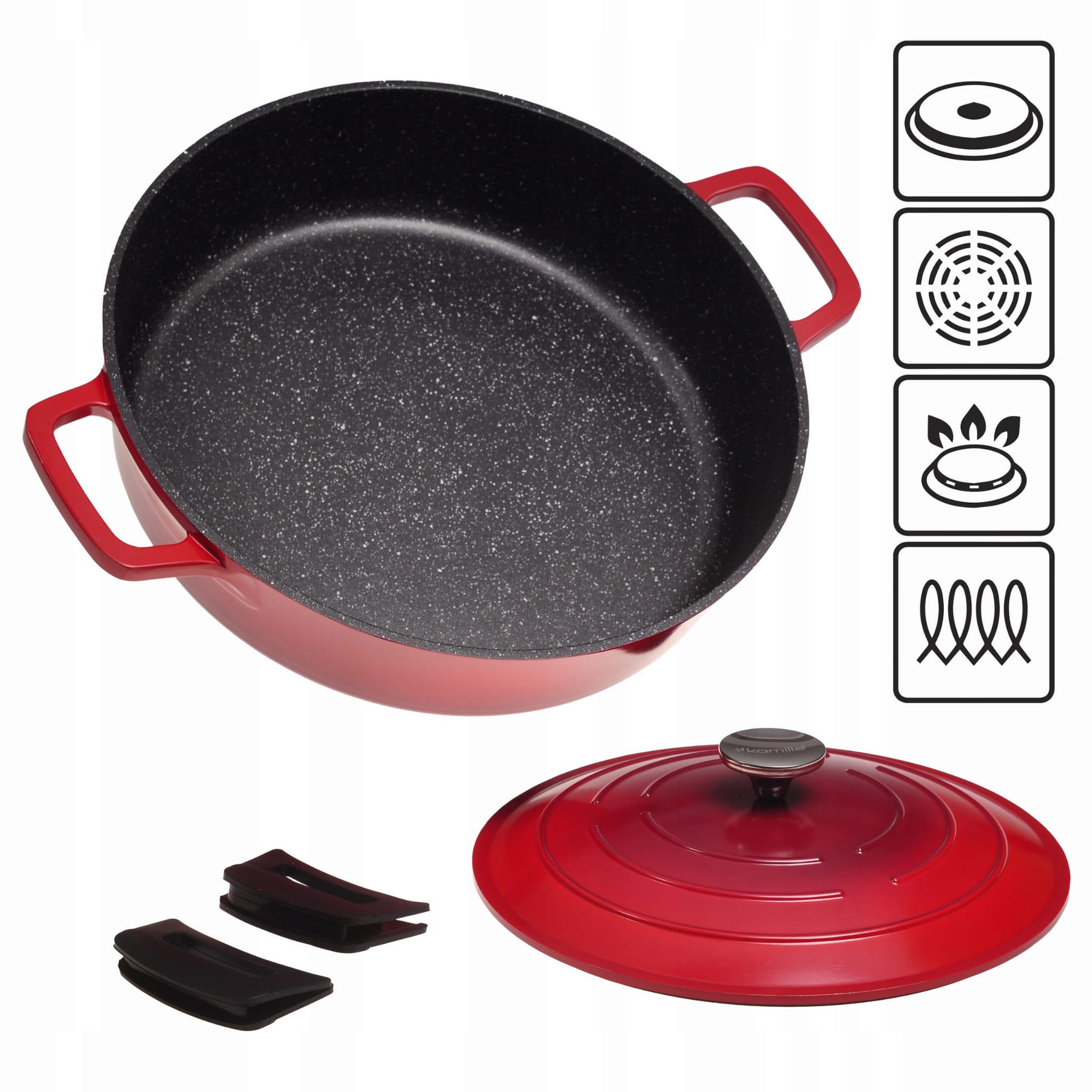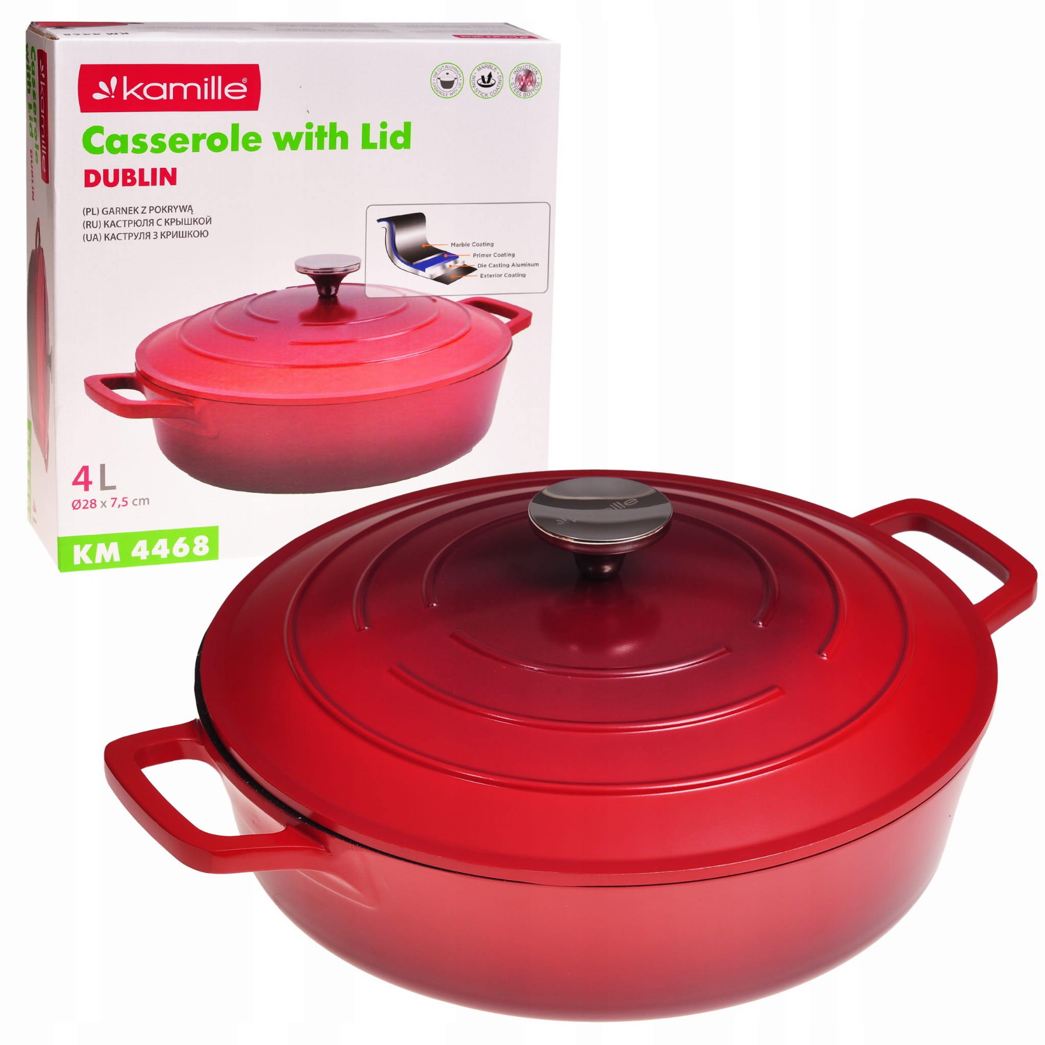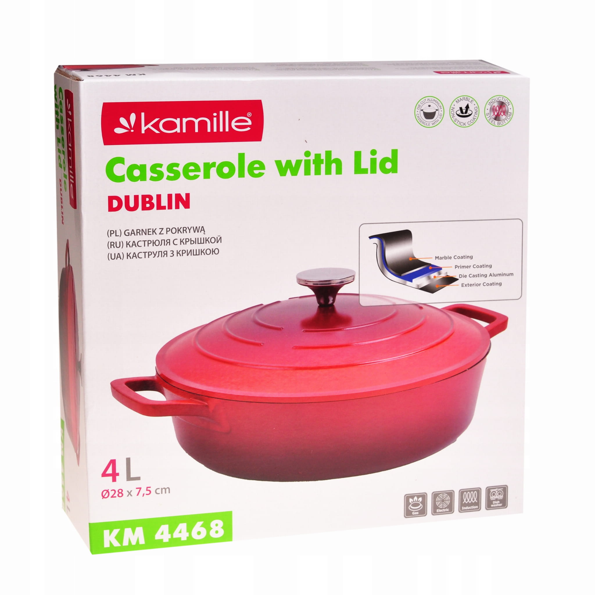 Garnek z powłoką marmurową Kamille - odkryj nowy wymiar gotowania z naszym wyjątkowym garnkiem aluminiowym z powłoką marmurową – wszechstronnym rozwiązaniem, które może pełnić rolę zarówno garnka, jak i brytfanny czy naczynia do zapiekania. Garnek został wykonany z wysokiej jakości aluminium, jest odporny na obciążenia mechaniczne, co zapewnia jego trwałość oraz wygodę użytkowania.