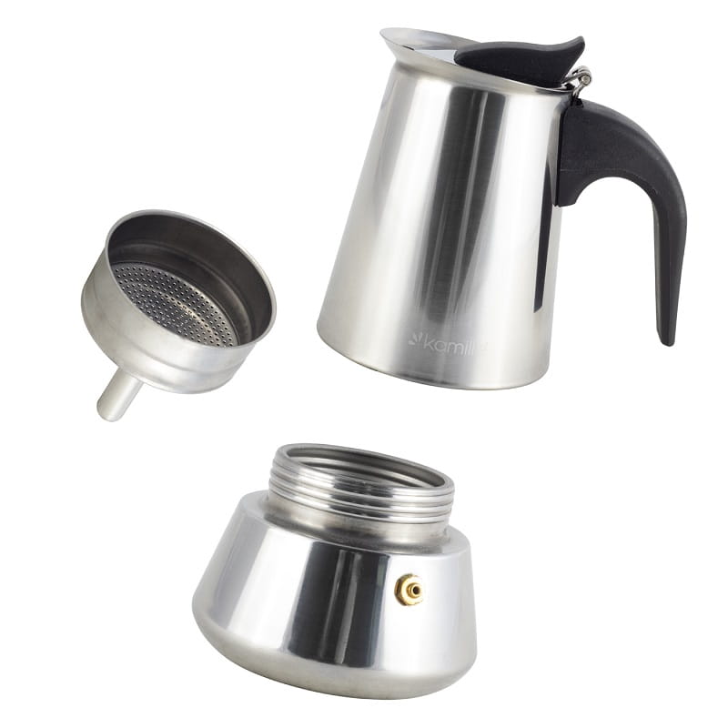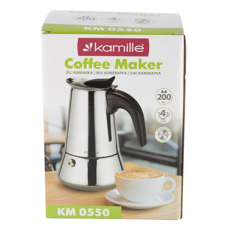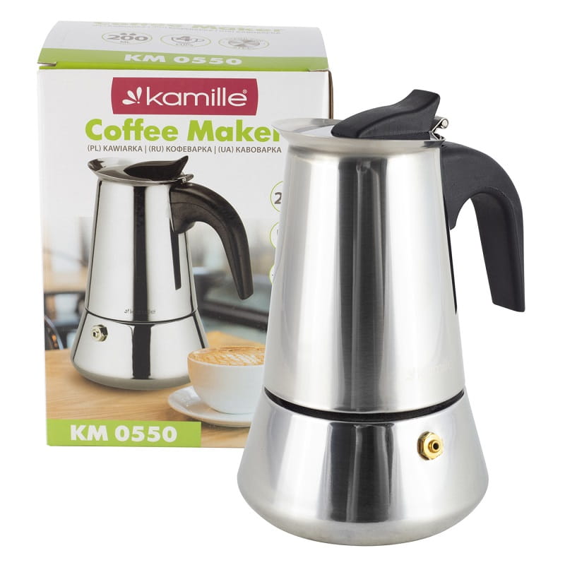 Elegancka i funkcjonalna kawiarka jest urządzeniem, dzięki któremu można bardzo szybko i łatwo zaparzyć esencjonalne i aromatyczne espresso. Makinetka wykonana z wysokiej jakości stali nierdzewnej. Ma unikalną jednobryłową konstrukcję, która podoba się większości kawoszom. Jeśli wybierzesz, to obiecujemy, że kawiarka ta będzie nieodzownym towarzyszem wszystkich Twoich śniadań.Moka została wyposażona w zaworek ciśnieniowy w celu odprowadzania nadmiaru pary wodnej, co zapewnienia długą bezawaryjną eksploatację. Produkt o pojemności 200 ml pozwala na przygotowanie 4 filiżanek kawy. Posiada funkcjonalny bakelitowy uchwyt, który stabilnie będzie się trzymać w dłoni.