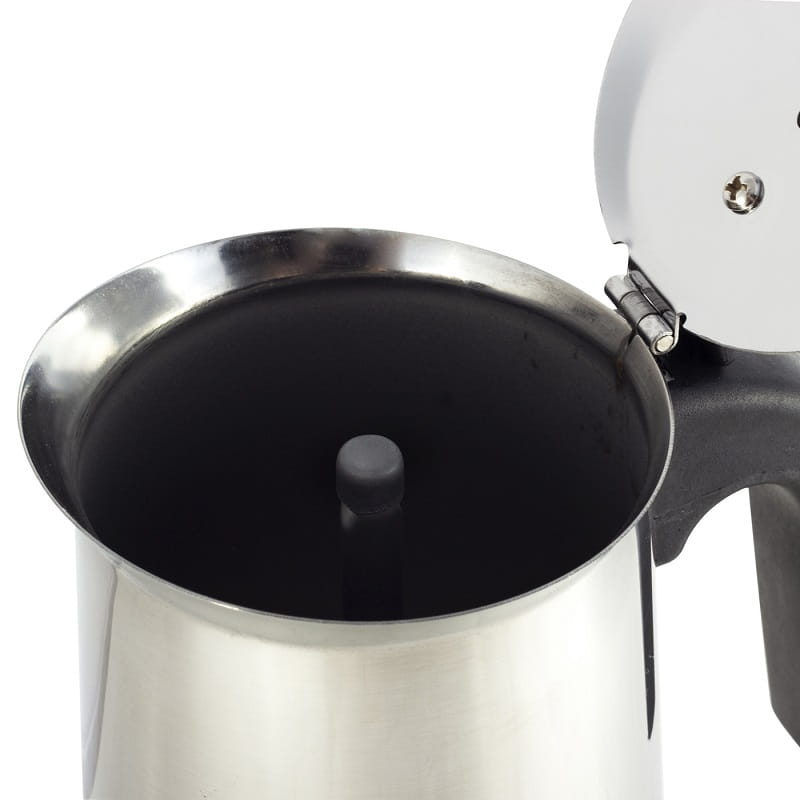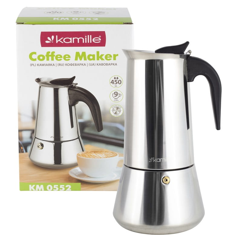Elegancka i funkcjonalna kawiarka jest urządzeniem, dzięki któremu można bardzo szybko i łatwo zaparzyć esencjonalne i aromatyczne espresso. Makinetka wykonana z wysokiej jakości stali nierdzewnej. Ma unikalną jednobryłową konstrukcję, która podoba się większości kawoszom. Jeśli wybierzesz, to obiecujemy, że kawiarka ta będzie nieodzownym towarzyszem wszystkich Twoich śniadań.Moka została wyposażona w zaworek ciśnieniowy w celu odprowadzania nadmiaru pary wodnej, co zapewnienia długą bezawaryjną eksploatację. Produkt o pojemności 450 ml pozwala na przygotowanie 9 filiżanek kawy. Posiada funkcjonalny bakelitowy uchwyt, który stabilnie będzie się trzymać w dłoni.