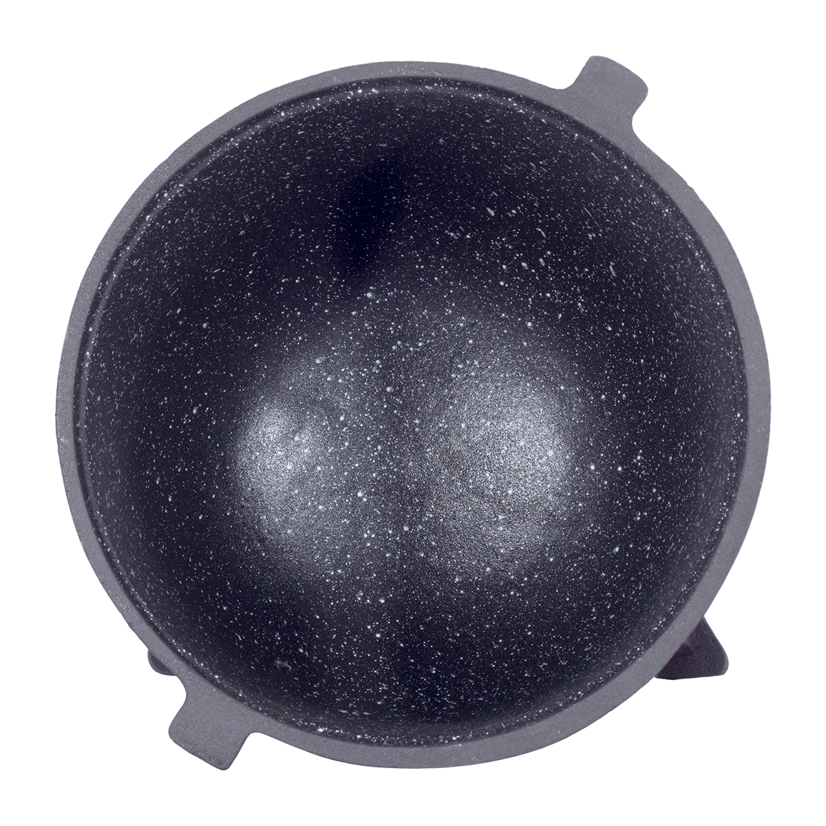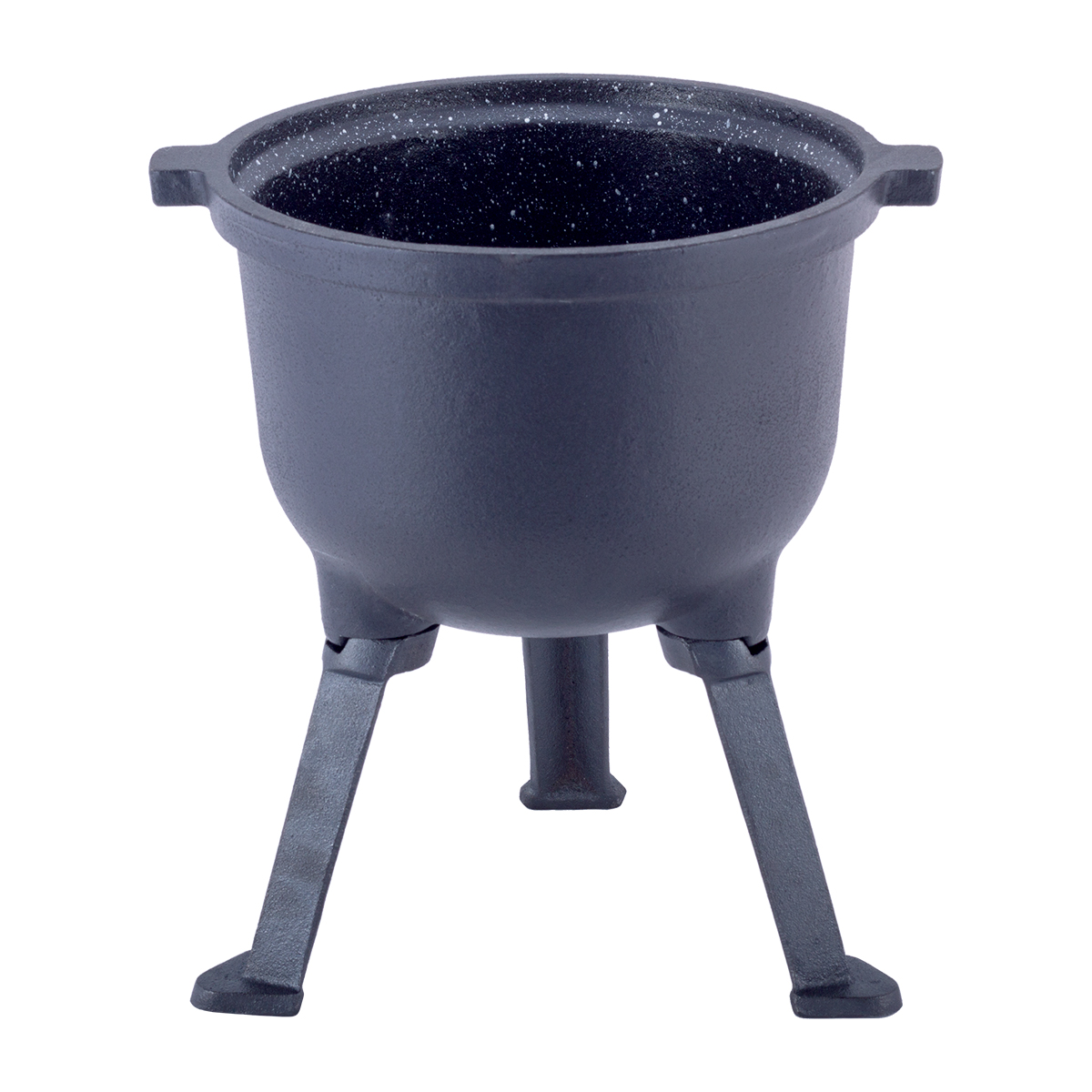 Wnętrze kociołka pokryte jest trwałą powłoką marmurkową, która ogranicza przywieranie potraw i ułatwia czyszczenie. Pojemność 4 litry sprawia, że jest to idealny wybór na mniejsze spotkania przy ognisku, wyjazdy na działkę czy biwak.
