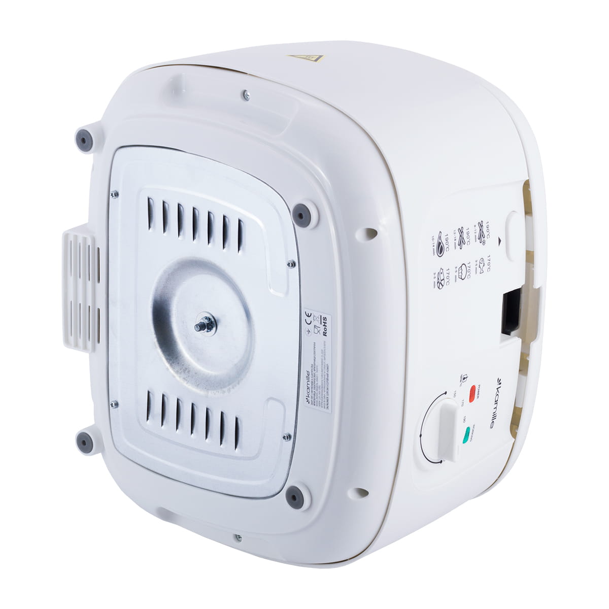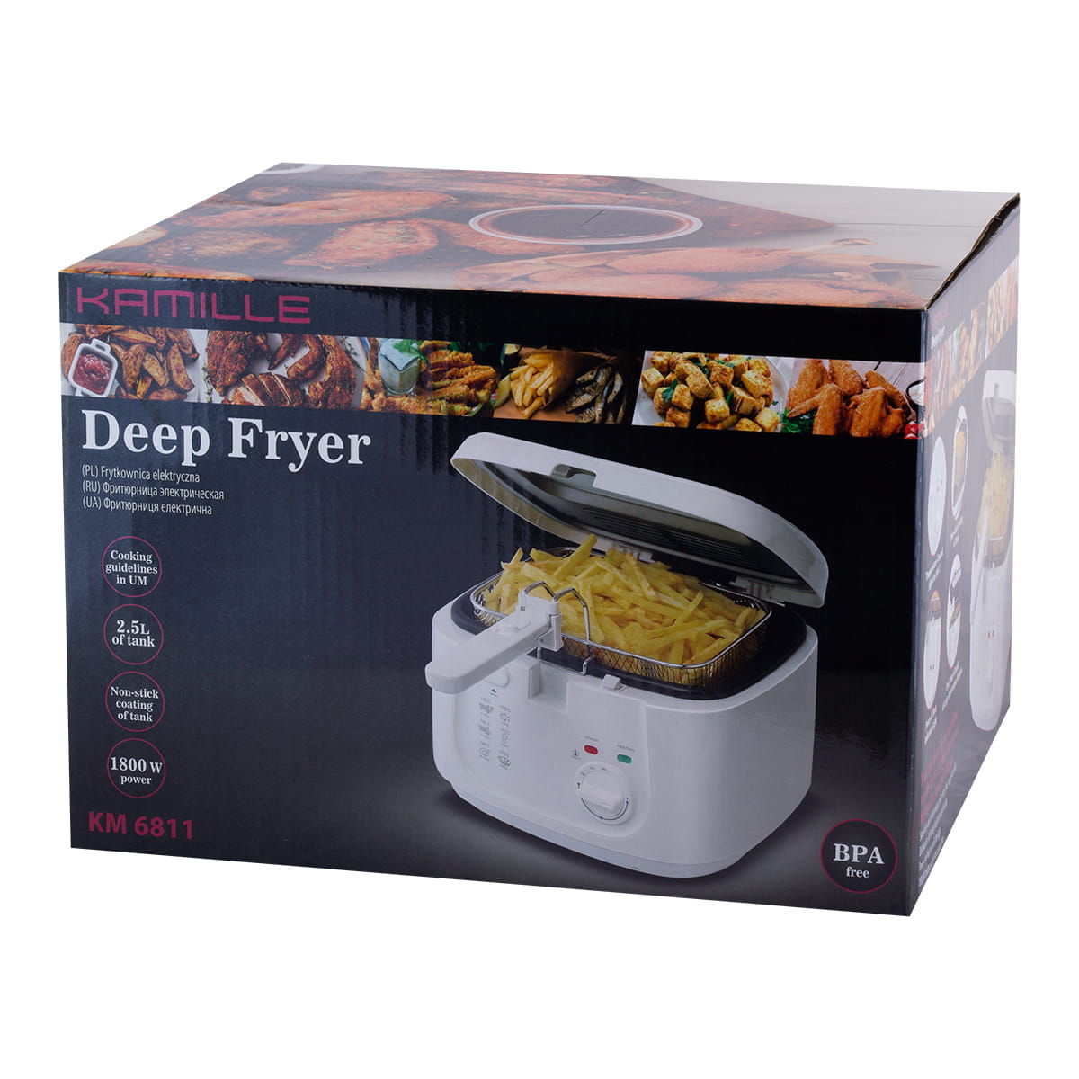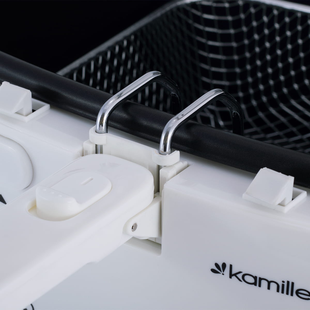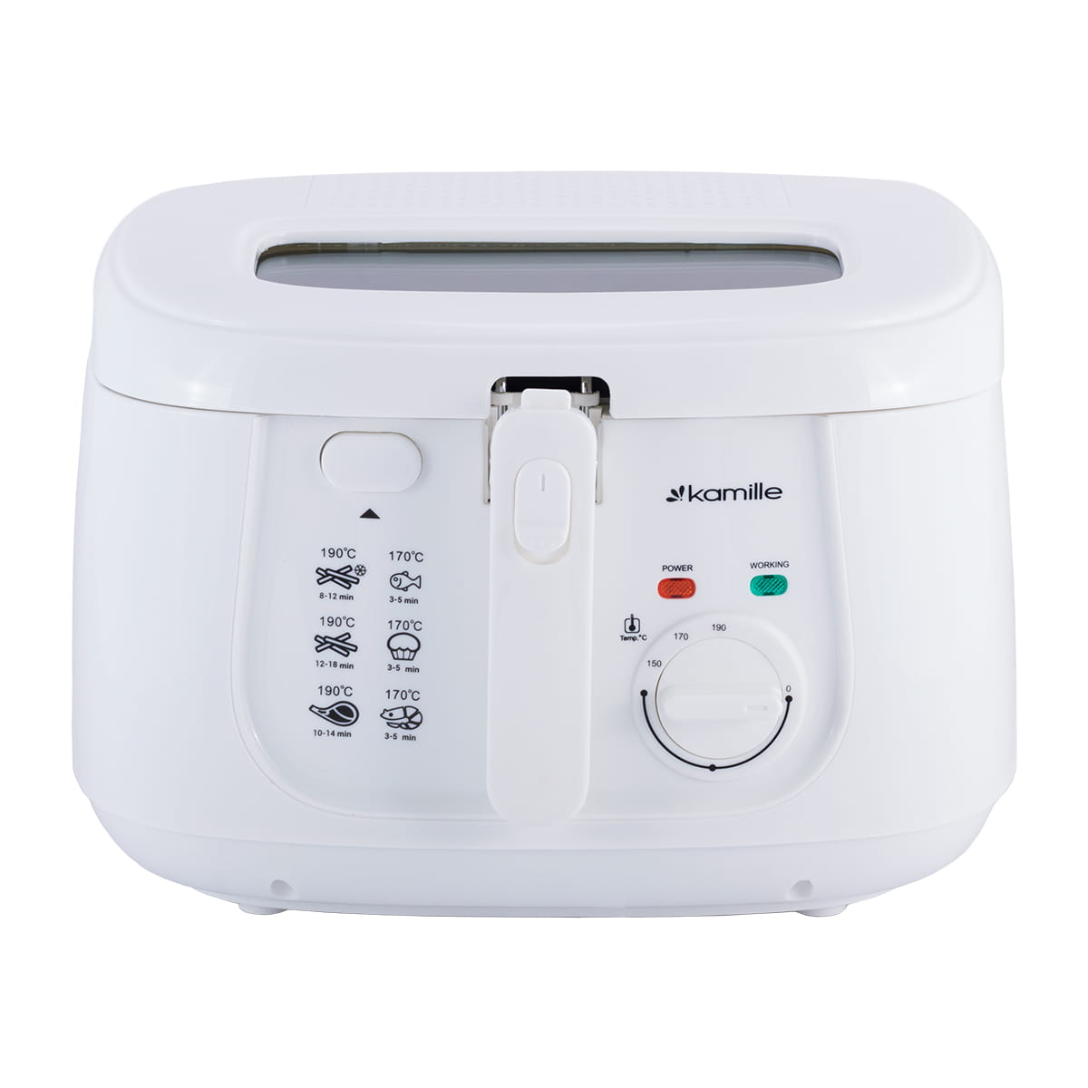 Frytkownica KAMILLE z pewnością zachwyci wszystkich miłośników przekąsek z ziemniaków i smażonych mięs. Umożliwia usmażenie w kilka minut idealnych frytek - chrupiących z zewnątrz i miękkich w środku. Można w niej również smażyć inne produkty takie jak mięso, ryby, grzyby czy warzywa. Frytkownica o dużej mocy 1800 W, bez BPA, o pojemności 2,5 L szybko i skutecznie gotuje pyszne dania smażone w głębokim tłuszczu. Termostatyczny system kontroli temperatury umożliwia ustawienie temperatury od 150° C do 190° C. Możliwość regulacji temperatury zapewnia pełną kontrolę nad poziomem wysmażenia dań.