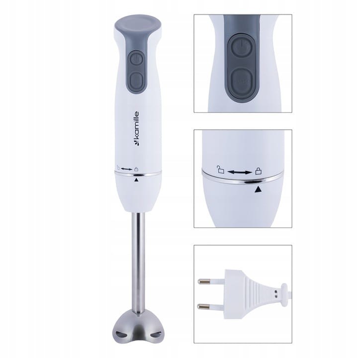 Blender to urządzenie, które idealnie sprawdzi się w Twojej kuchni. Dzięki niemu z łatwością zmiksujesz owoce, warzywa czy potrawy dla dzieci. Blender ręczny KAMILLE pozwala rozdrabniać, przecierać oraz w łatwy sposób przygotowywać wszelkiego rodzaju musy, zupy krem, pure oraz inne potrawy wymagające podobnej konsystencji. Końcówka blendera została wykonana z wytrzymałej stali szlachetnej, co gwarantuje możliwość jej długotrwałego użytkowania. Blender wykonano z trwałych materiałów i zaprojektowano tak, aby w kilka chwil można było zblendować ulubione produkty i przygotować zdrowe dania. Blender jest bardzo wygodny w użytkowaniu. Ma ergonomiczny uchwyt. Nie zajmuje dużo miejsca i jest niezwykle funkcjonalny. Urządzenie sprawdzi się nie tylko jako blender, ale także jako siekacz i ubijacz. To niezastąpione wyposażenie każdej kuchni.