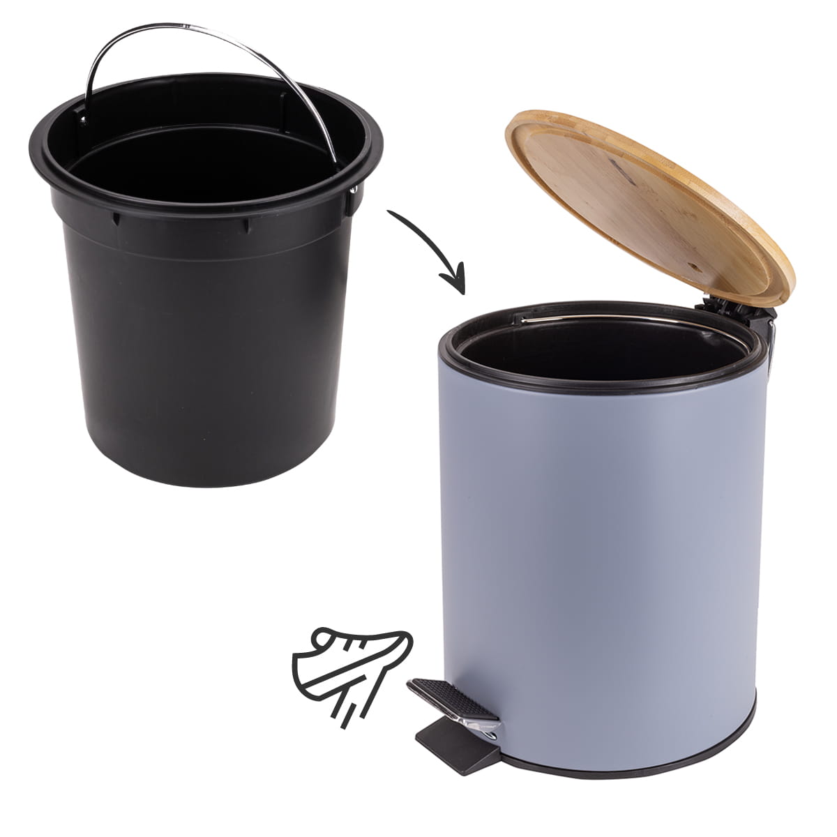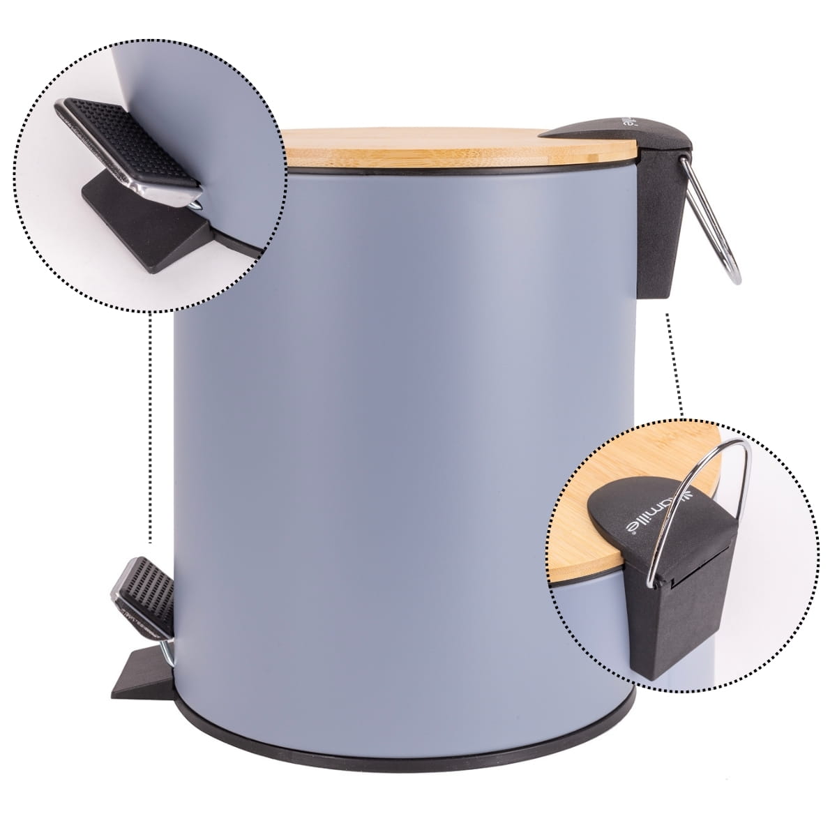 Kosz na śmieci został zaprojektowany z myślą o Twojej wygodzie. Wykonany z wysokiej jakości materiałów, takich jak bambus, stal oraz tworzywo sztuczne. Dzięki wewnętrznemu pojemnikowi, który można łatwo wyjąć, opróżnianie kosza staje się szybkie i bezproblemowe. Wewnętrzny pojemnik można również umyć osobno, co zapewnia higienę i czystość. Szeroki pedał nożny to kolejny element, który podnosi komfort użytkowania kosza na śmieci. Dzięki niemu otwieranie kosza jest niezwykle proste i można to zrobić bez użycia rąk, co jest szczególnie przydatne podczas gotowania lub gdy mamy zajęte ręce.