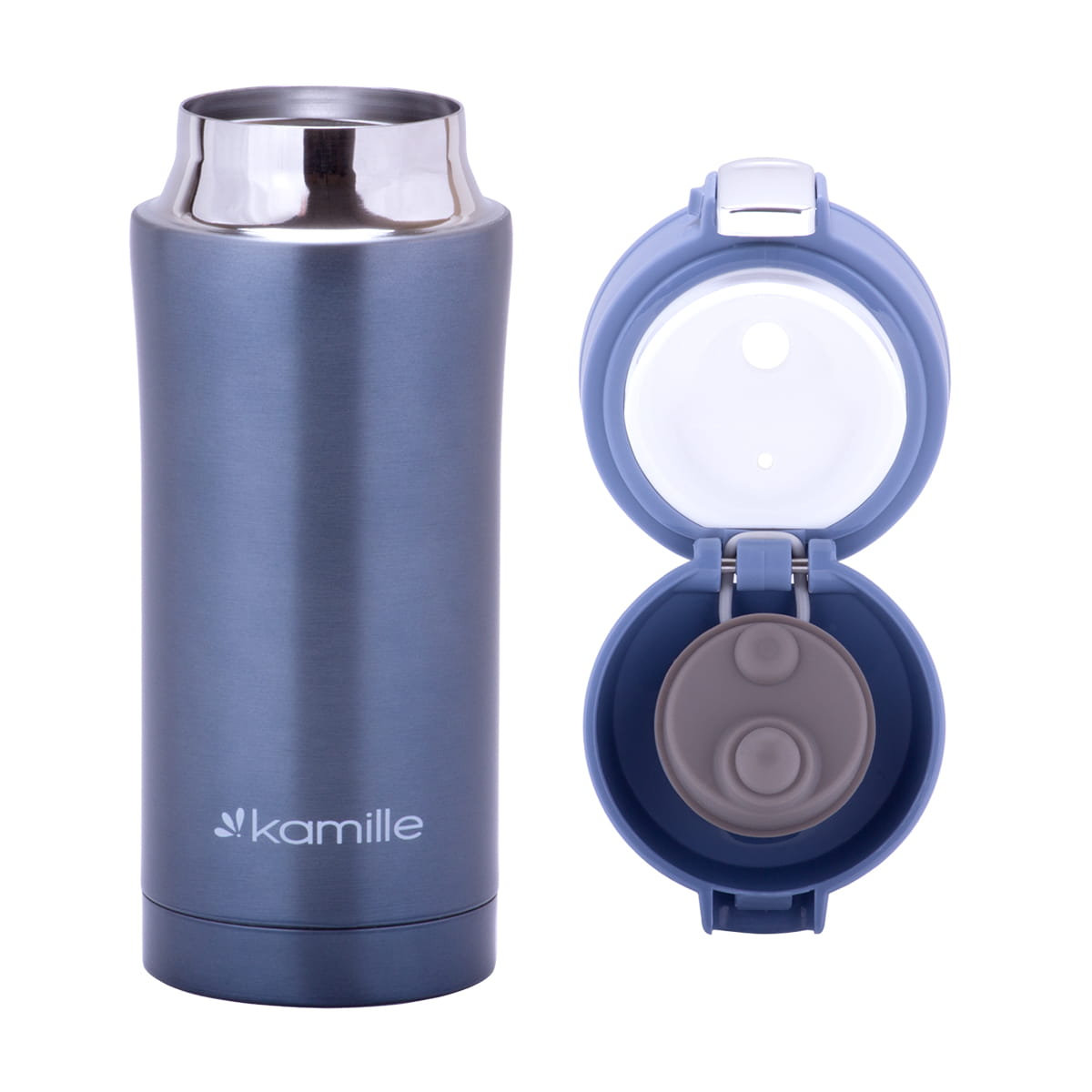 Kubek termiczny sportowy KAMILLE jest niezbędny w samochodzie, idealnie nadaje się do pracy lub szkoły jak w chłodniejsze tak i ciepłe dni. Wykonany z wysokiej jakości stali nierdzewnej 18/10, która jest ekologiczna i bezpieczna dla zdrowia. Doskonale trzyma ciepło lub zimno i jest w 100% szczelny. Designerskie wykonanie w przepięknych kolorach. Prosty i wygodny w obsłudze, odporny na wstrząsy.