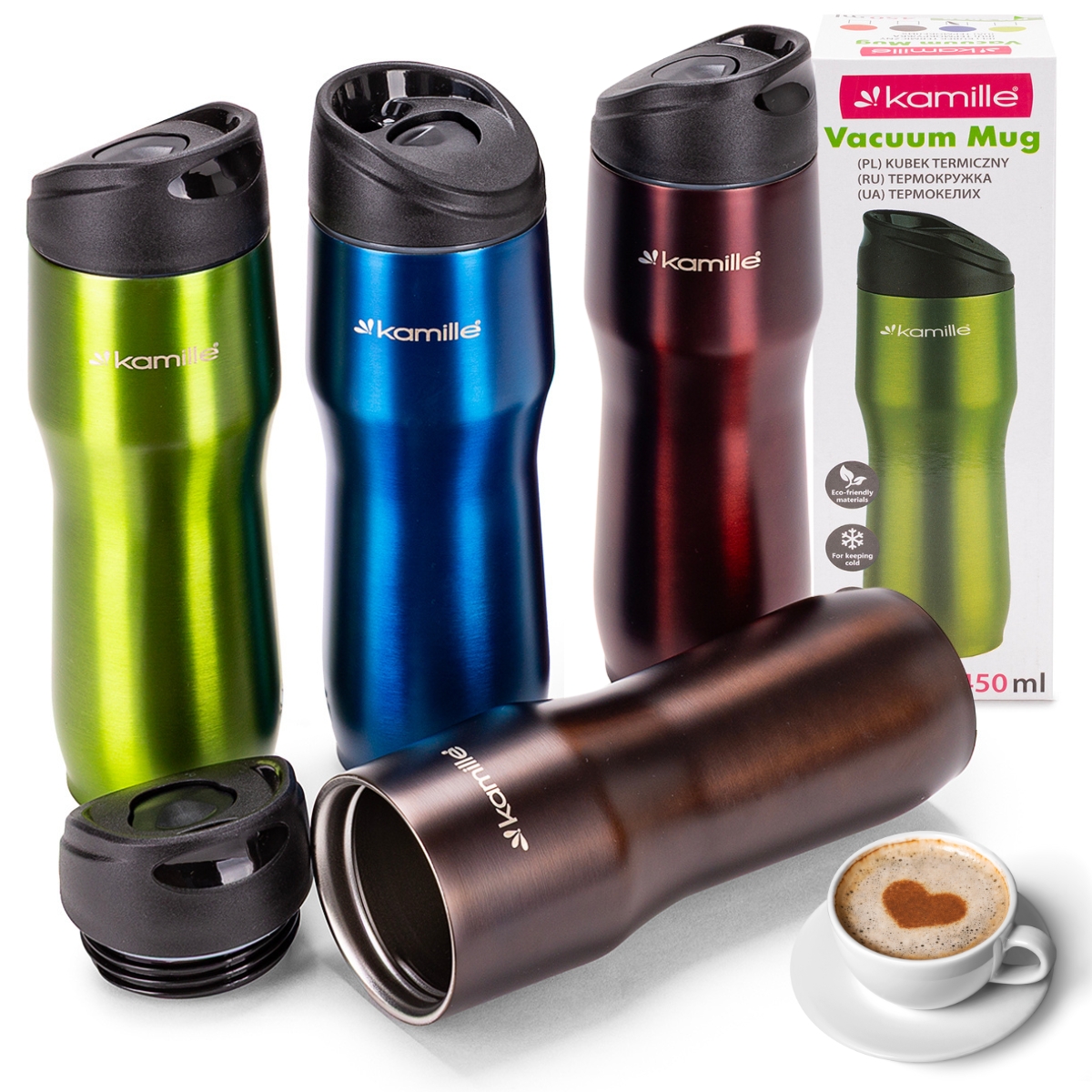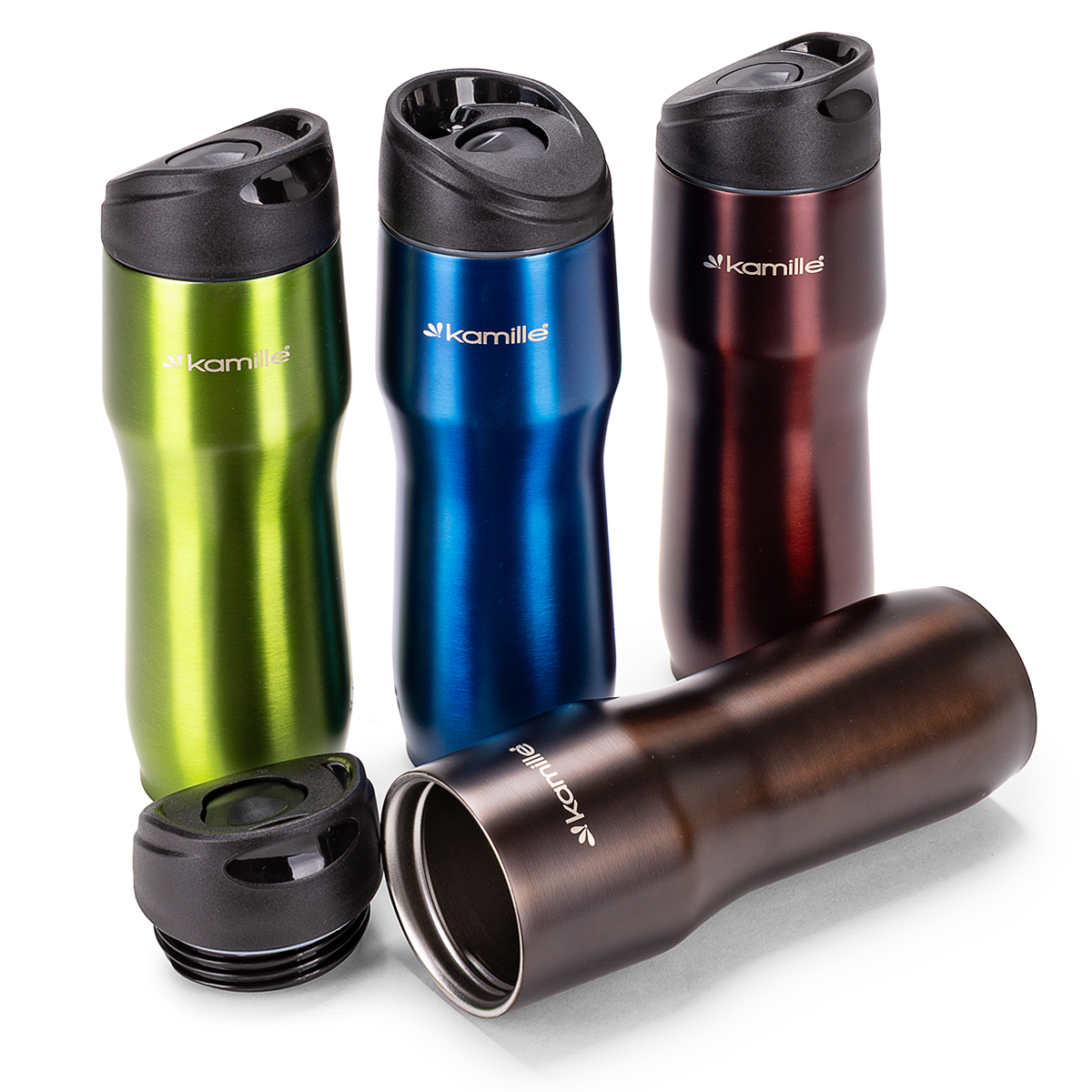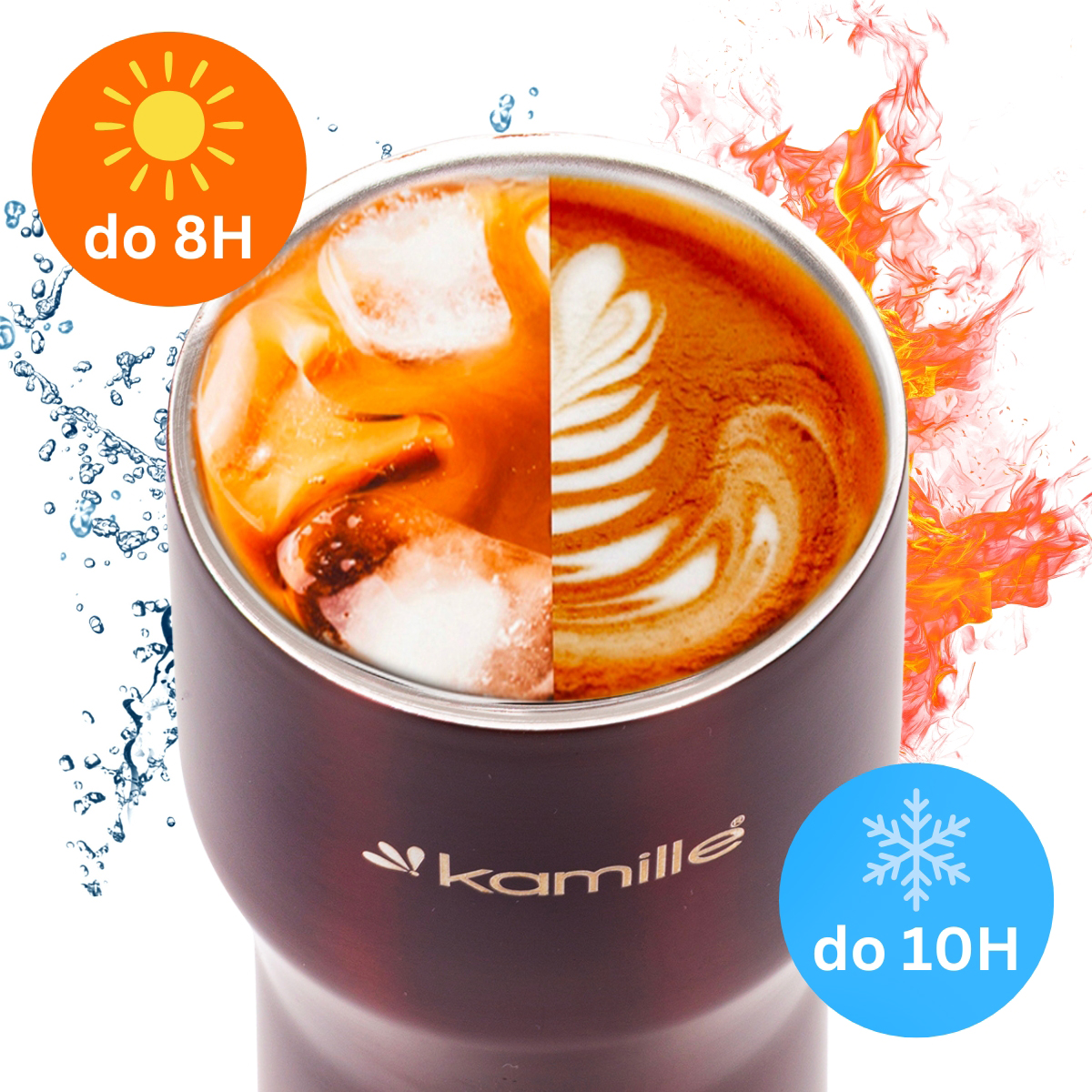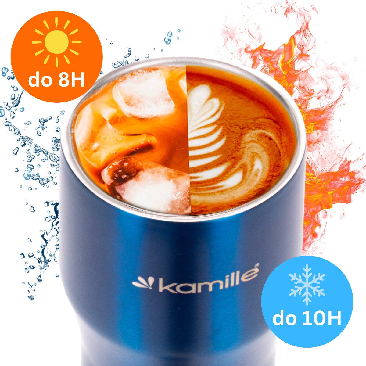 Kubek termiczny sportowy KAMILLE jest niezbędny w samochodzie, idealnie nadaje się do pracy lub szkoły jak w chłodniejsze tak i ciepłe dni. Wykonany z wysokiej jakości stali nierdzewnej 18/10, która jest ekologiczna i bezpieczna dla zdrowia. Doskonale trzyma ciepło lub zimno i jest w 100% szczelny. Designerskie wykonanie w przepięknych kolorach. Prosty i wygodny w obsłudze, odporny na wstrząsy.