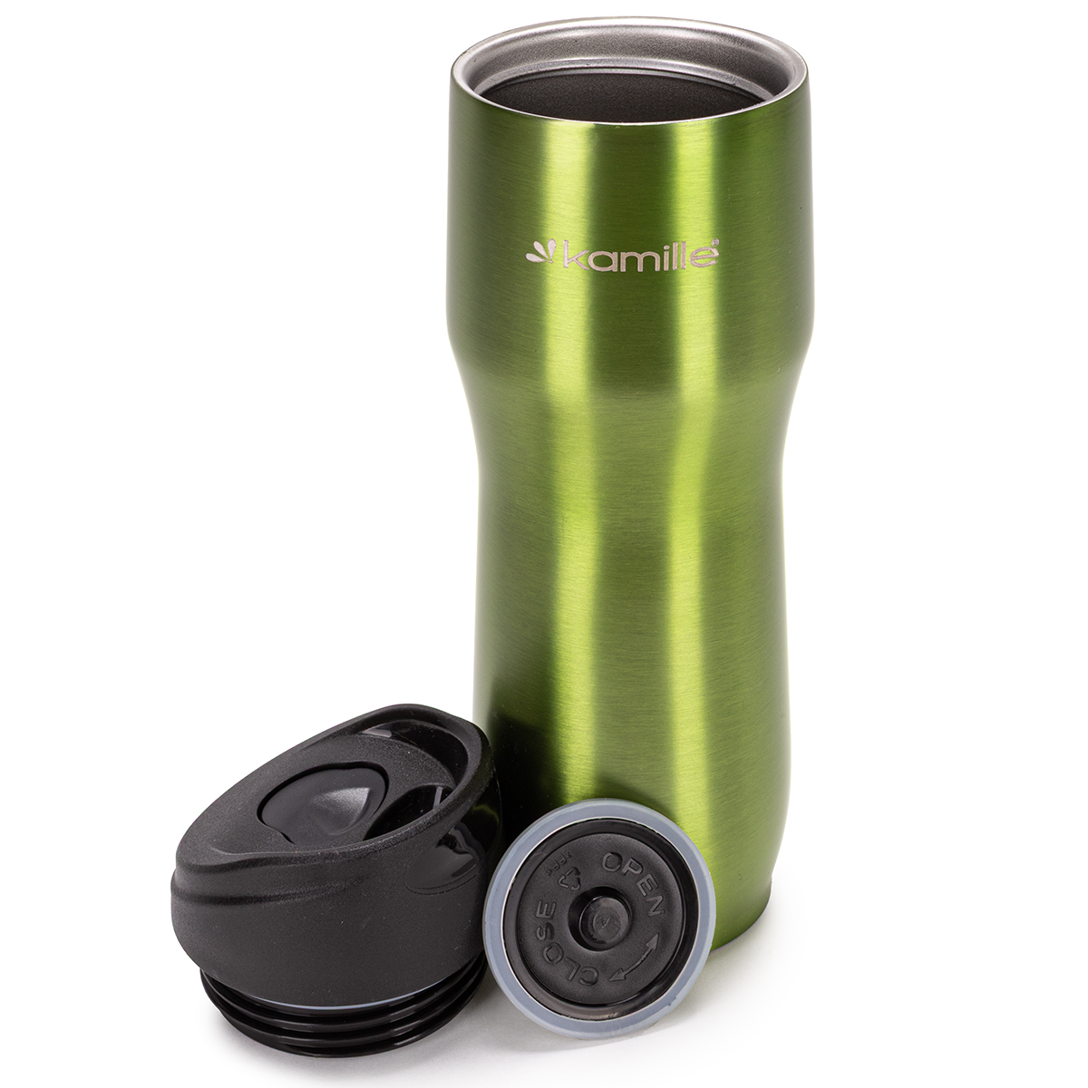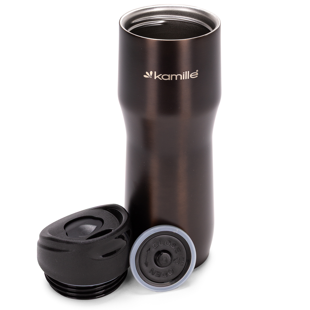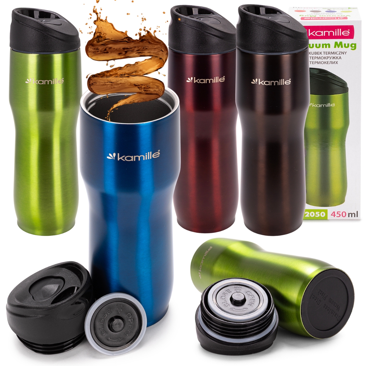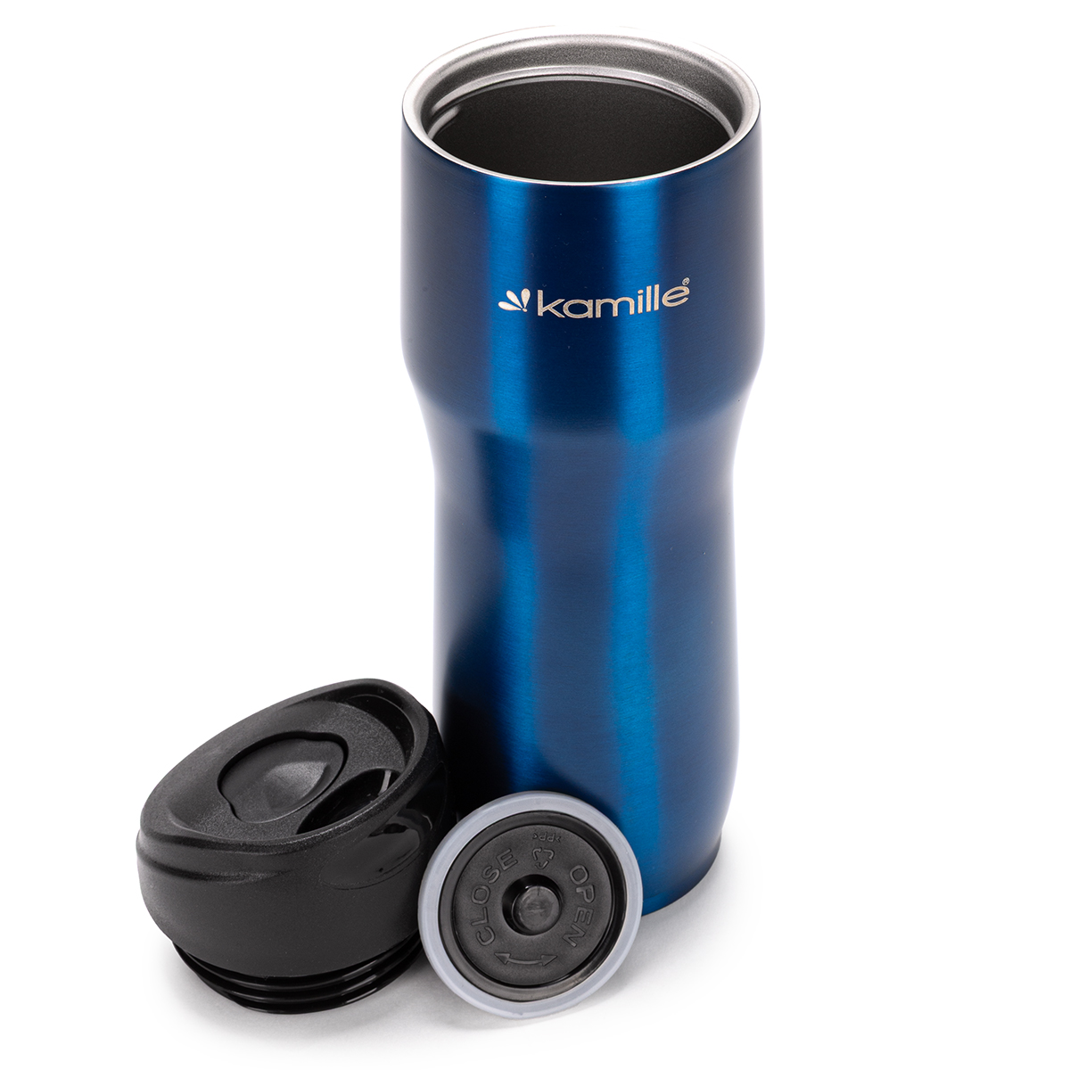 Kubek termiczny sportowy KAMILLE jest niezbędny w samochodzie, idealnie nadaje się do pracy lub szkoły jak w chłodniejsze tak i ciepłe dni. Wykonany z wysokiej jakości stali nierdzewnej 18/10, która jest ekologiczna i bezpieczna dla zdrowia. Doskonale trzyma ciepło lub zimno i jest w 100% szczelny. Designerskie wykonanie w przepięknych kolorach. Prosty i wygodny w obsłudze, odporny na wstrząsy.