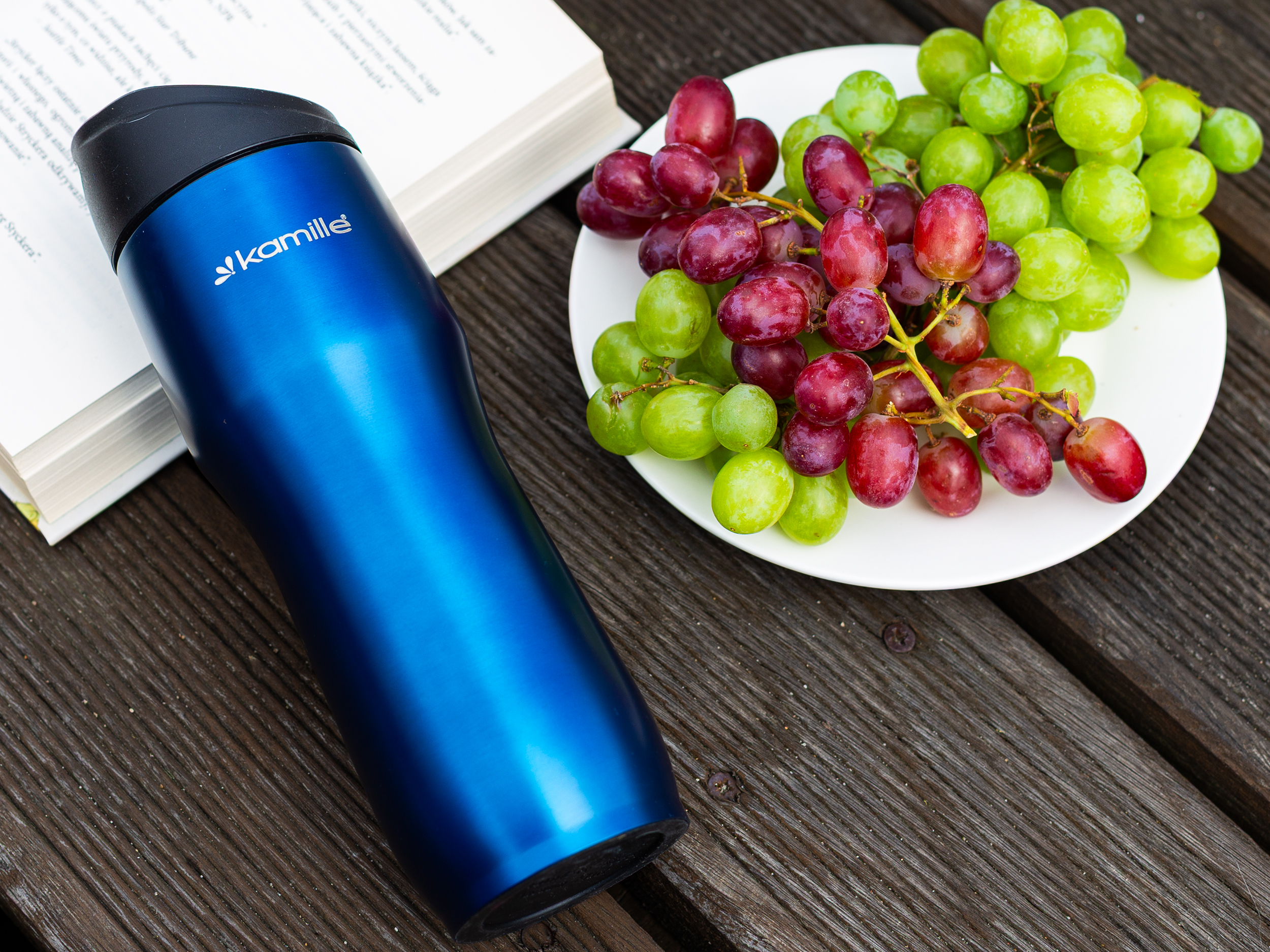 - izolacja próżniowa sprawia że kubek długo utrzymuje temperaturę wewnątrz, podobnie jak termos