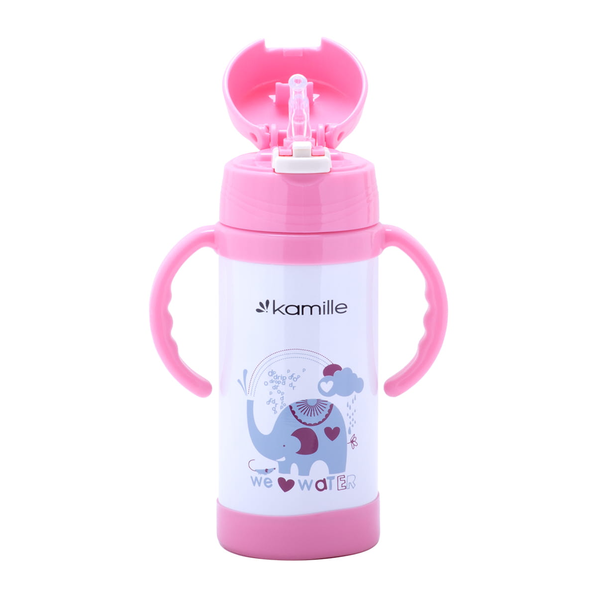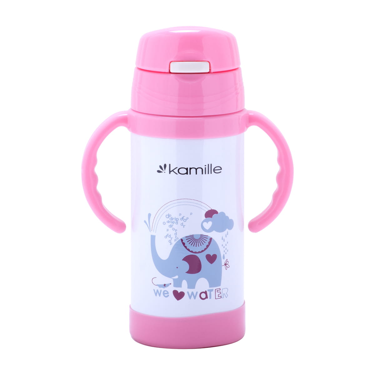 Kubek termiczny dla dzieci Kamille wykonany z wysokiej jakości stali nierdzewnej, która jest ekologiczna i bezpieczna dla zdrowia. Kwalifikuje się niezawodnością, kompaktowym rozmiarem, wysoką jakością i estetycznym designem. Taki kubek termiczny będzie niezamienny dla waszego dziecka w samochodzie, na spacerze lub w podróży. Doskonale trzyma ciepło lub zimno i jest w 100% szczelny.
