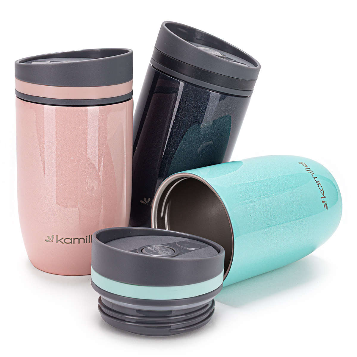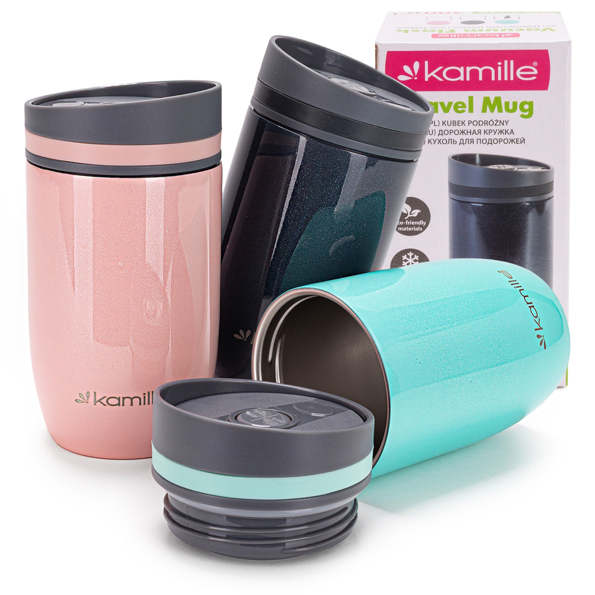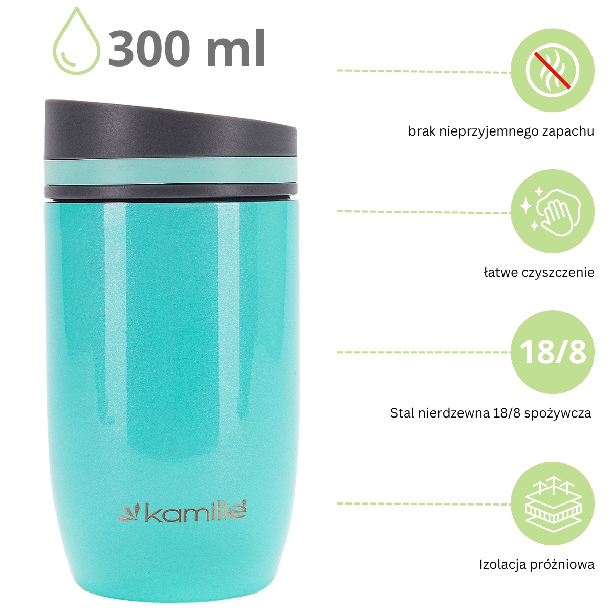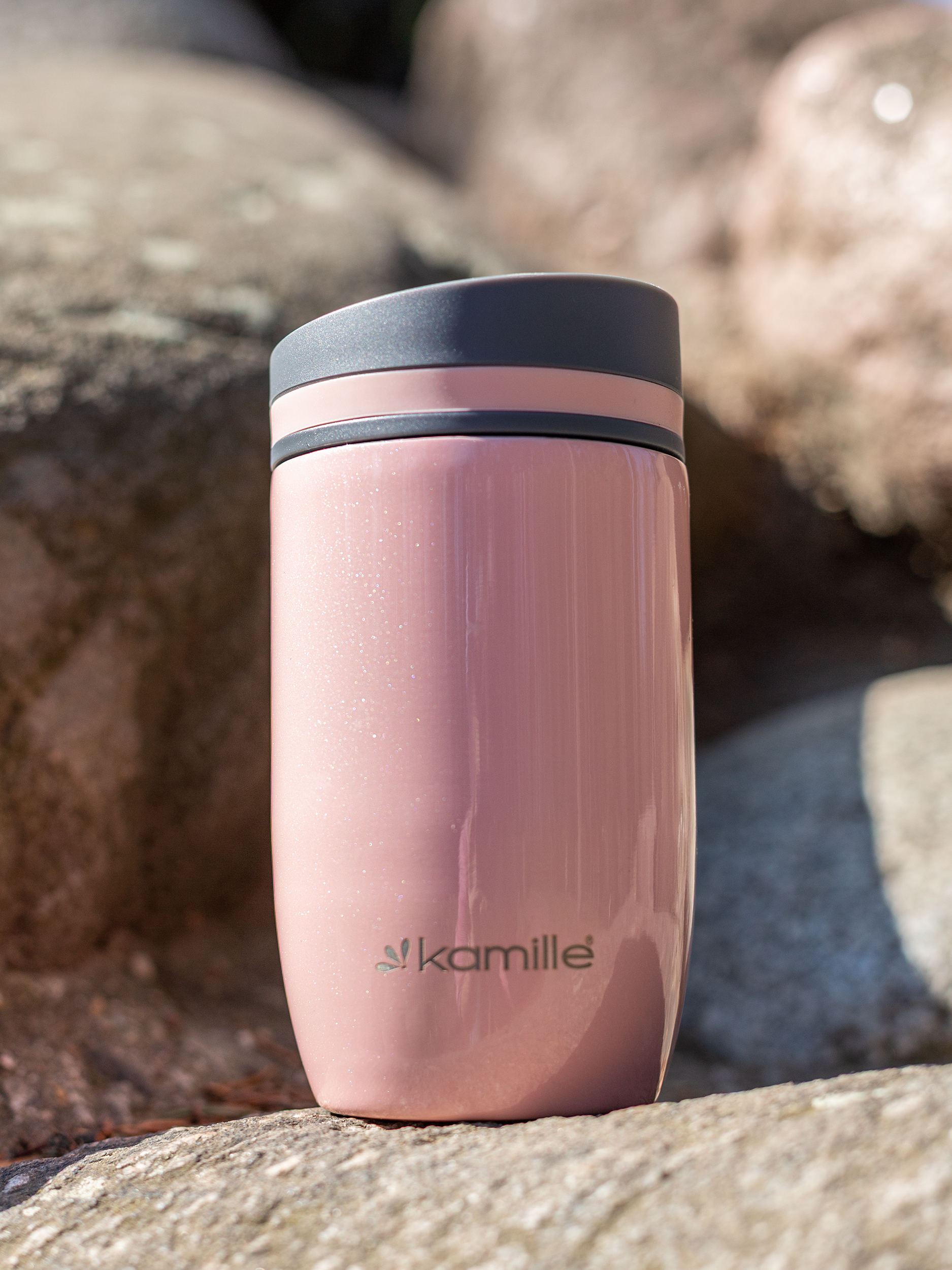 Kubek termiczny sportowy KAMILLE jest niezbędny w samochodzie, idealnie nadaje się do pracy lub szkoły jak w chłodniejsze tak i ciepłe dni. Wykonany z wysokiej jakości stali nierdzewnej 18/10, która jest ekologiczna i bezpieczna dla zdrowia. Doskonale trzyma ciepło lub zimno i jest w 100% szczelny. Designerskie wykonanie w przepięknych kolorach. Prosty i wygodny w obsłudze, odporny na wstrząsy.