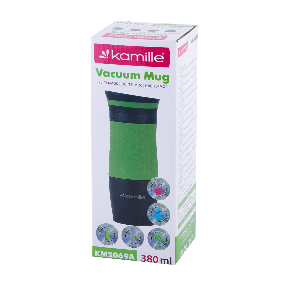 Kubek termiczny Kamille jest niezbędny w samochodzie, idealnie nadaje się do pracy lub na dłuższe wyprawy jak w chłodniejsze tak i ciepłe dni. Wykonany z wysokiej jakości stali nierdzewnej 18/10, która jest ekologiczna i bezpieczna dla zdrowia. Korpus stworzony z wstawką TPR (materiał o właściwościach silikonu, głównym składnikiem którego jest naturalna lub syntetyczna guma) i w designerskim wykonaniu w przepięknych matowych kolorach. Doskonale trzyma ciepło lub zimno przez 8-10 godz.