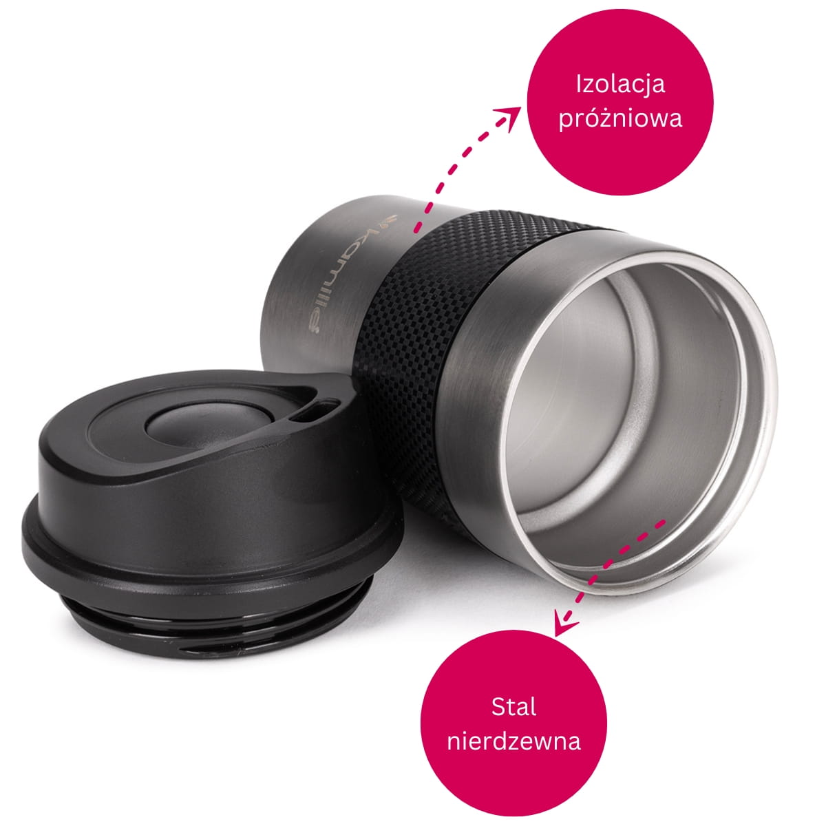 ✅ Izolacja próżniowa sprawia że kubek długo utrzymuje temperaturę wewnątrz, podobnie jak termos.