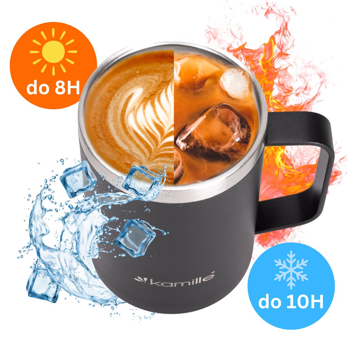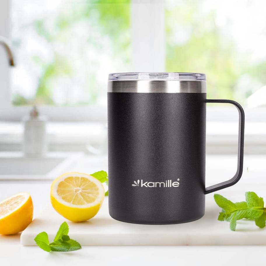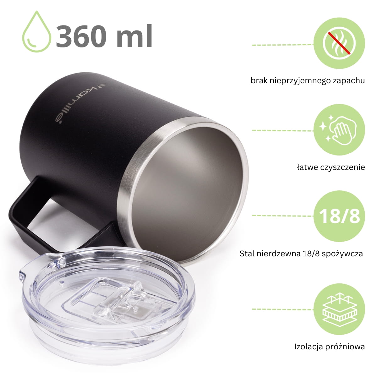 ✅ Izolacja próżniowa sprawia że kubek długo utrzymuje temperaturę wewnątrz, podobnie jak termos.