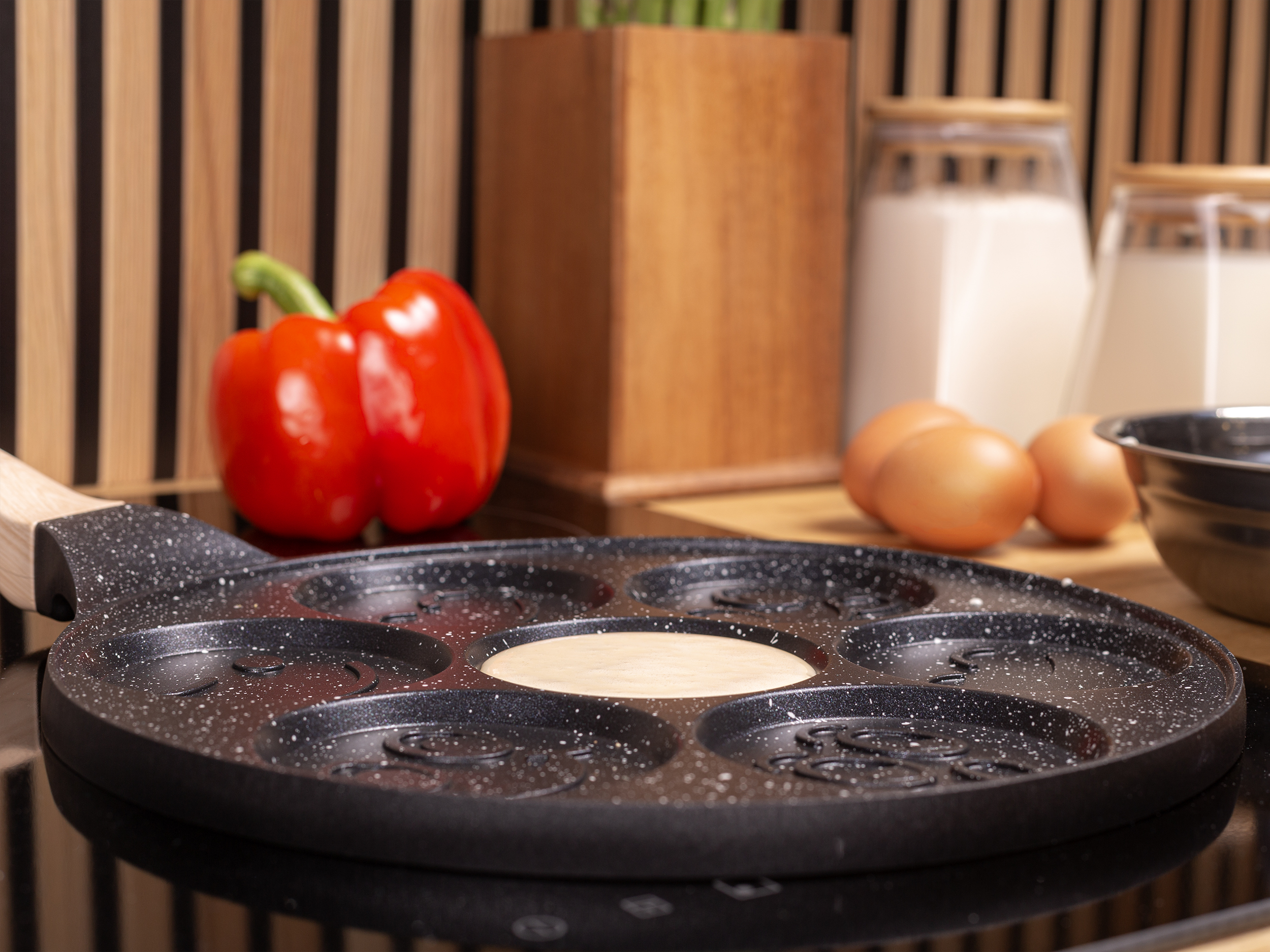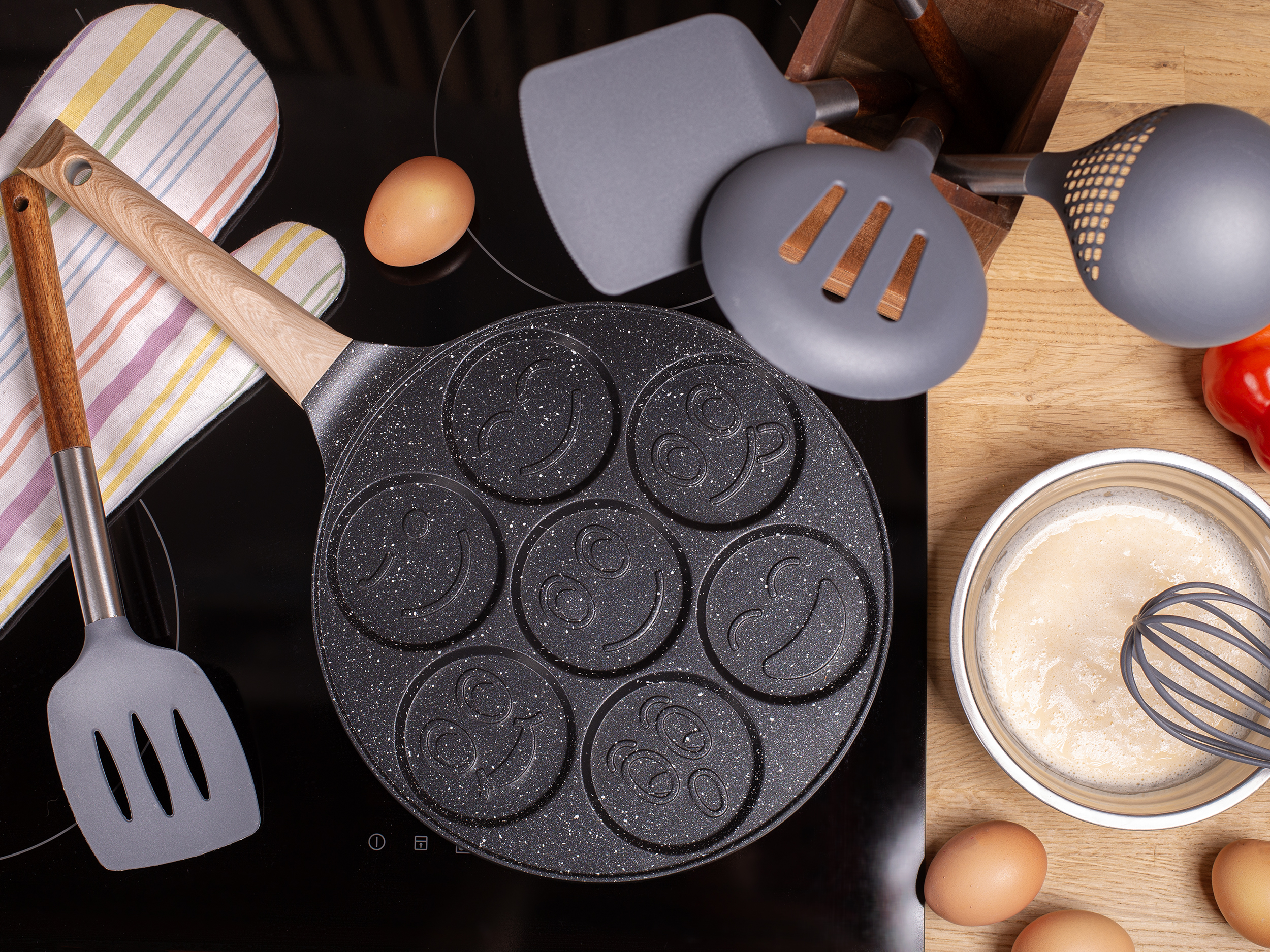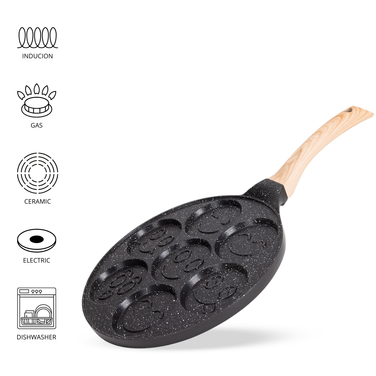 Marmurowa patelnia do pancakes naleśników jajek BUŹKI MINKI EMOTKI 26cm