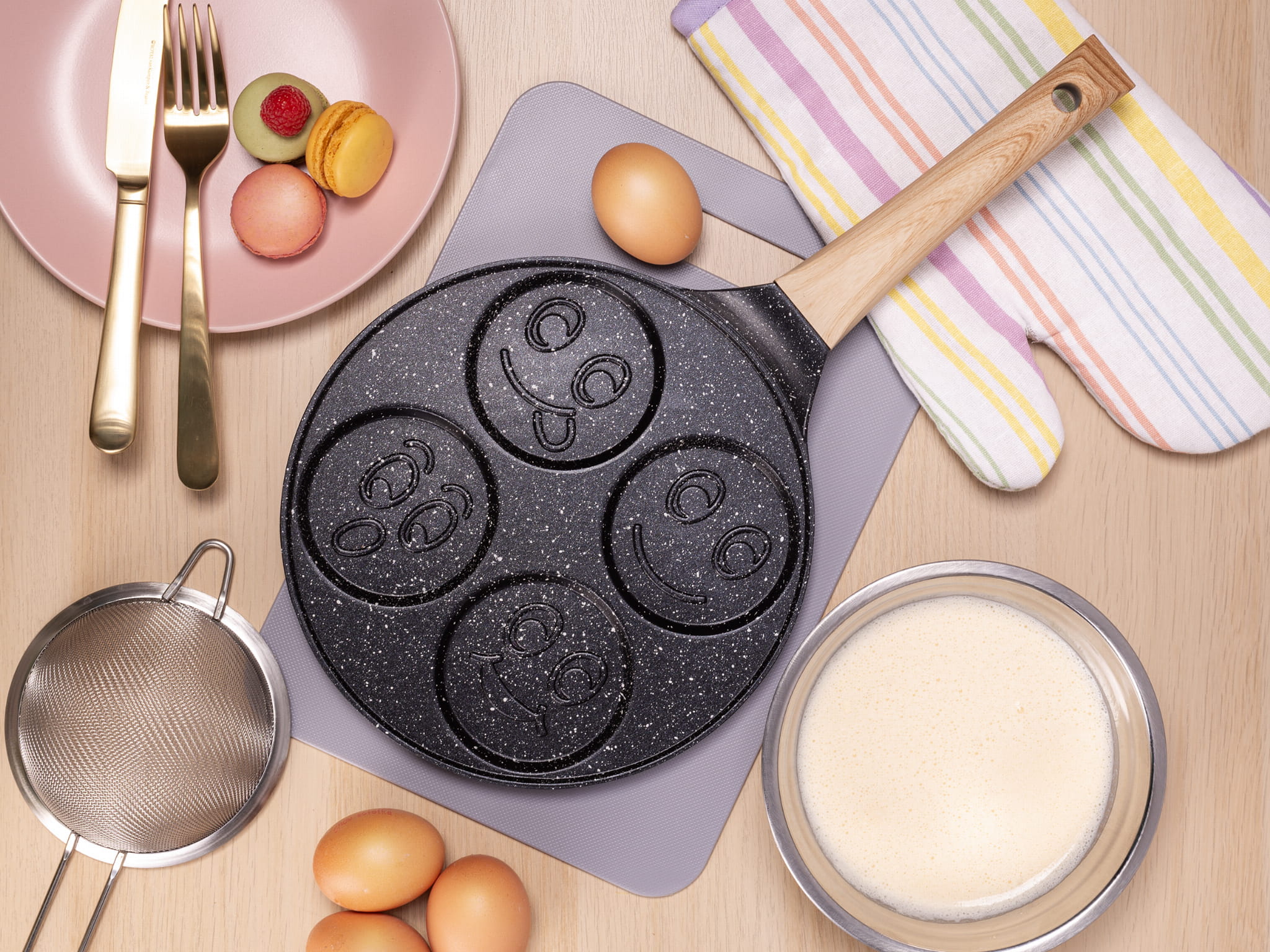 Marmurowa patelnia do pancakes naleśników jajek BUŹKI MINKI EMOTKI