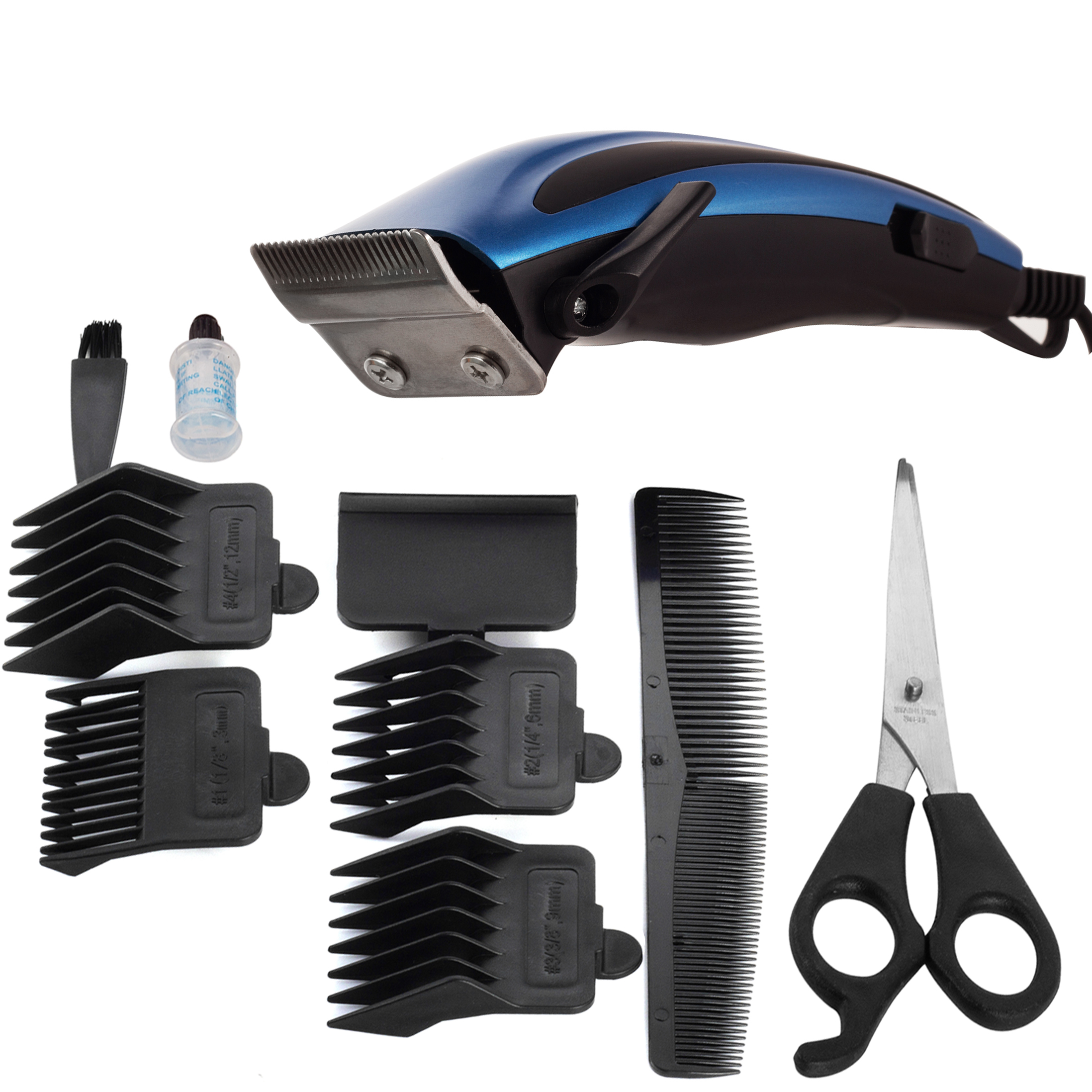 - 4 nasadki do regulacji długości w zakresie: 3 mm - 12 mm (zakres długości cięcia bez nasadek: 1,2 mm - 3 mm)