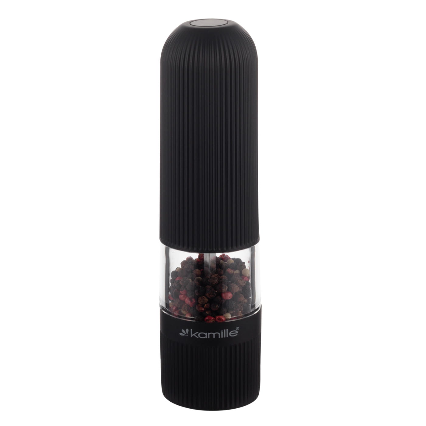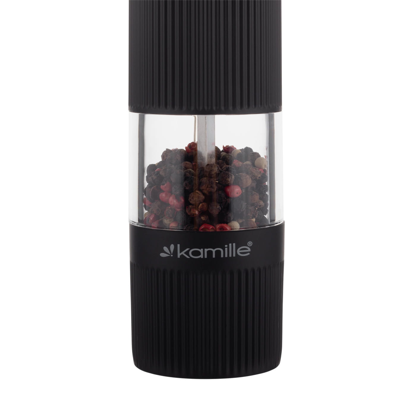 Młynek elektryczny do przypraw Kamille z LED to praktyczne narzędzie, które pozwala szybko i wygodnie doprawić potrawy świeżo mielonym pieprzem, solą lub innymi aromatycznymi przyprawami.