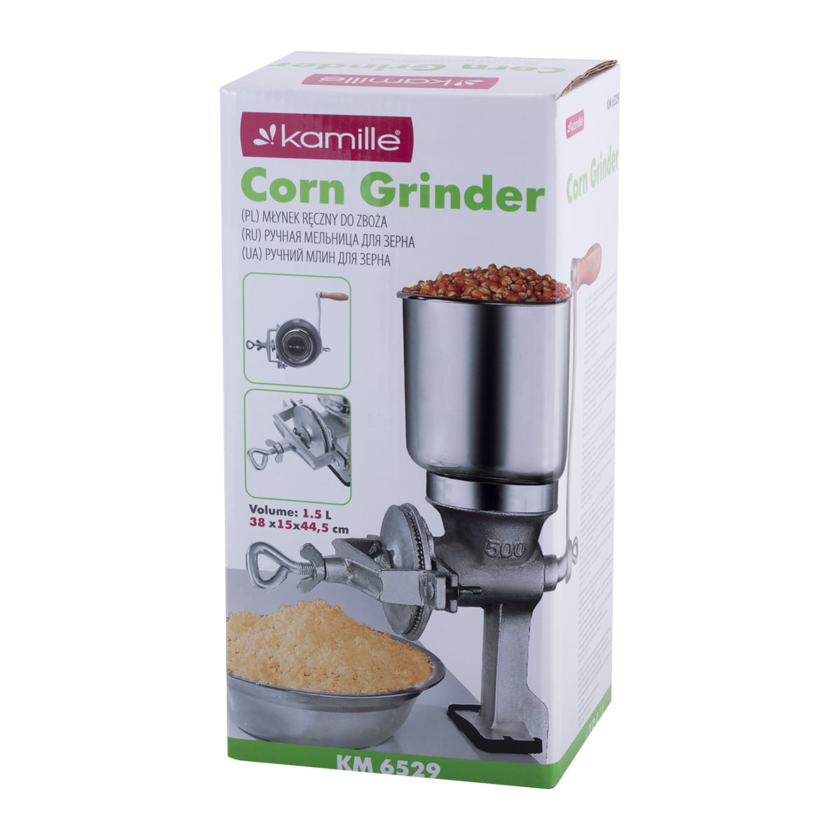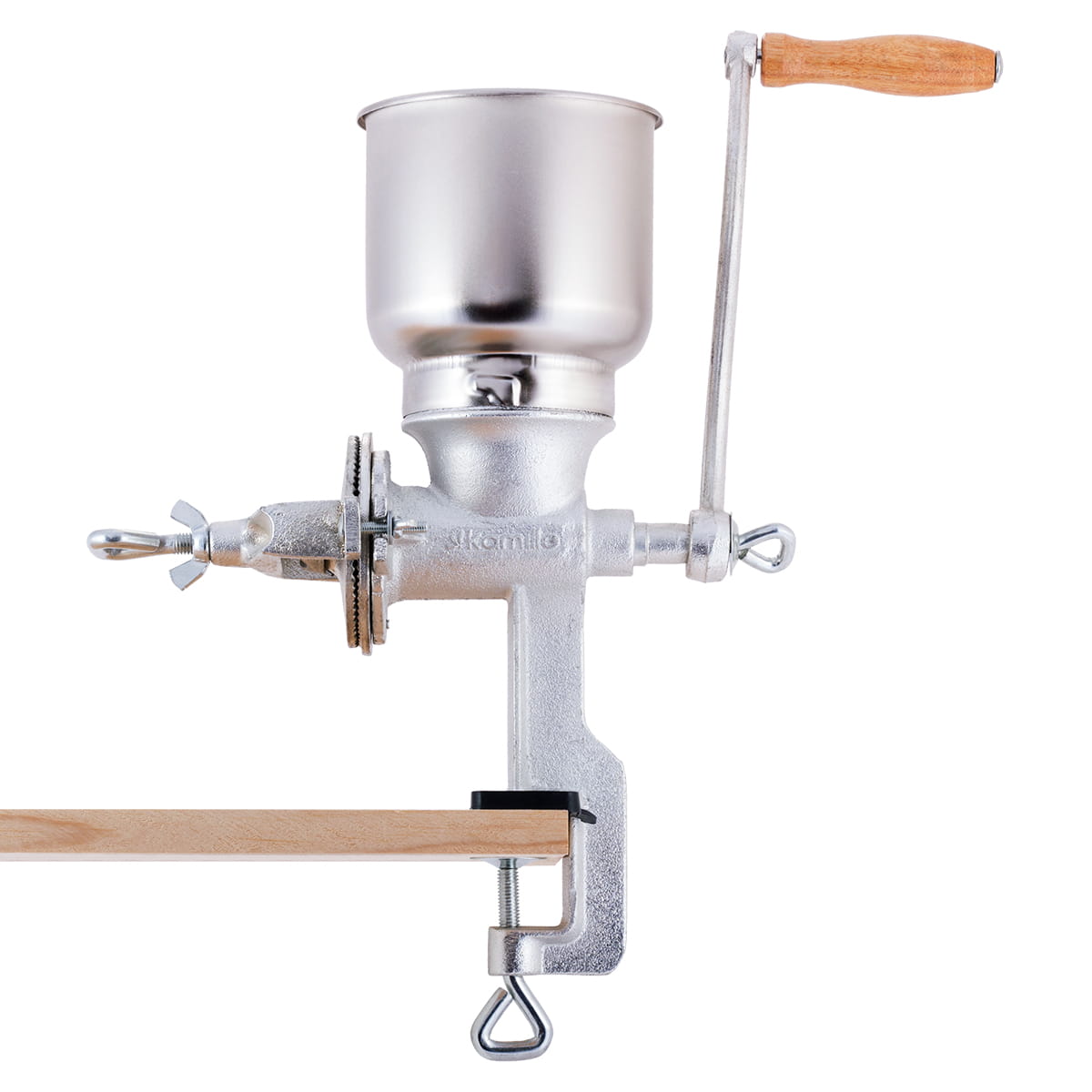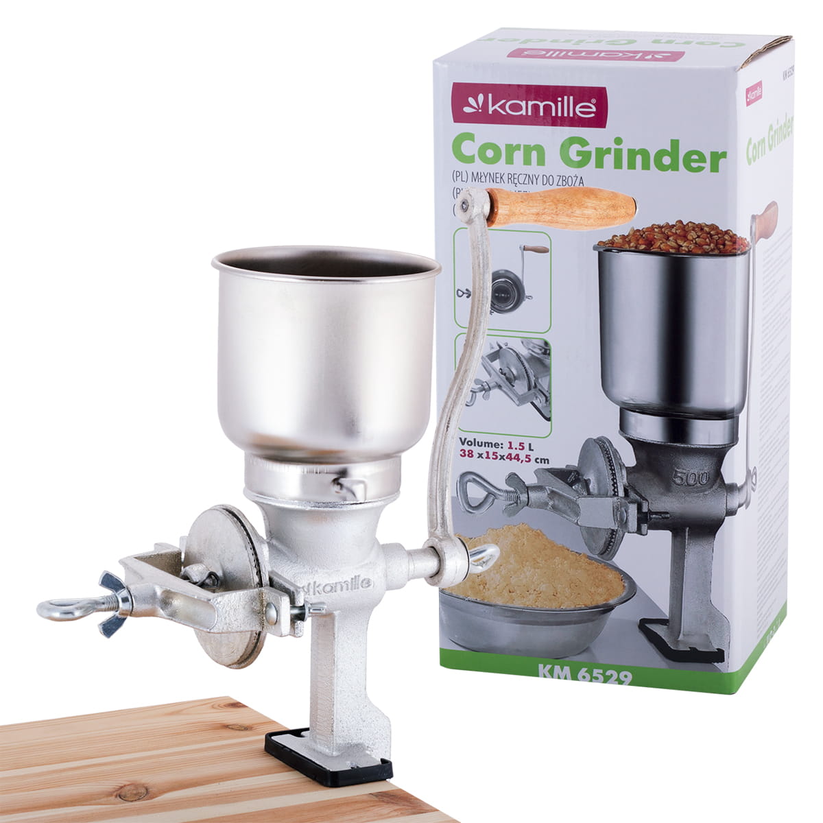 Stabilna stopka do montażu na blacie lub stole zapewnia bezpieczeństwo i komfort użytkowania, a ręczna korba pozwala mielić zboże bez użycia prądu. Młynek świetnie sprawdzi się do pszenicy, jęczmienia, kukurydzy, słodu, grochu czy innych ziaren.