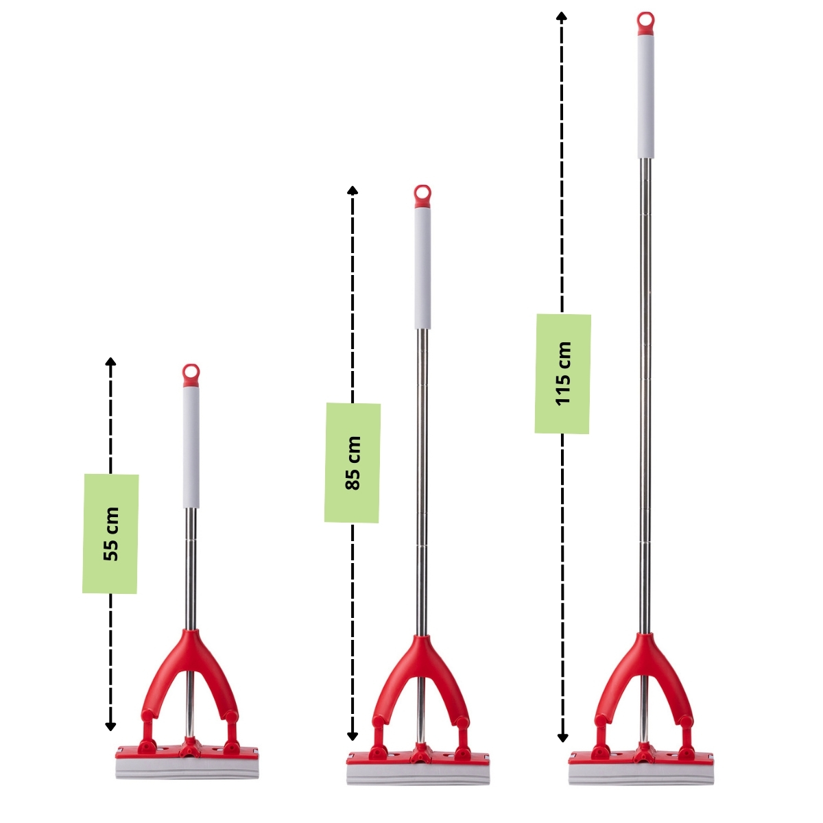 ➡️ Składany trzonek – ułatwia przechowywanie, dzięki czemu mop zmieści się nawet w niewielkich pomieszczeniach.