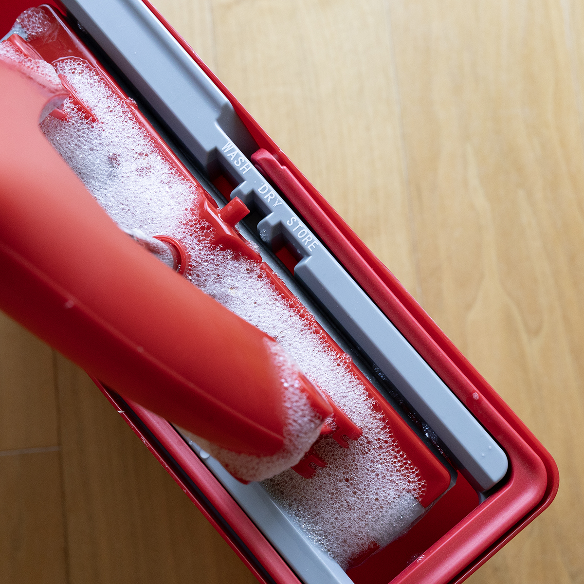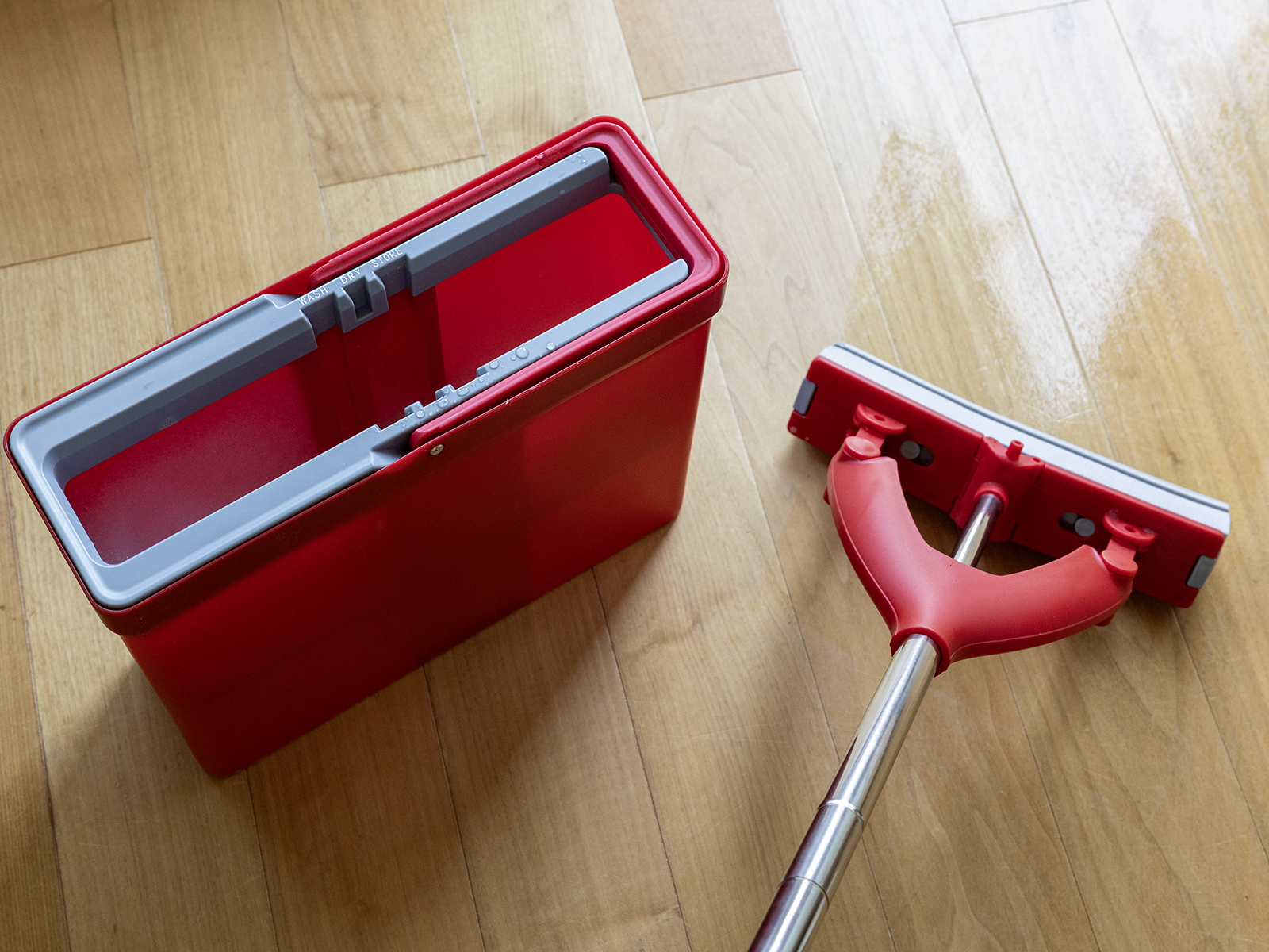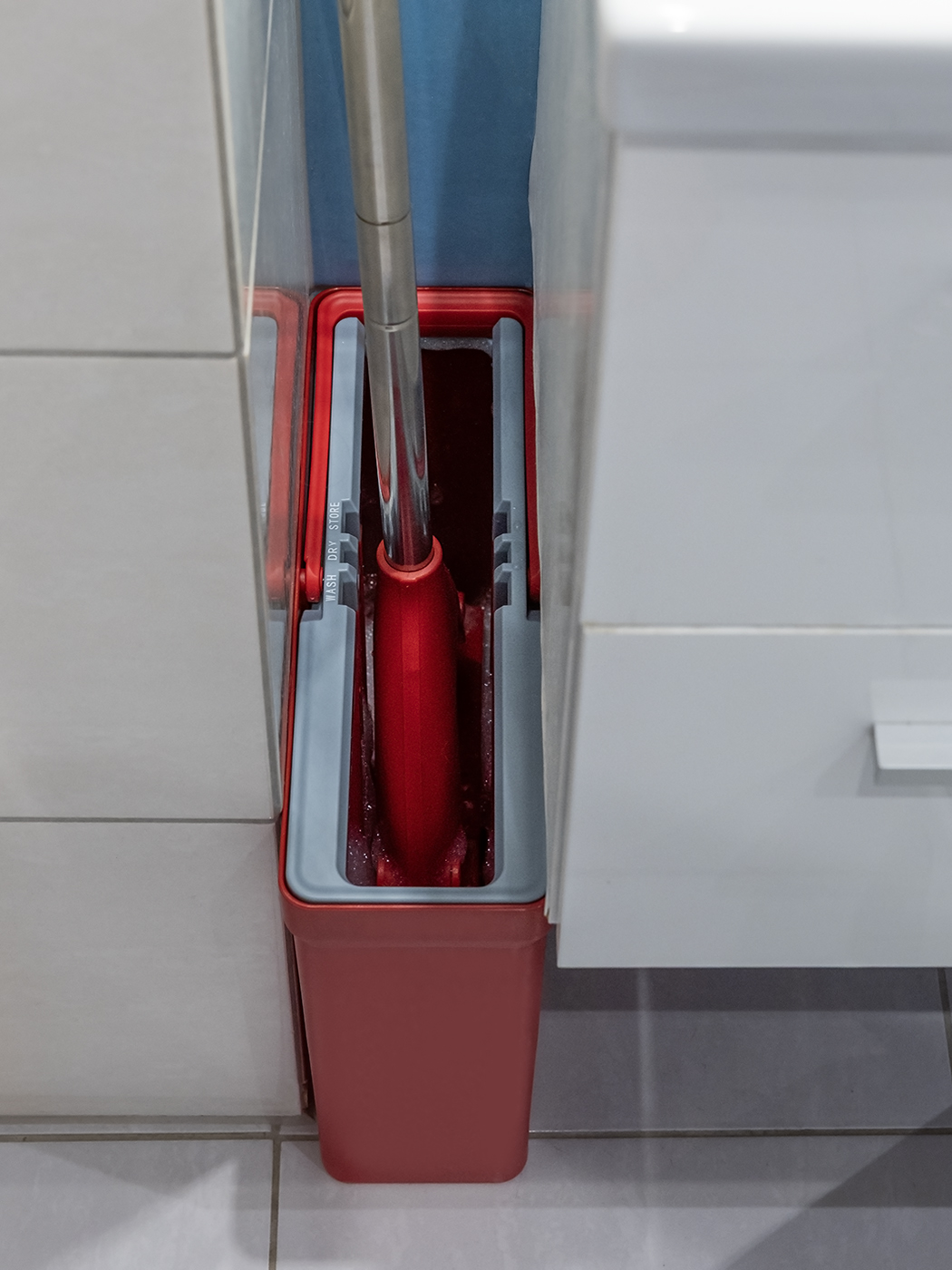 - Mop umieszczany jest w komorze z wodą w wiadrze.