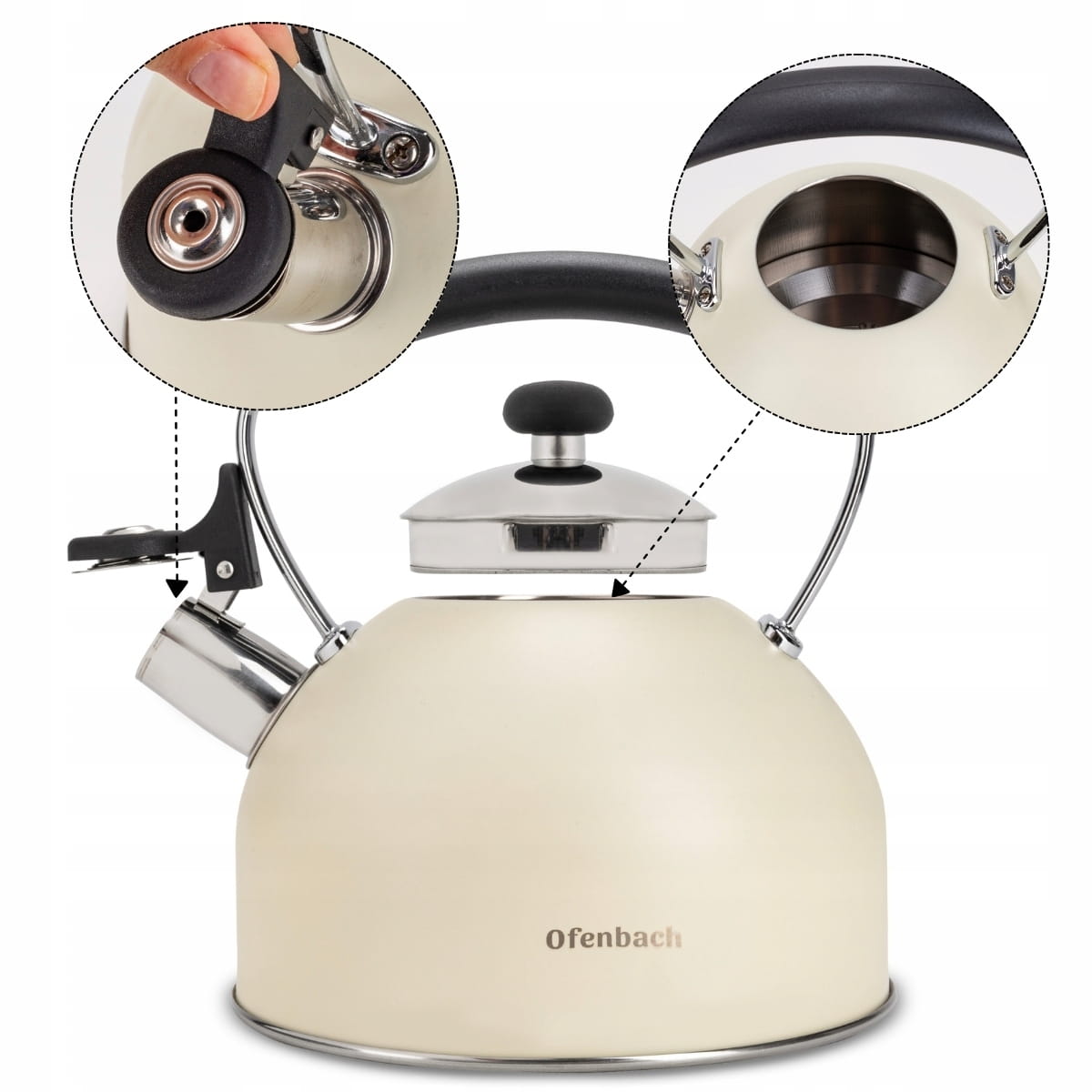 Elegancki i funkcjonalny czajnik Kamille z najnowszej linii wzorniczej wykonany z materiałów najwyższej jakości. Zrobiony ze stali nierdzewnej z wbudowanym na stałe gwizdkiem. Posiada funkcjonalny i nienagrzewający się uchwyt, który stabilnie będzie się trzymać w dłoni. Czajnik ma wbudowany przycisk do uchylania gwizdka. Dzięki kapsule podwójnego dna równomiernie rozprowadza i utrzymuje na dłużej ciepło, zaś gwizdek poinformuje o zagotowaniu wody, tym samym oszczędza energię.