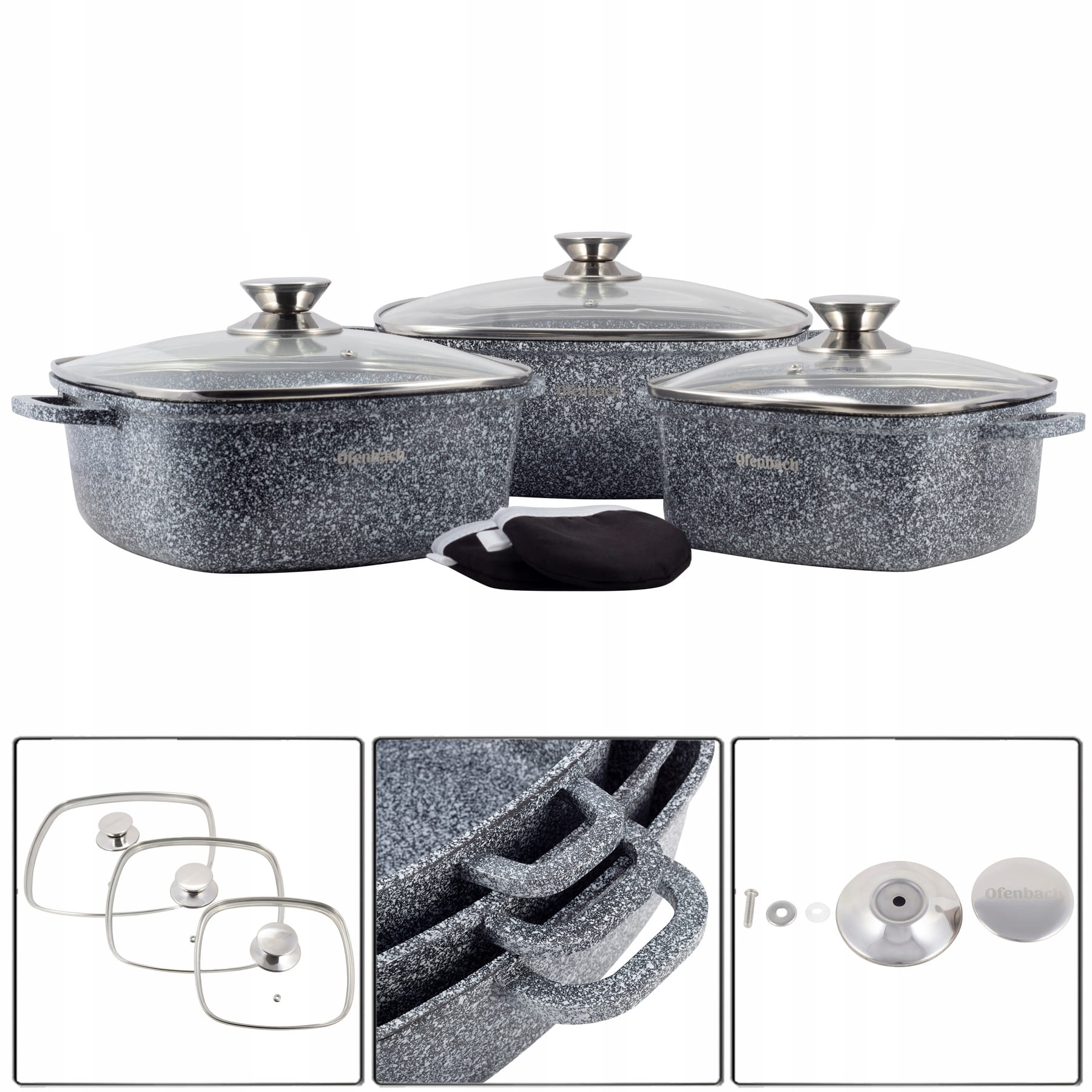 Nowoczesny komplet, zestaw garnków granitowych 6el.